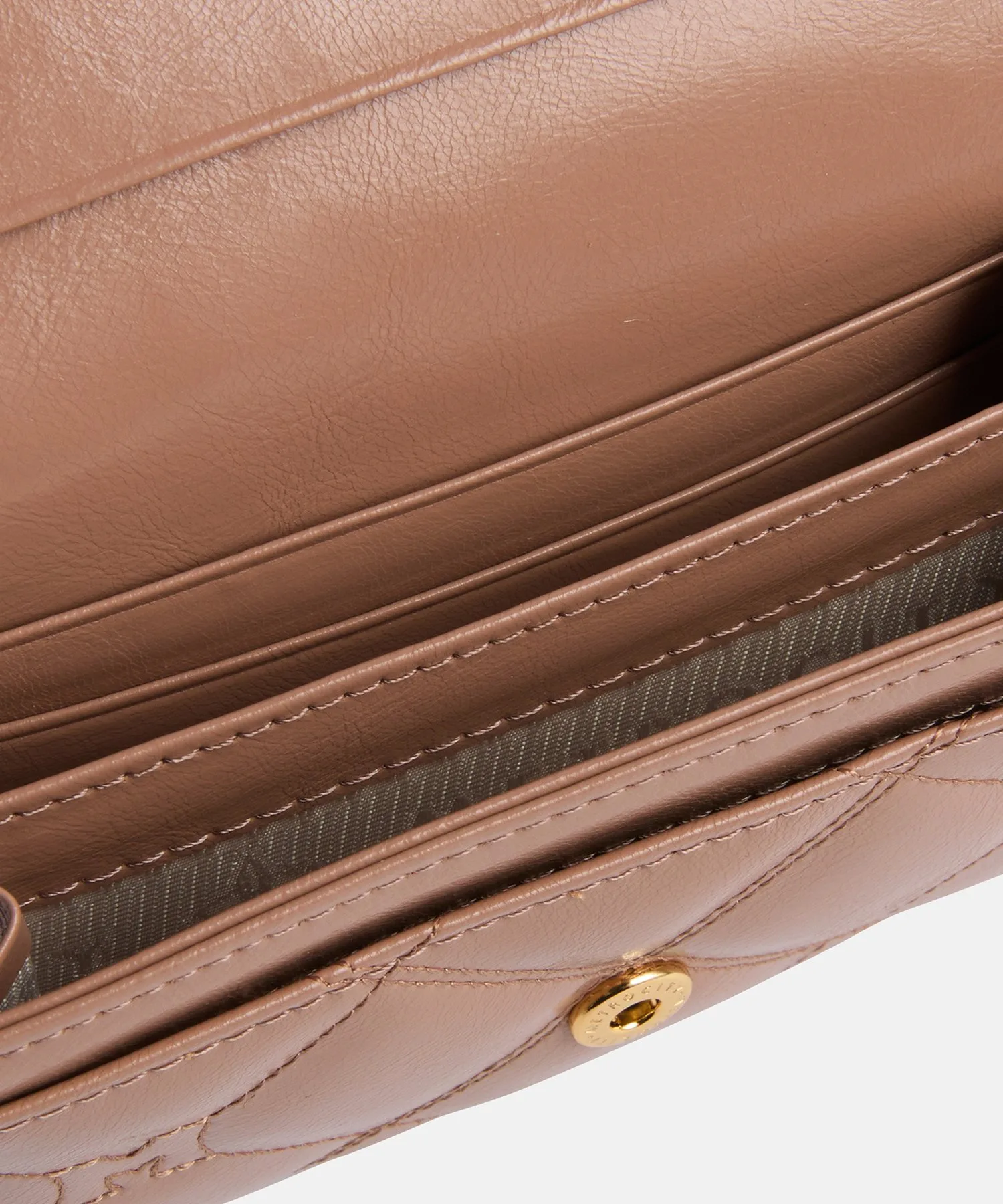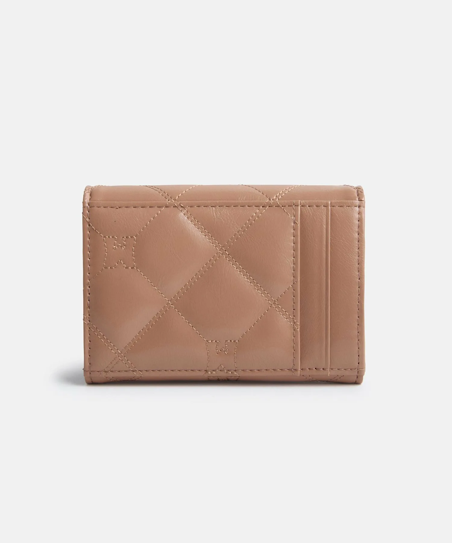 Элегантный кошелёк для карт с откидной крышкой и стеганой отделкой, создающей трехмерный объем.