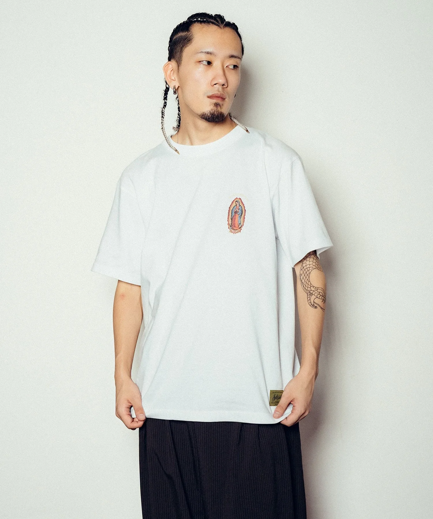 Фирменный графический принт Maria от бренда нанесен на левую сторону груди и на спину.