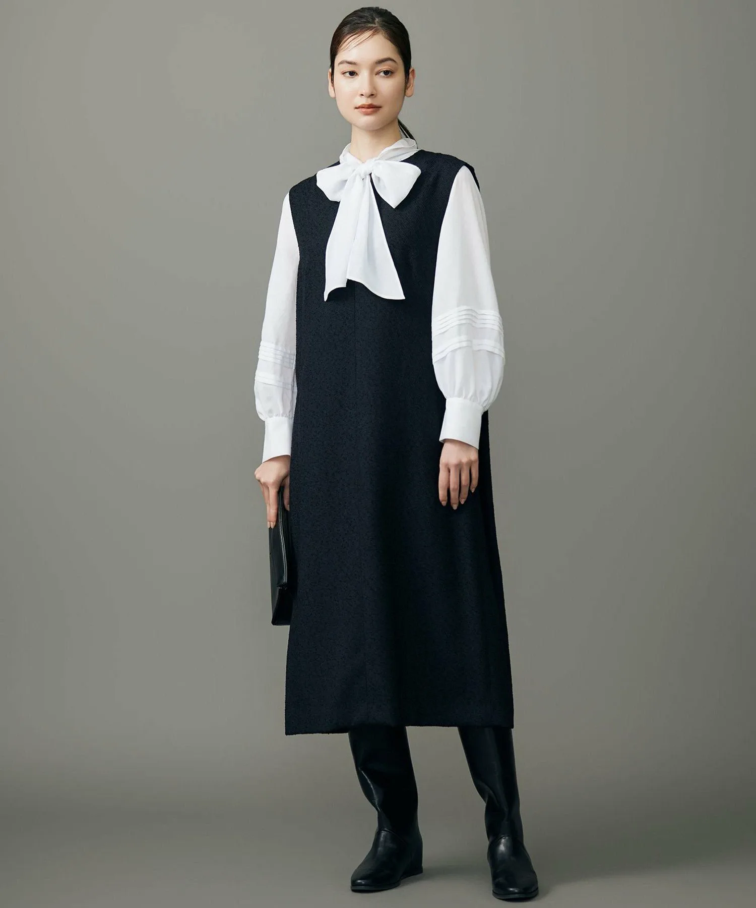 Эта юбка-свитер сочетается с разнообразным нижним бельем. Дизайн: Эта юбка-свитер имеет лаконичный силуэт I-образной формы. Большие складки на задней части пройм создают простой, но непринужденный дизайн. Вырез-«замочная скважина» обеспечивает сбалансированный образ, будь то в сочетании с простой водолазкой или блузкой с бабочкой. Материал: Текстурированная петлевая кольцевая пряжа придает этой ткани твидовый вид. Мягкая драпировка полиэстера и блестящая вискозная кольцевая пряжа создают универсальный образ, делая ее удобной для ношения взрослыми и подходящей для широкого круга случаев. Тот же материал: Куртка (JKWRCW0406), Жилет (VRWRLS0406), Укороченные брюки с двумя складками (PRWRLS0406), Укороченные брюки (PRWRCW0406), Прямая юбка (SKWRCW0406)
