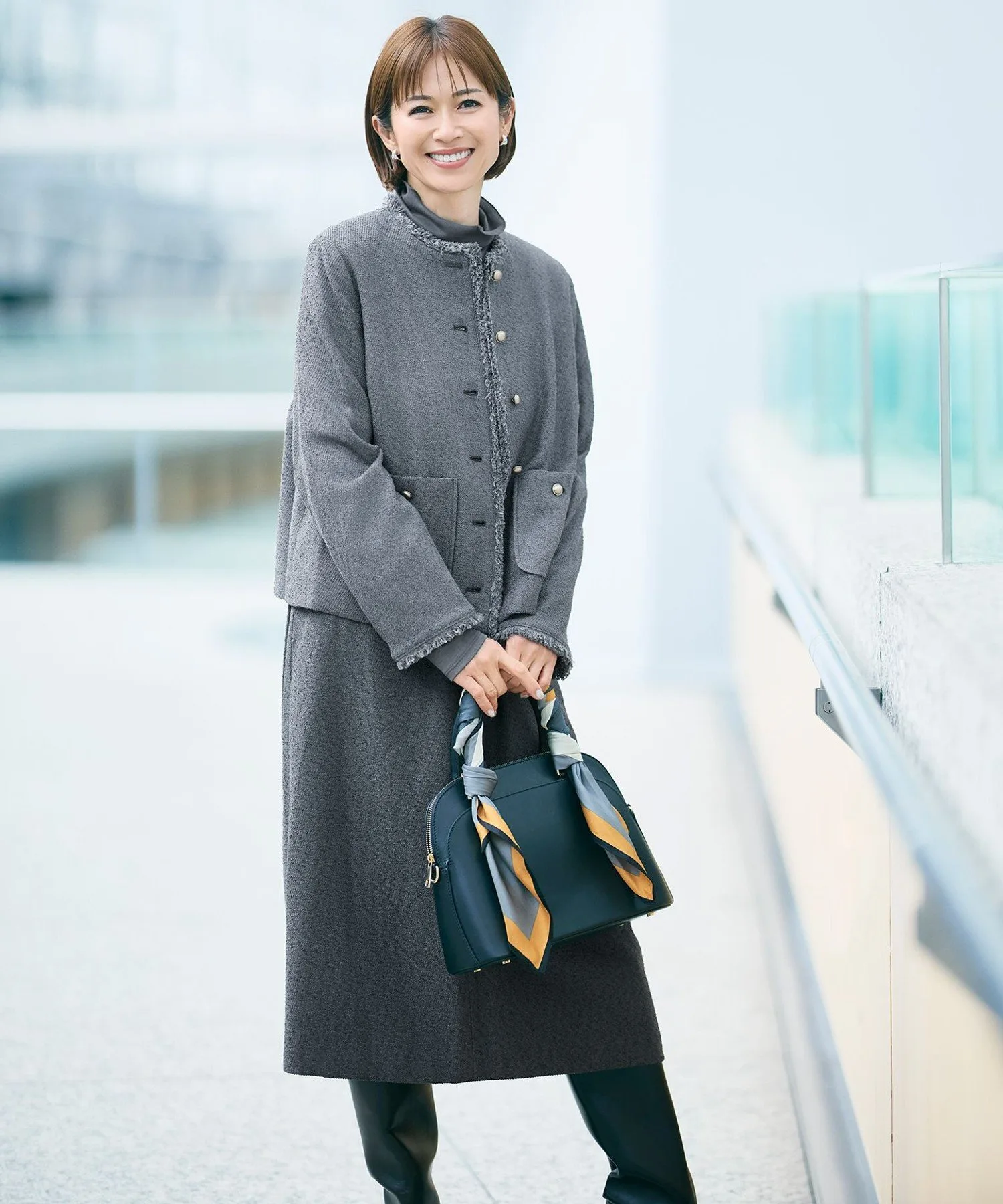 Эта юбка-свитер сочетается с разнообразным нижним бельем. Дизайн: Эта юбка-свитер имеет лаконичный силуэт I-образной формы. Большие складки на задней части пройм создают простой, но непринужденный дизайн. Вырез-«замочная скважина» обеспечивает сбалансированный образ, будь то в сочетании с простой водолазкой или блузкой с бабочкой. Материал: Текстурированная петлевая кольцевая пряжа придает этой ткани твидовый вид. Мягкая драпировка полиэстера и блестящая вискозная кольцевая пряжа создают универсальный образ, делая ее удобной для ношения взрослыми и подходящей для широкого круга случаев. Тот же материал: Куртка (JKWRCW0406), Жилет (VRWRLS0406), Укороченные брюки с двумя складками (PRWRLS0406), Укороченные брюки (PRWRCW0406), Прямая юбка (SKWRCW0406)