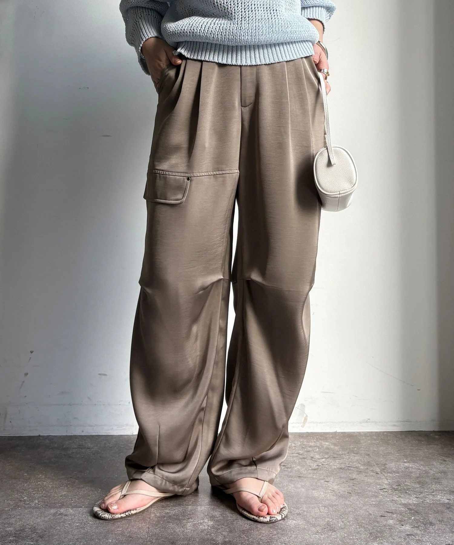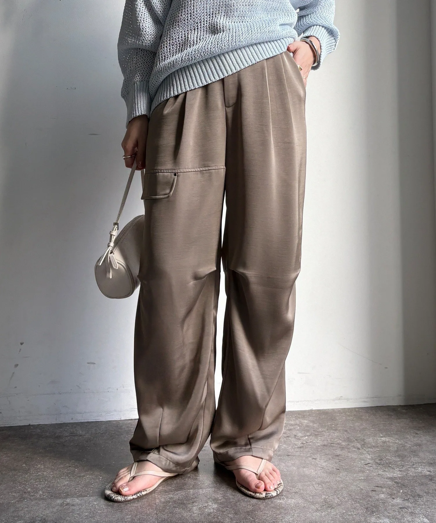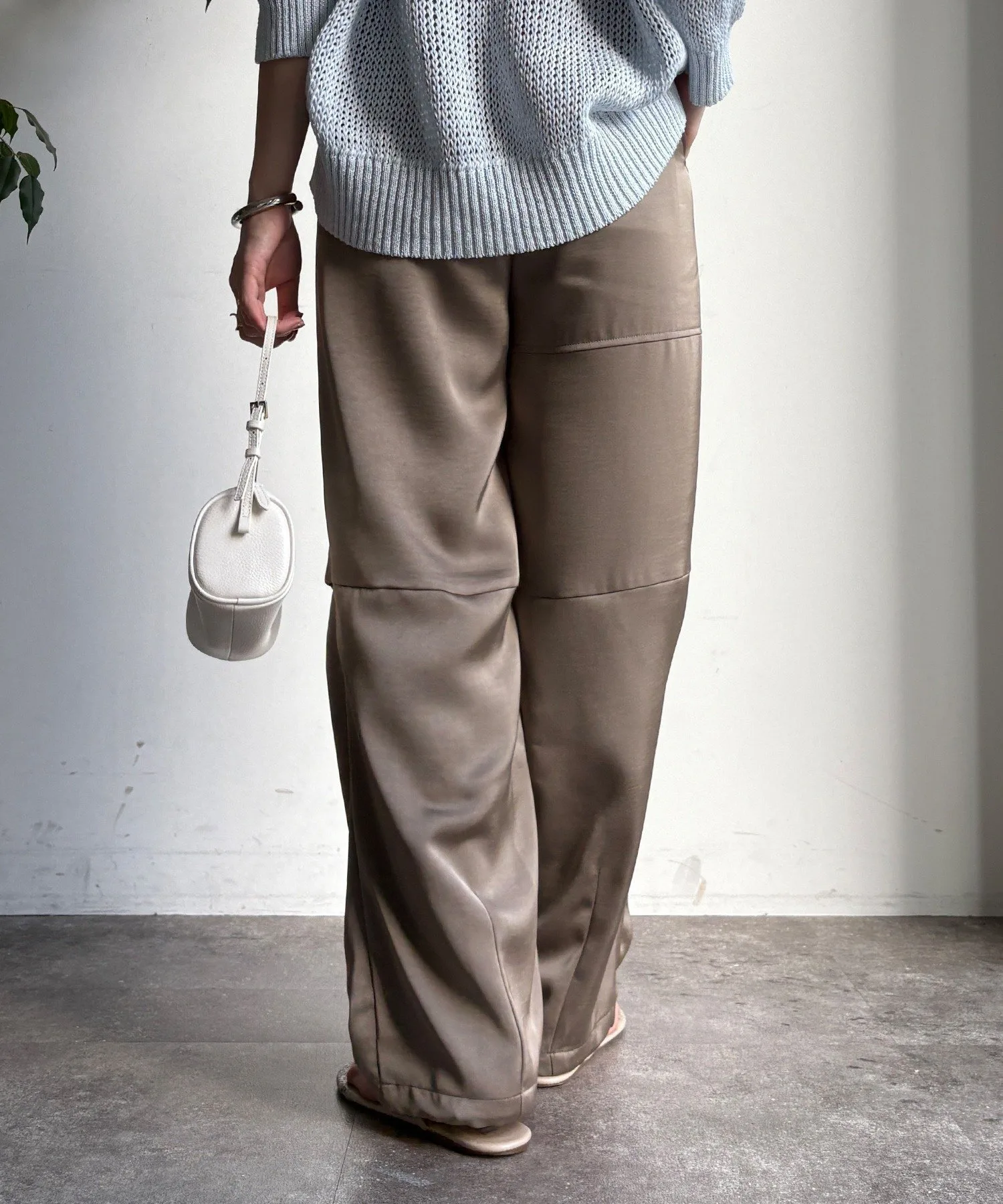 Эти широкие брюки отличаются элегантным блеском атласа и свободным, расслабленным кроем.