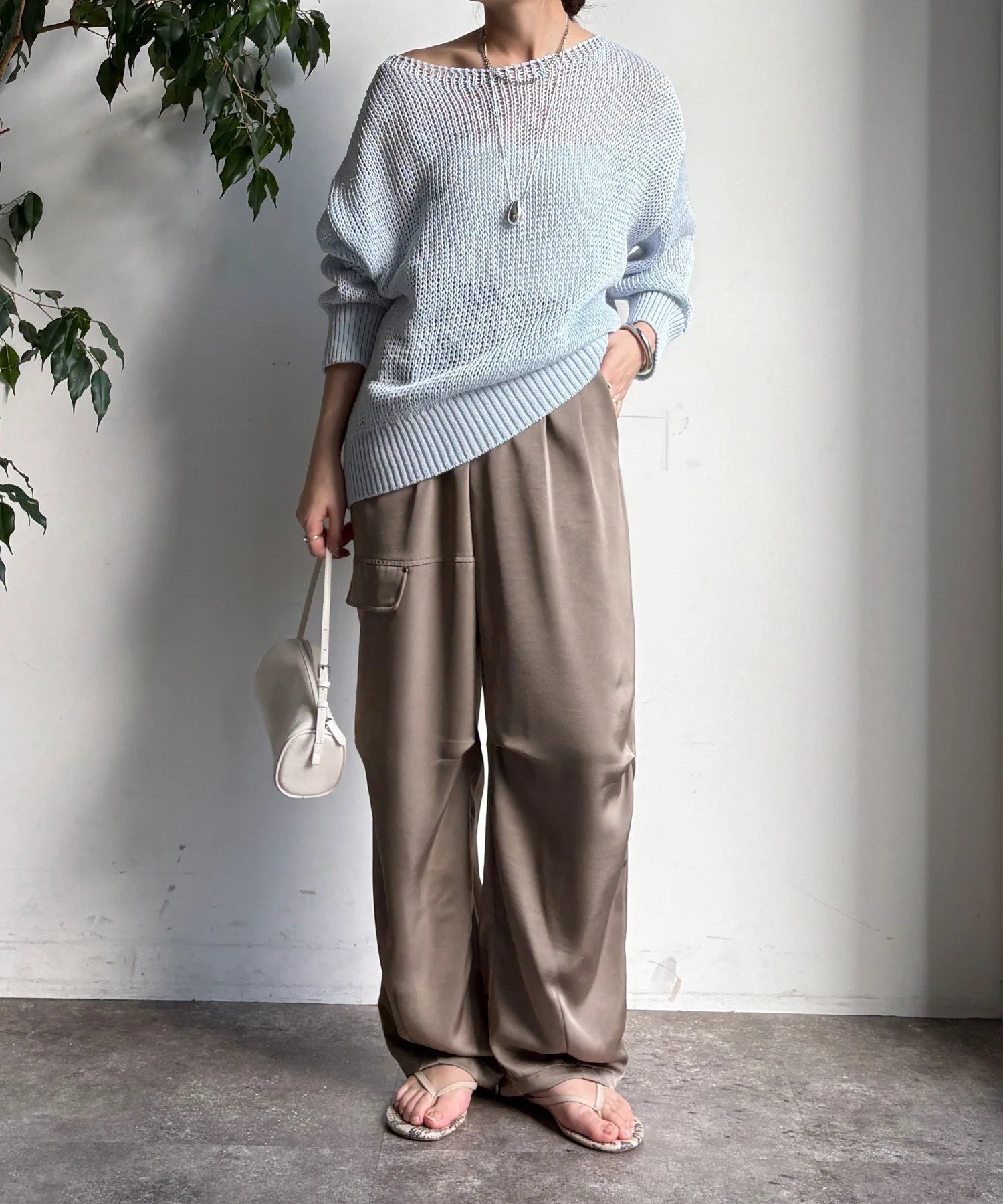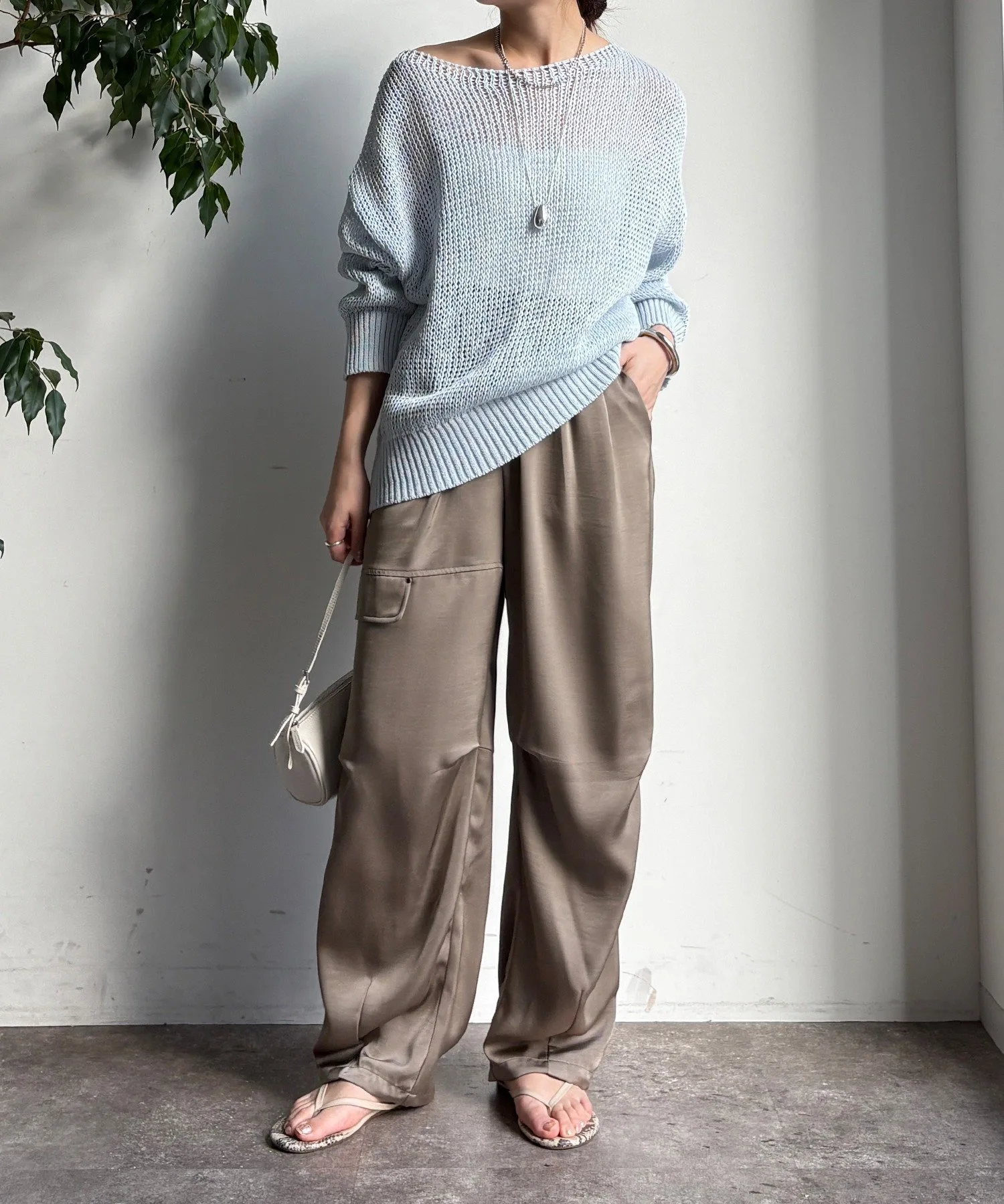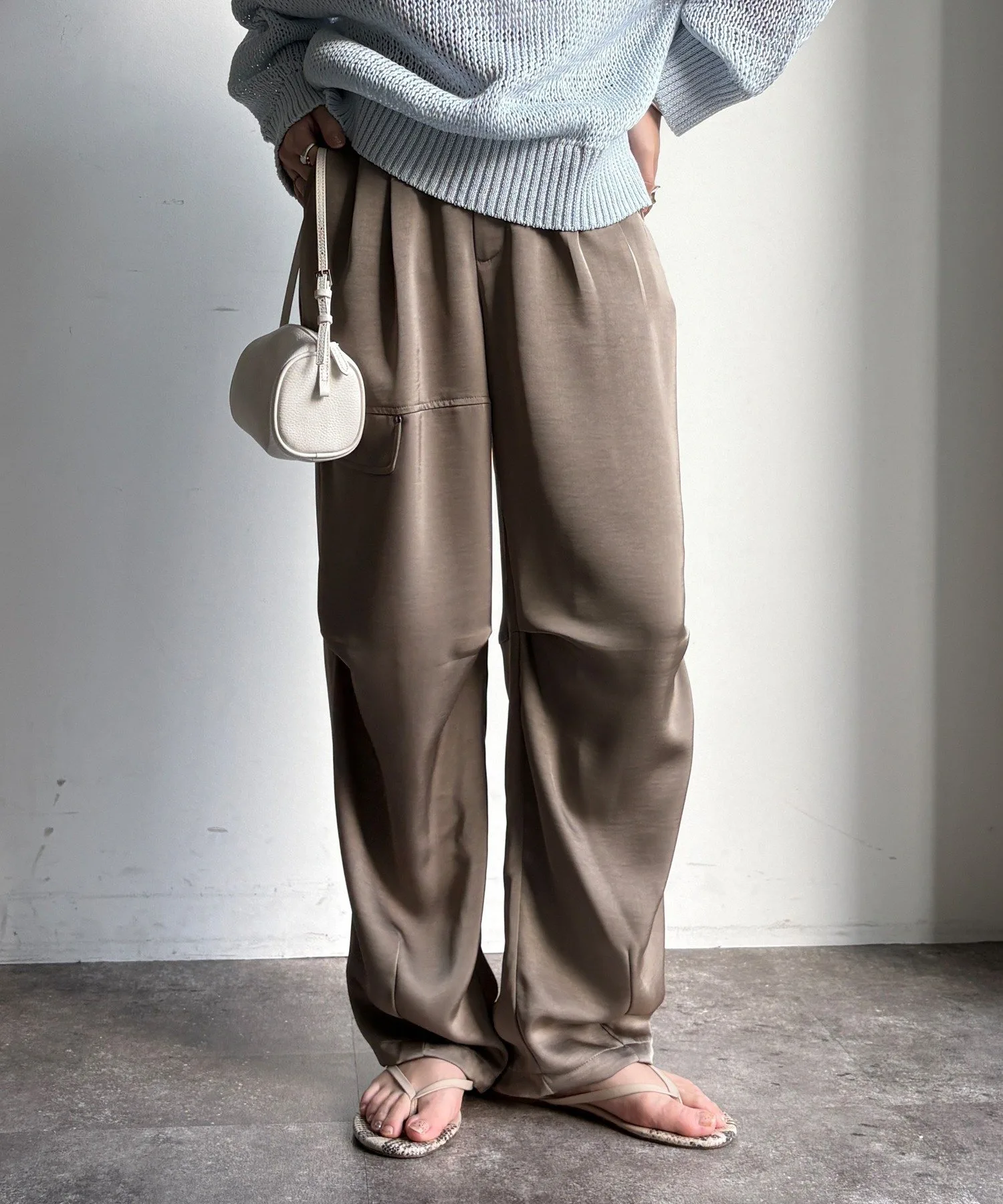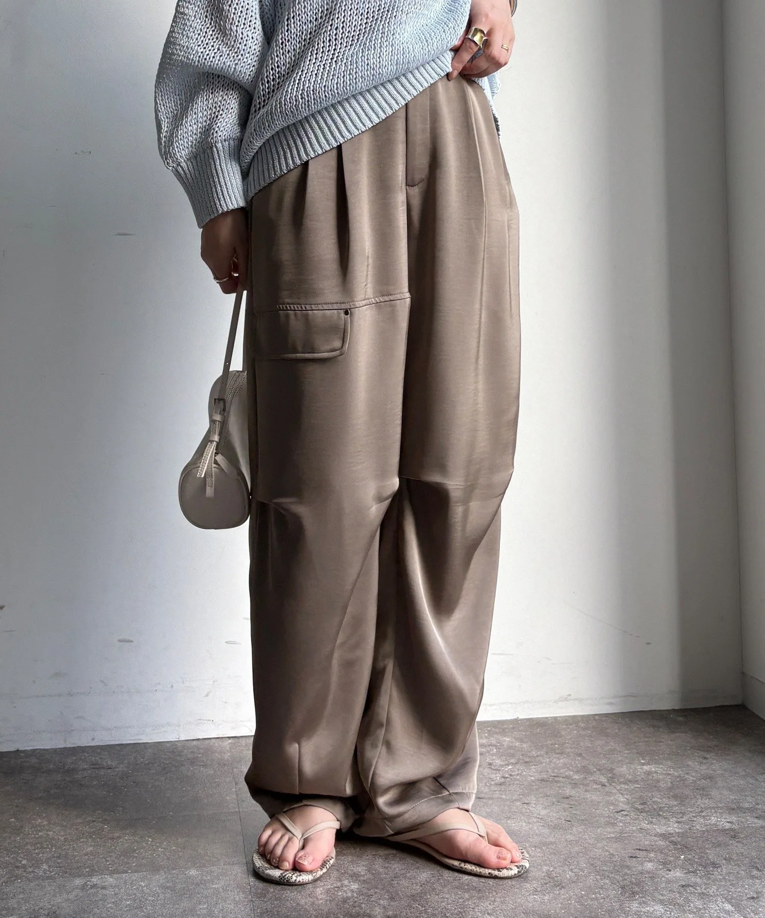Эти широкие брюки отличаются элегантным блеском атласа и свободным, расслабленным кроем.