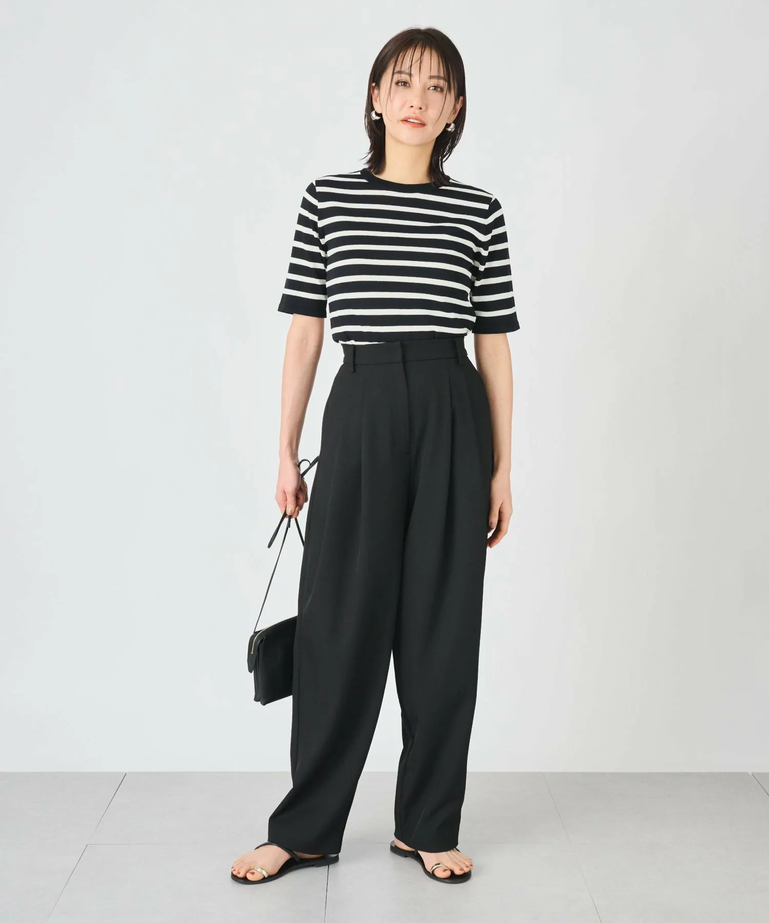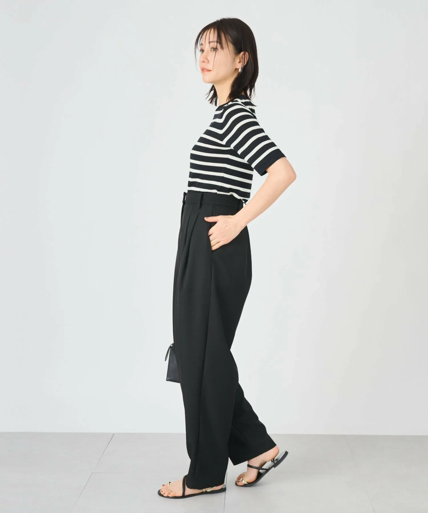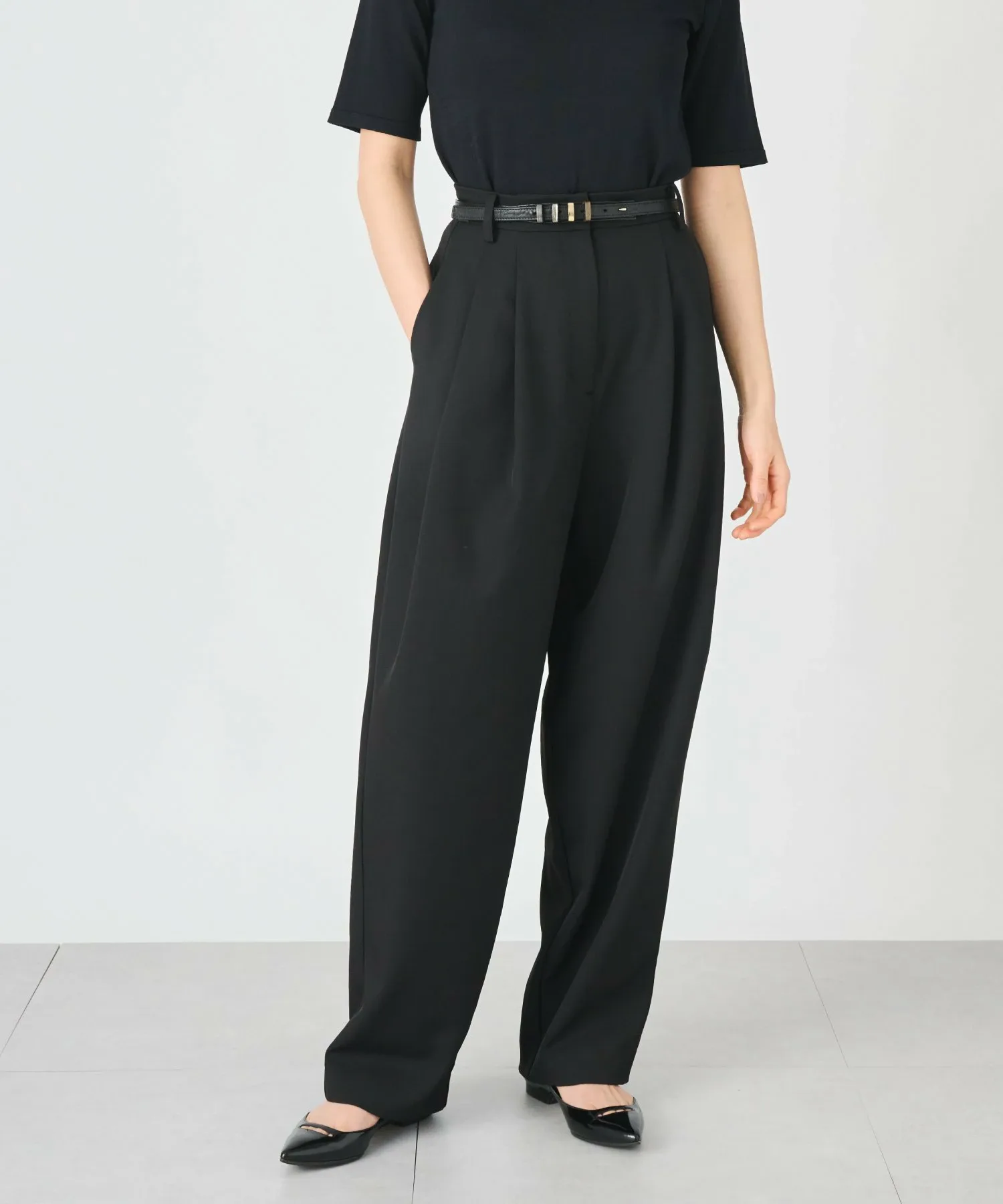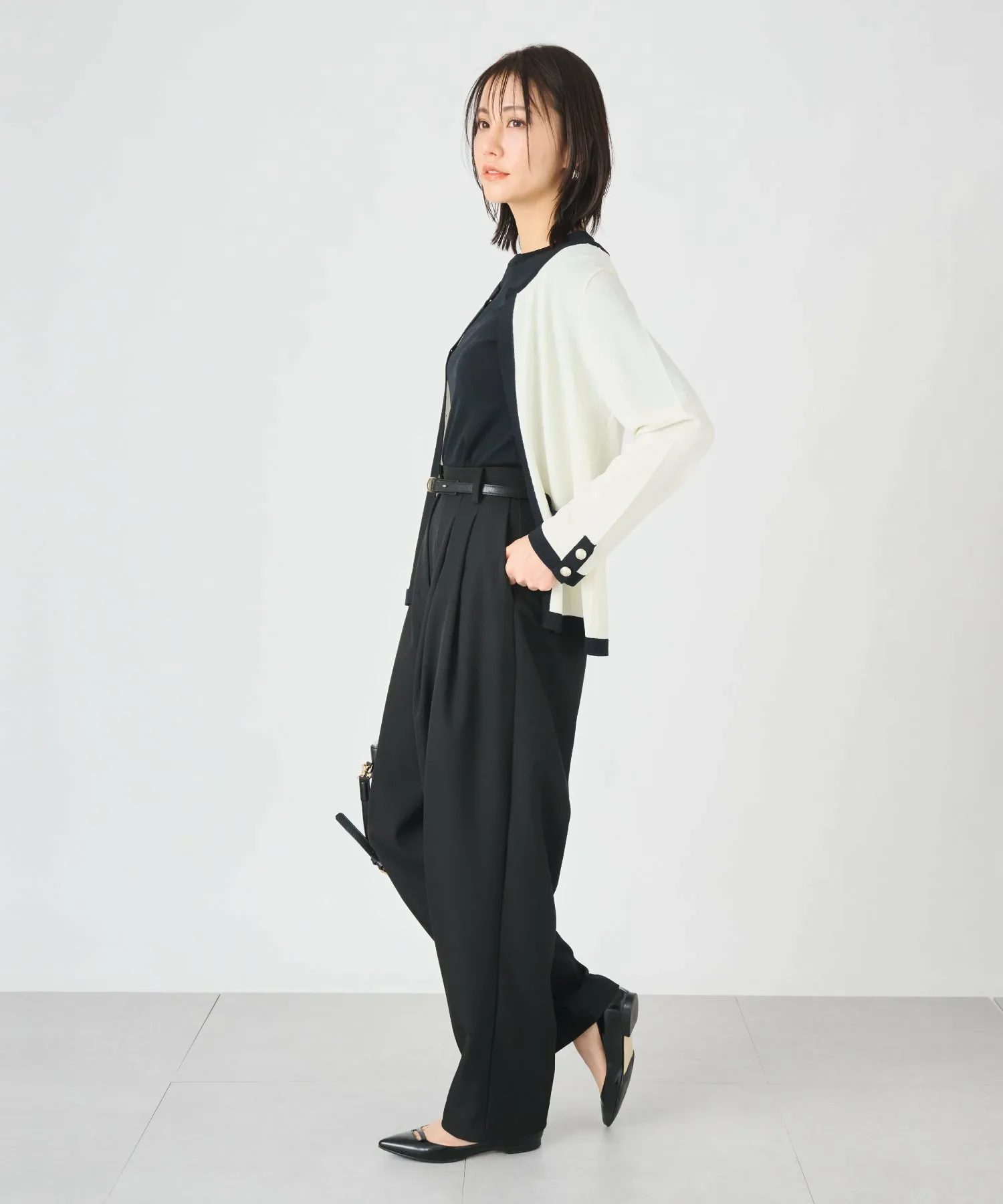 ДизайнПросто наденьте их, и у вас будет модный зауженный силуэт. Двухскладчатый дизайн обеспечивает свободу движений в области талии, скрывая фигуру, но не подчеркивая изгибы.Высокая талия позволяет носить их с короткими топами или заправленными.Застежка-молния спереди обеспечивает элегантный вид даже в заправленном виде! Спинка частично эластичная, поэтому их удобно носить, не чувствуя себя слишком тесно.Чистый, аккуратный материал также отлично подходит для работы. Сочетайте их с жилетом средней длины "252141028", изготовленным из того же материала, для мгновенного создания гармоничного образа!