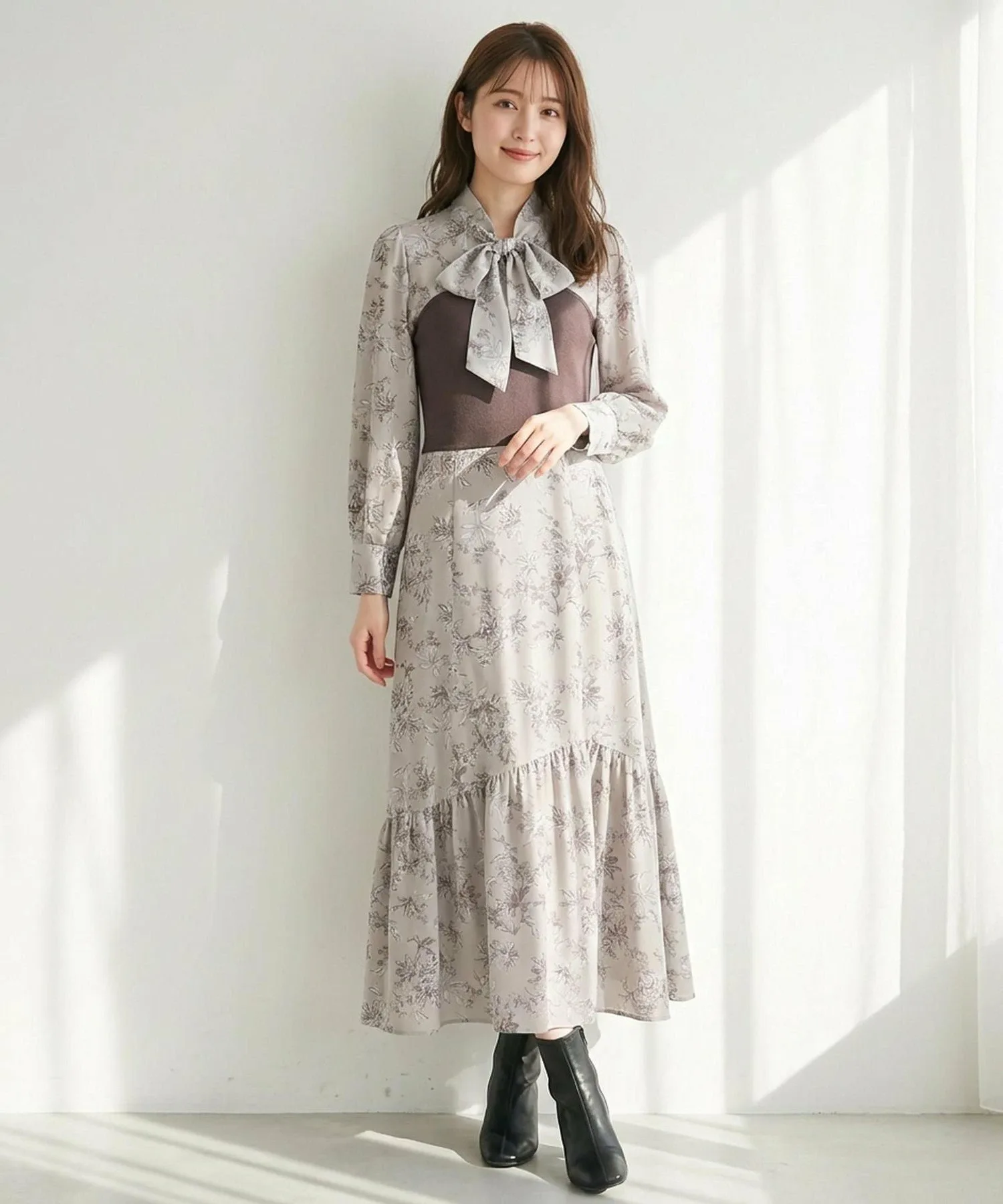 #feroux #womens #feminine #flowerprintdress #ribbontiedress