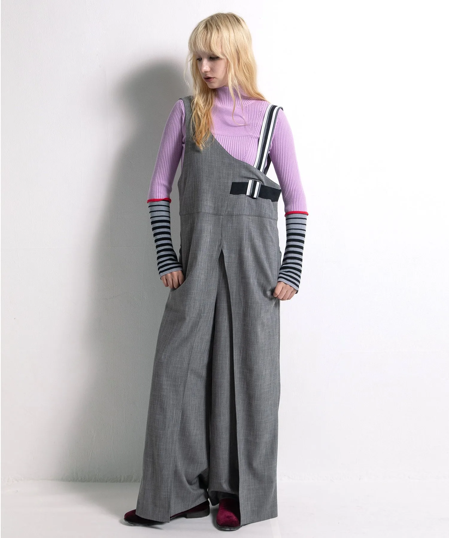 В этом сезоне левое плечо выполнено в виде пояса Mar, с лентой, вшитой в центр полосатой ткани,