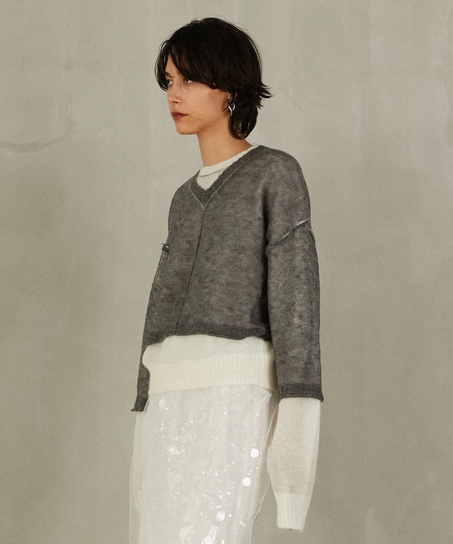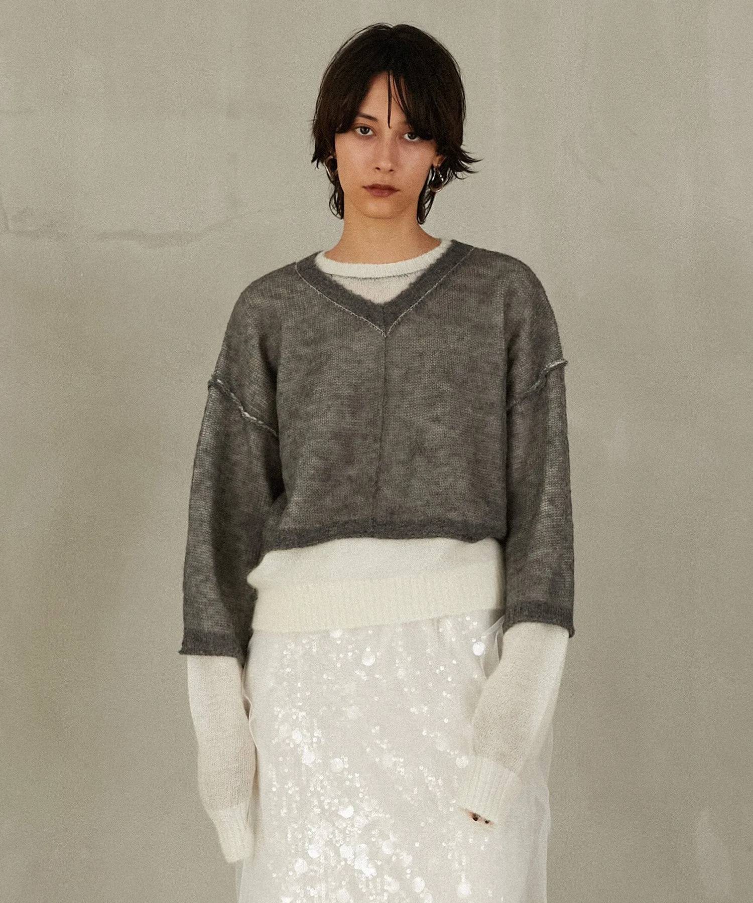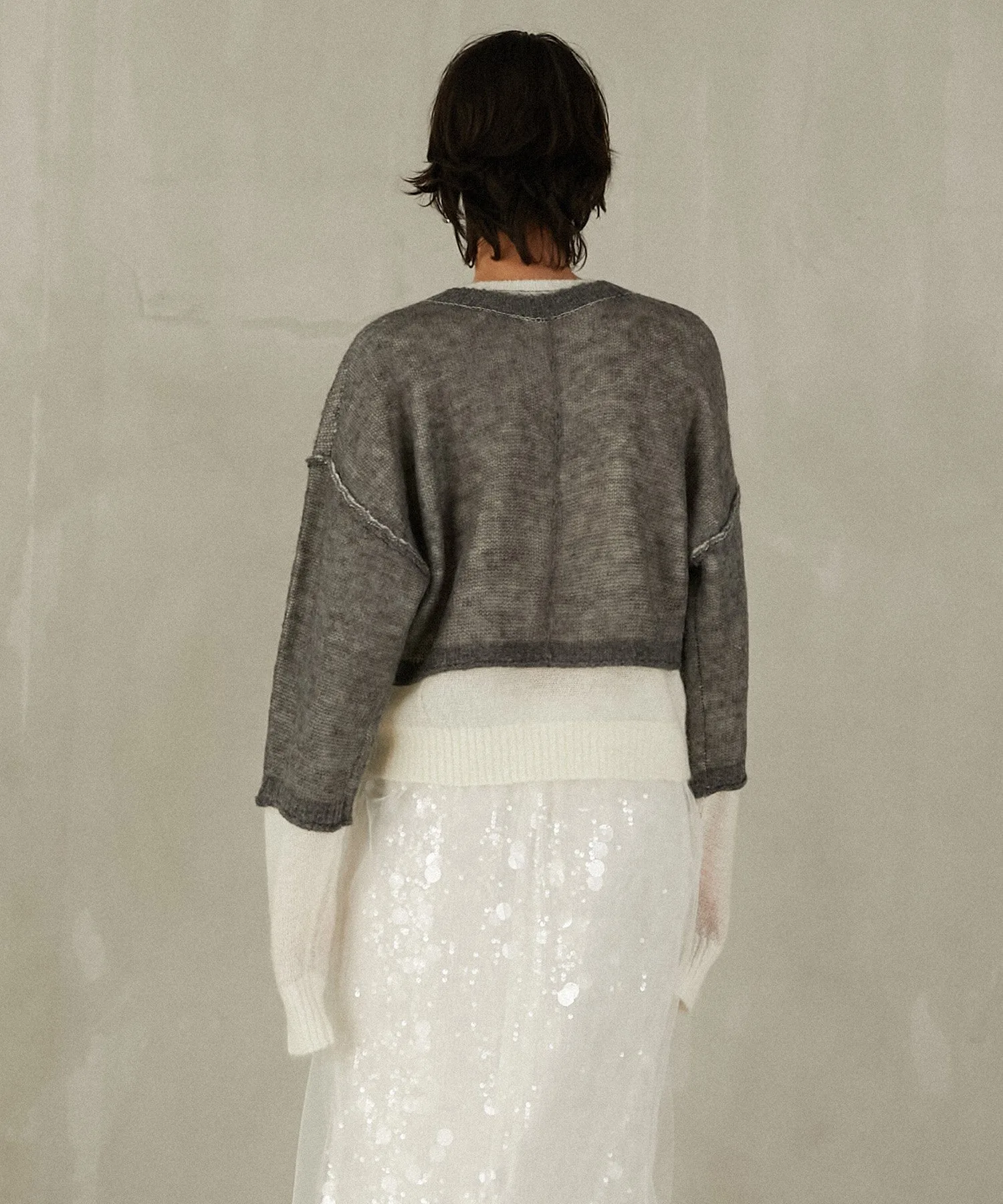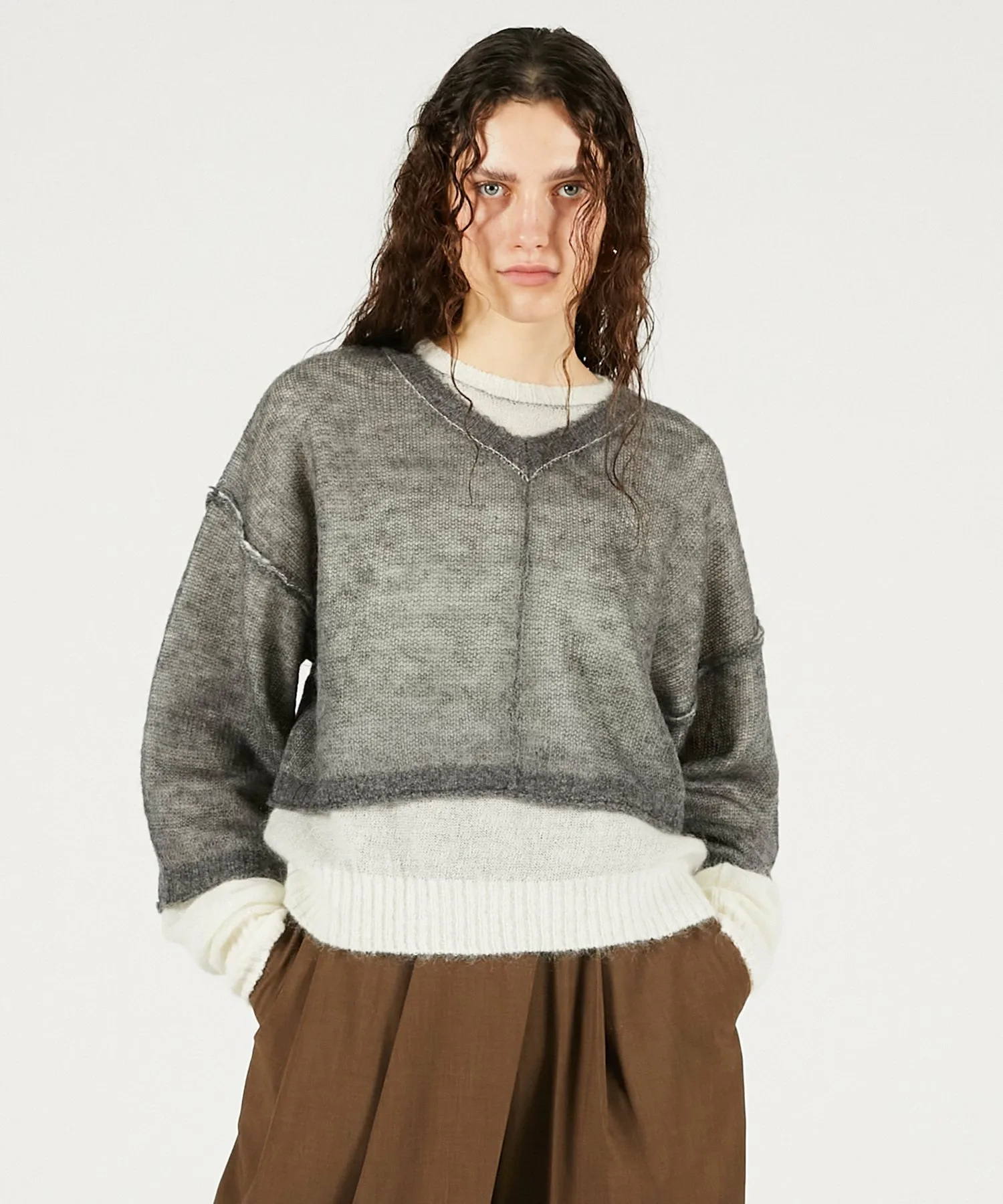 Передняя сторона выполнена из пряжи с добавлением мохера, а задняя — из пряжи с высоким содержанием козьего мохера и мериносовой шерсти.
