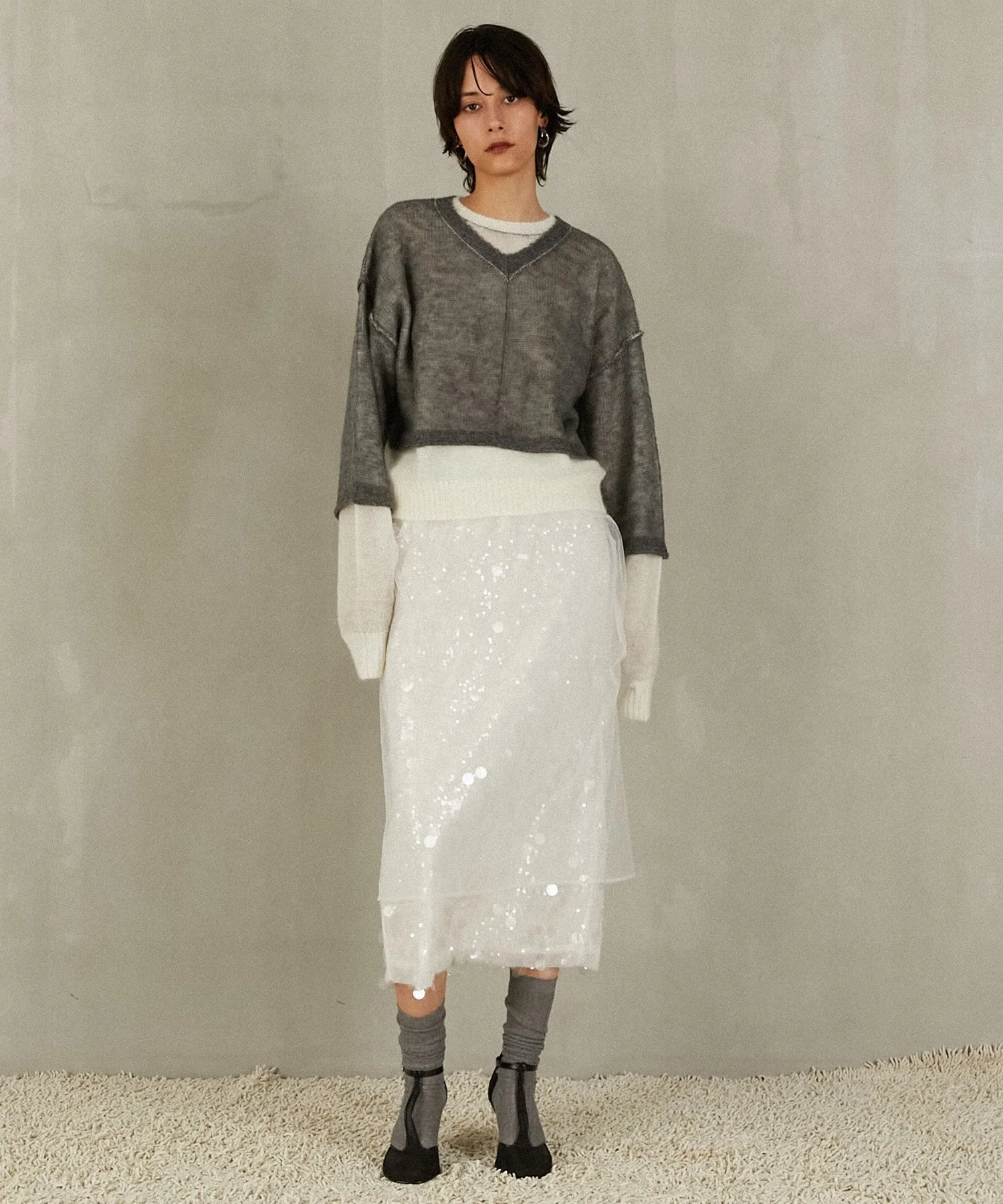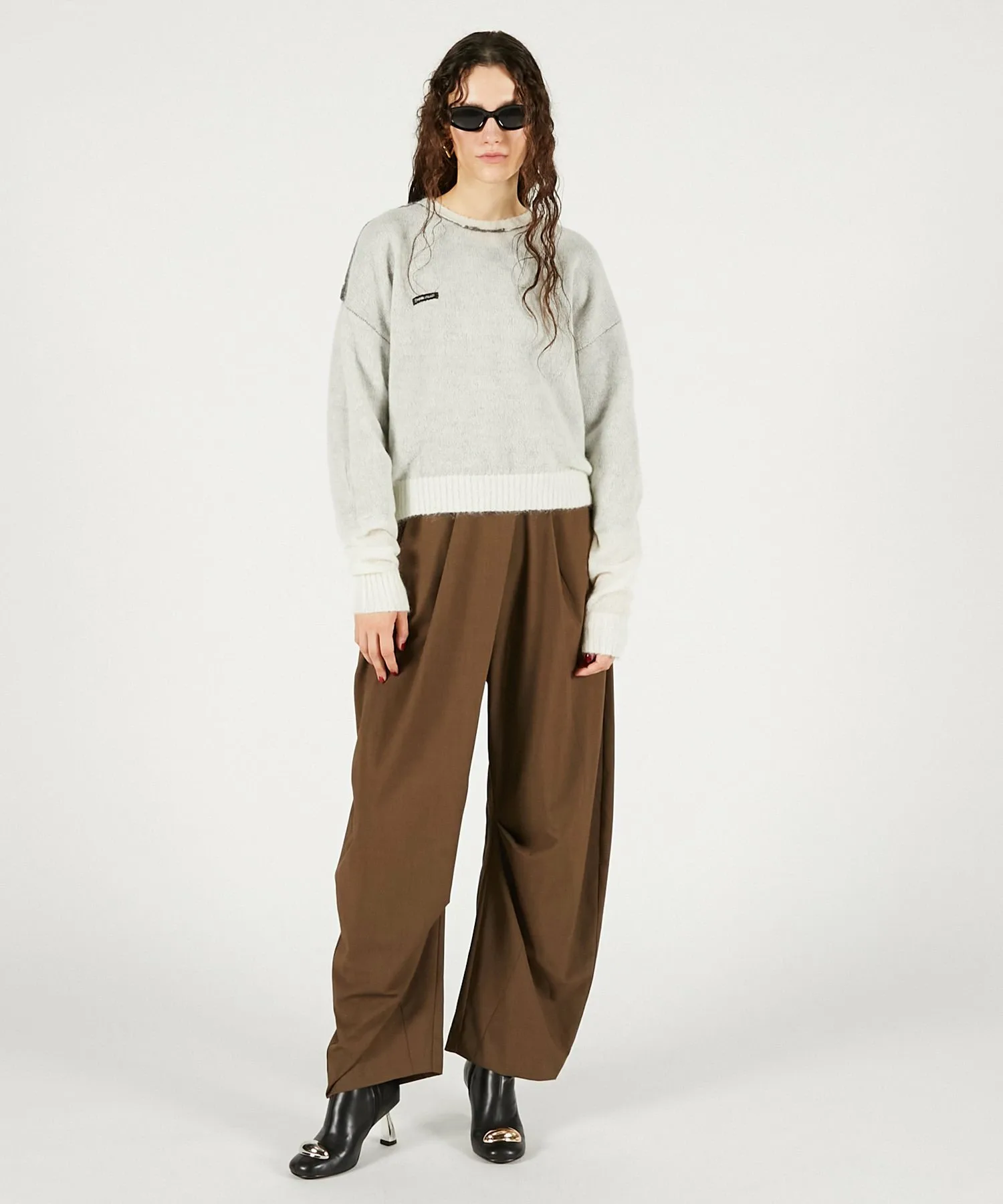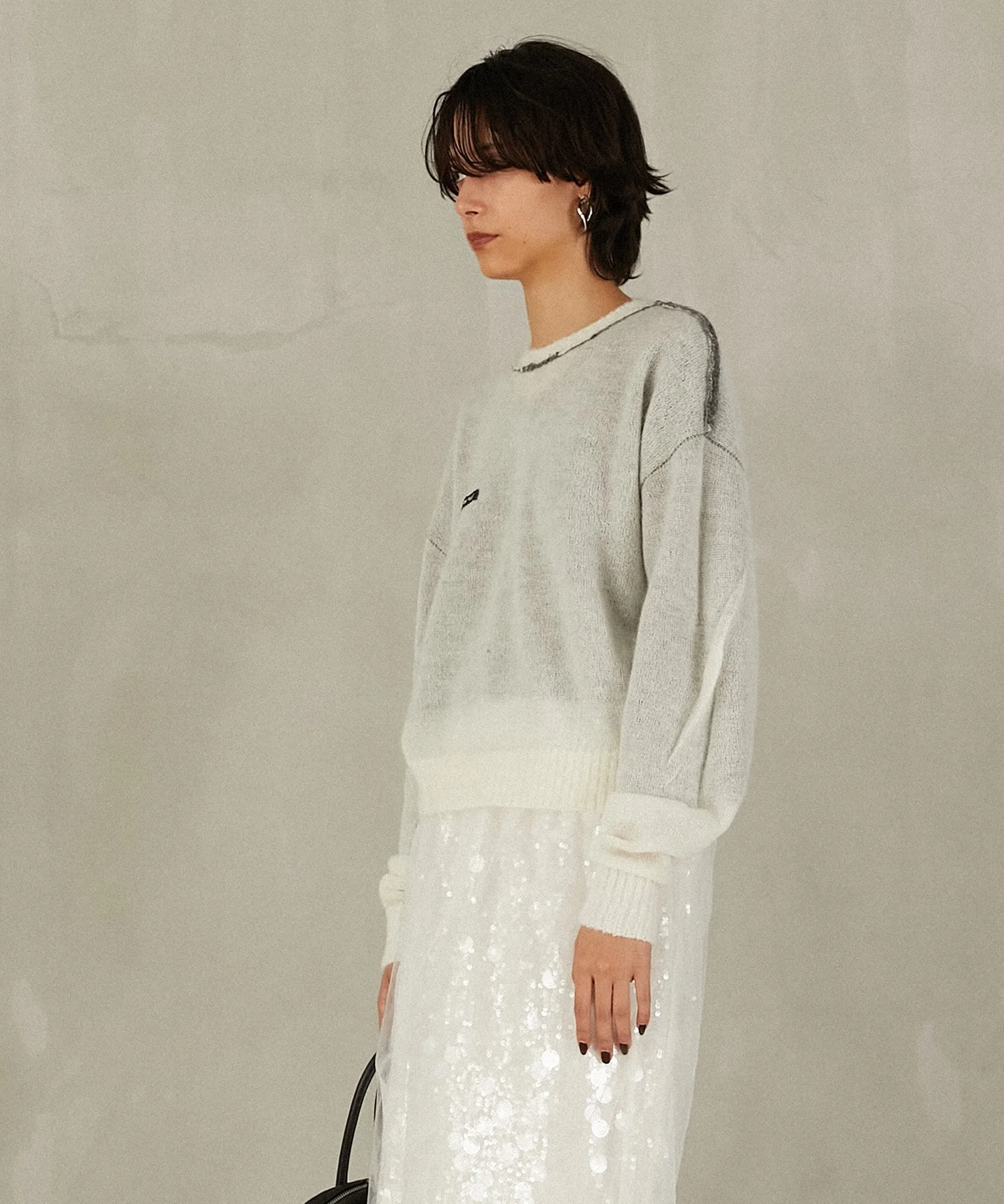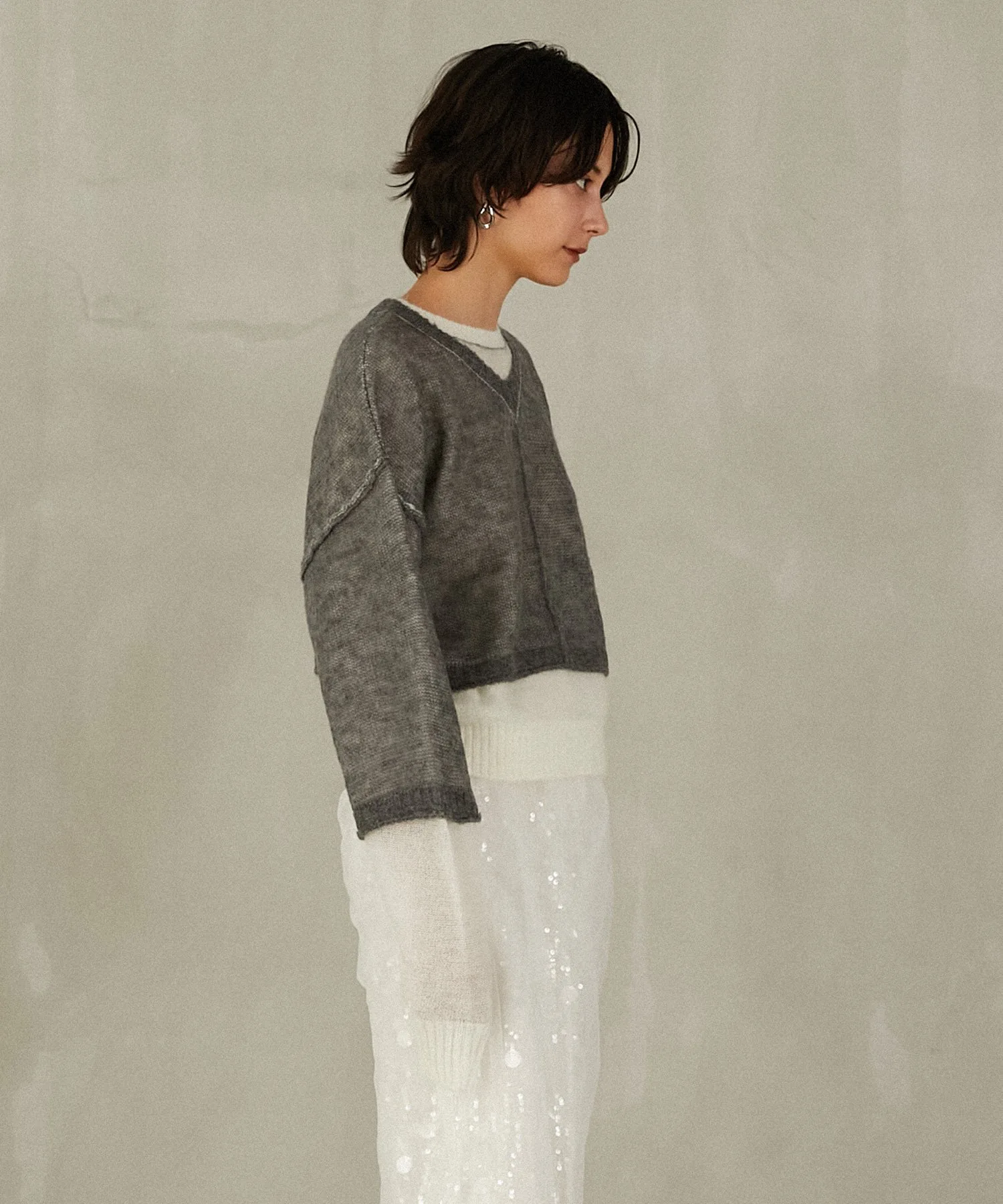 Передняя сторона выполнена из пряжи с добавлением мохера, а задняя — из пряжи с высоким содержанием козьего мохера и мериносовой шерсти.
