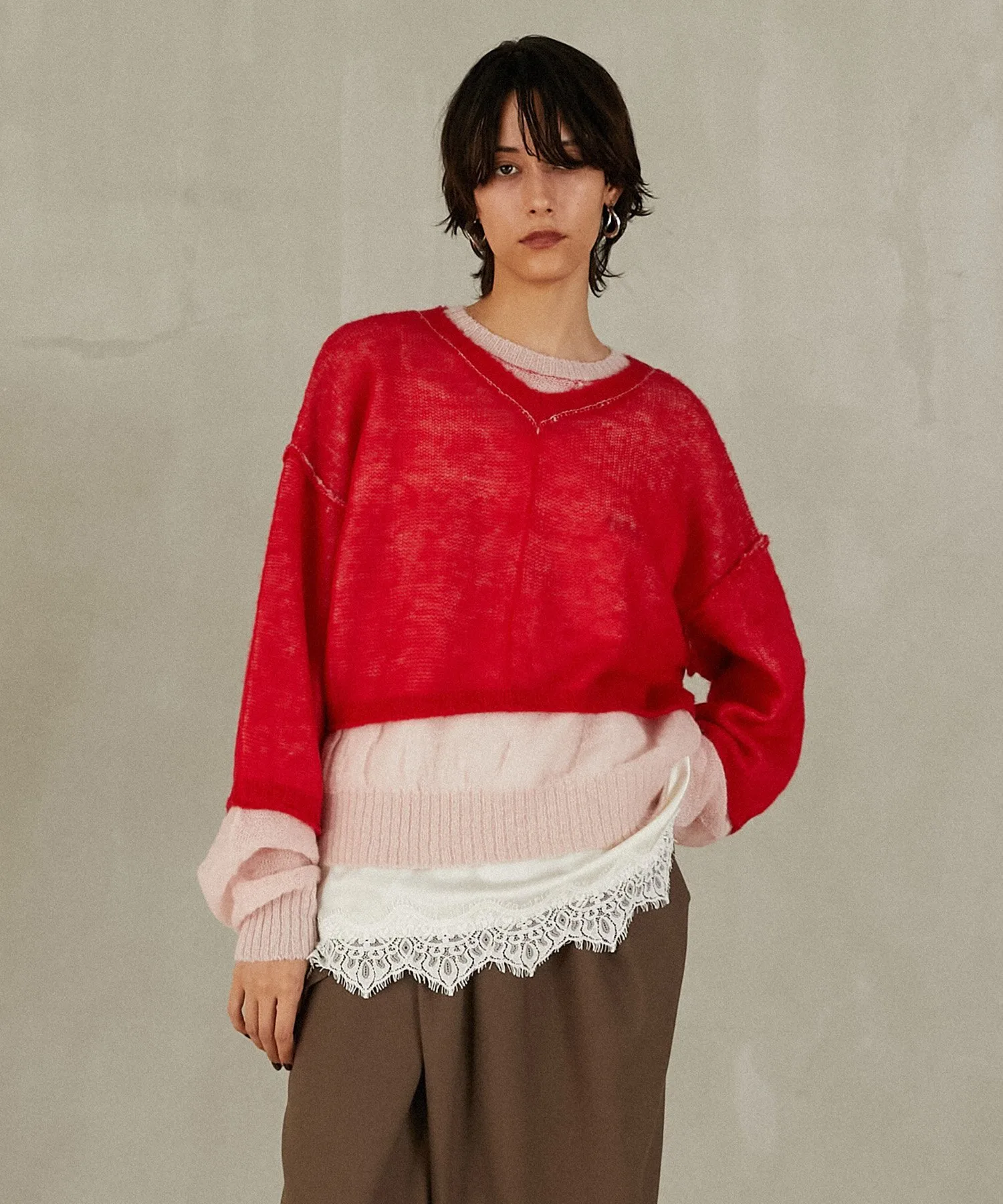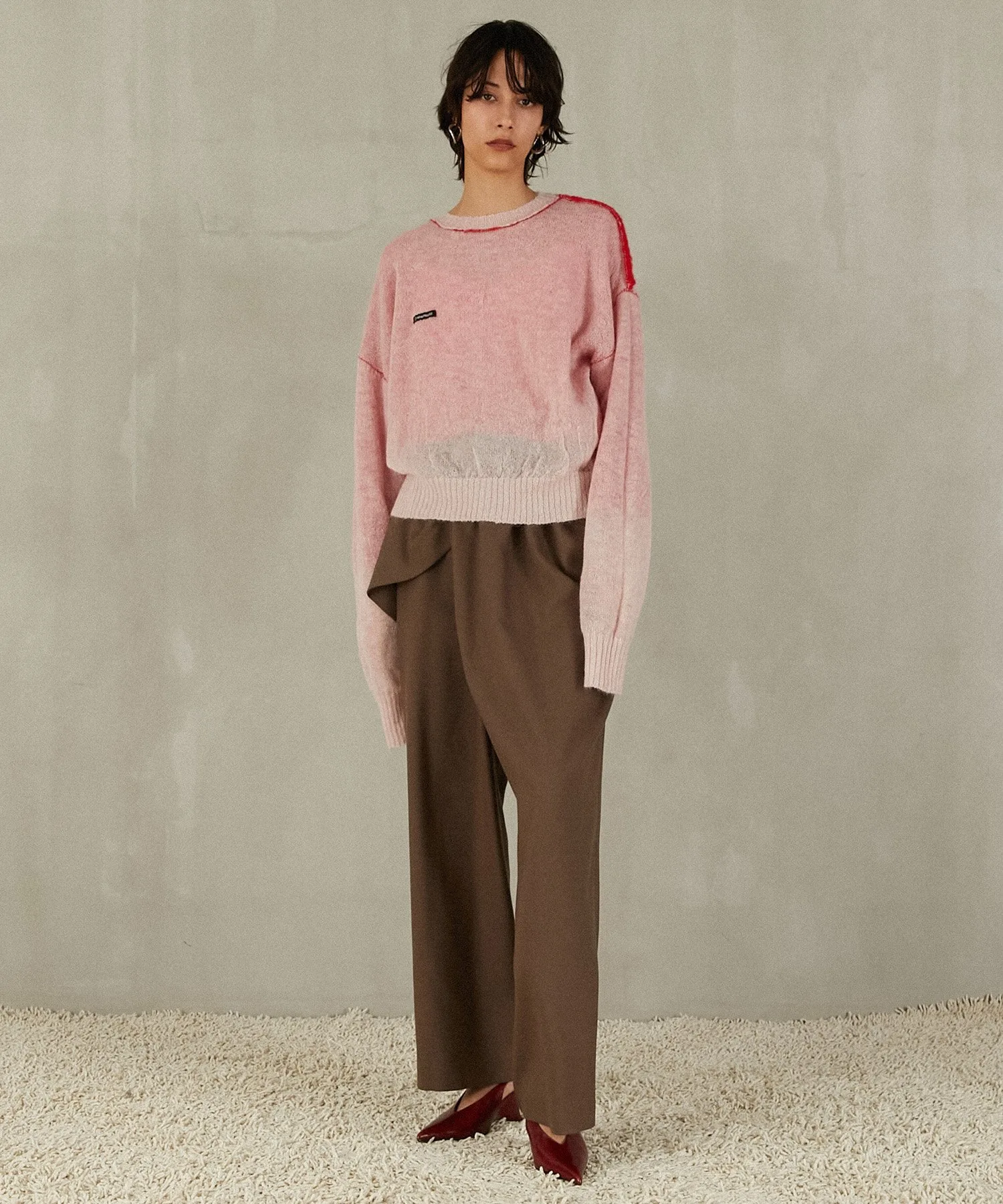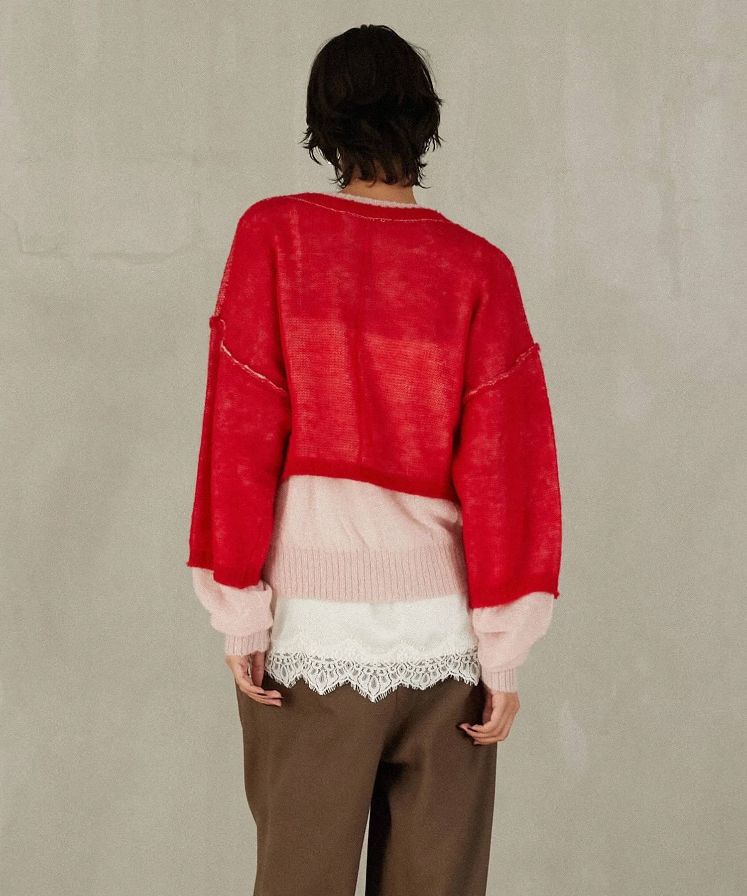 Передняя сторона выполнена из пряжи с добавлением мохера, а задняя — из пряжи с высоким содержанием козьего мохера и мериносовой шерсти.