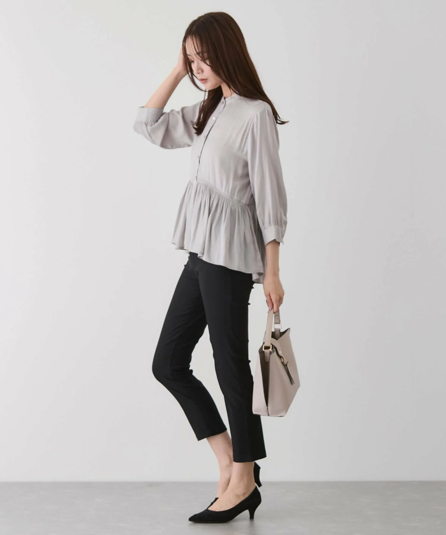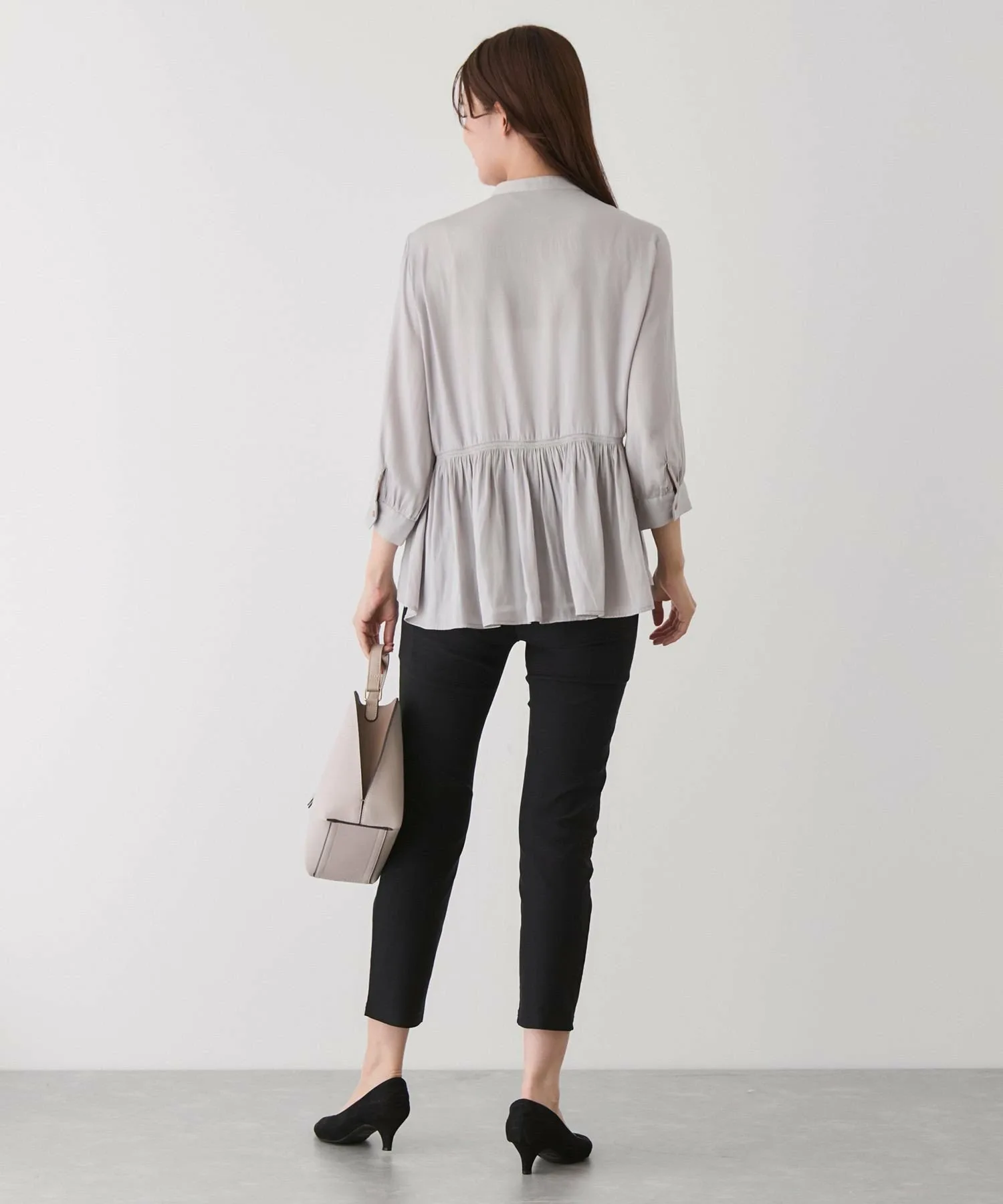 - Сочетайте с зауженными брюками и туфлями на каблуках для аккуратного и повседневного образа для поездок на работу.
