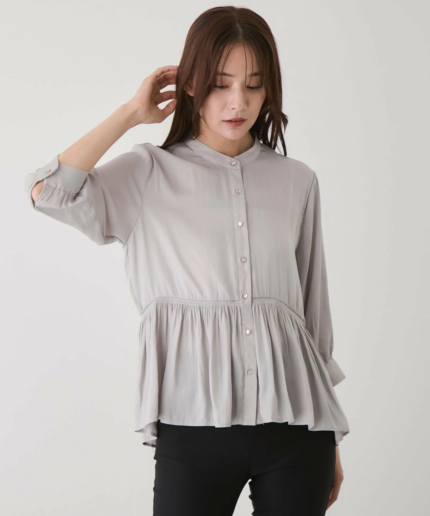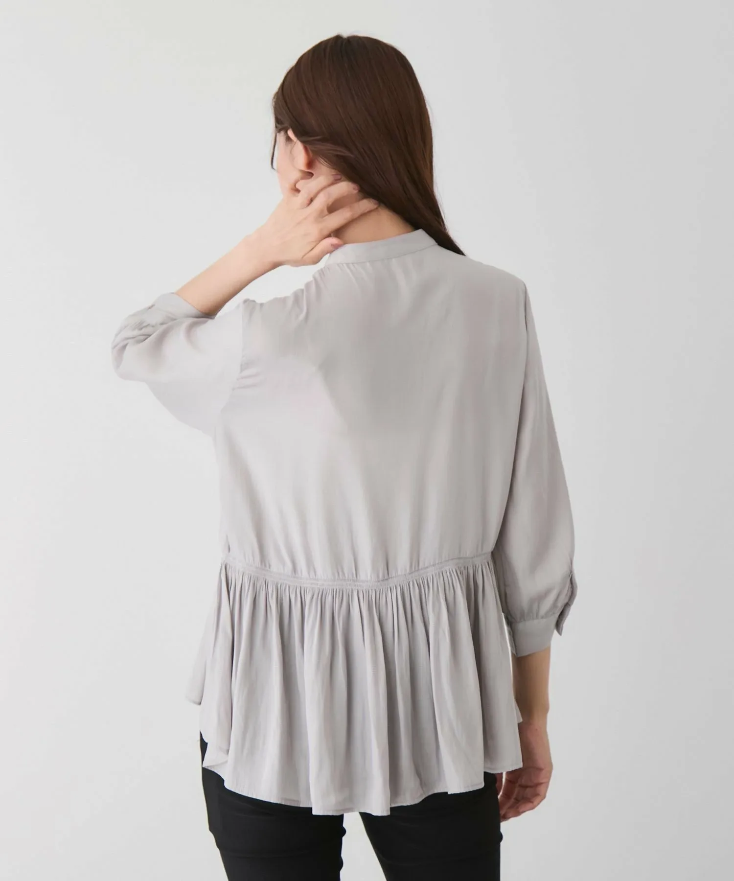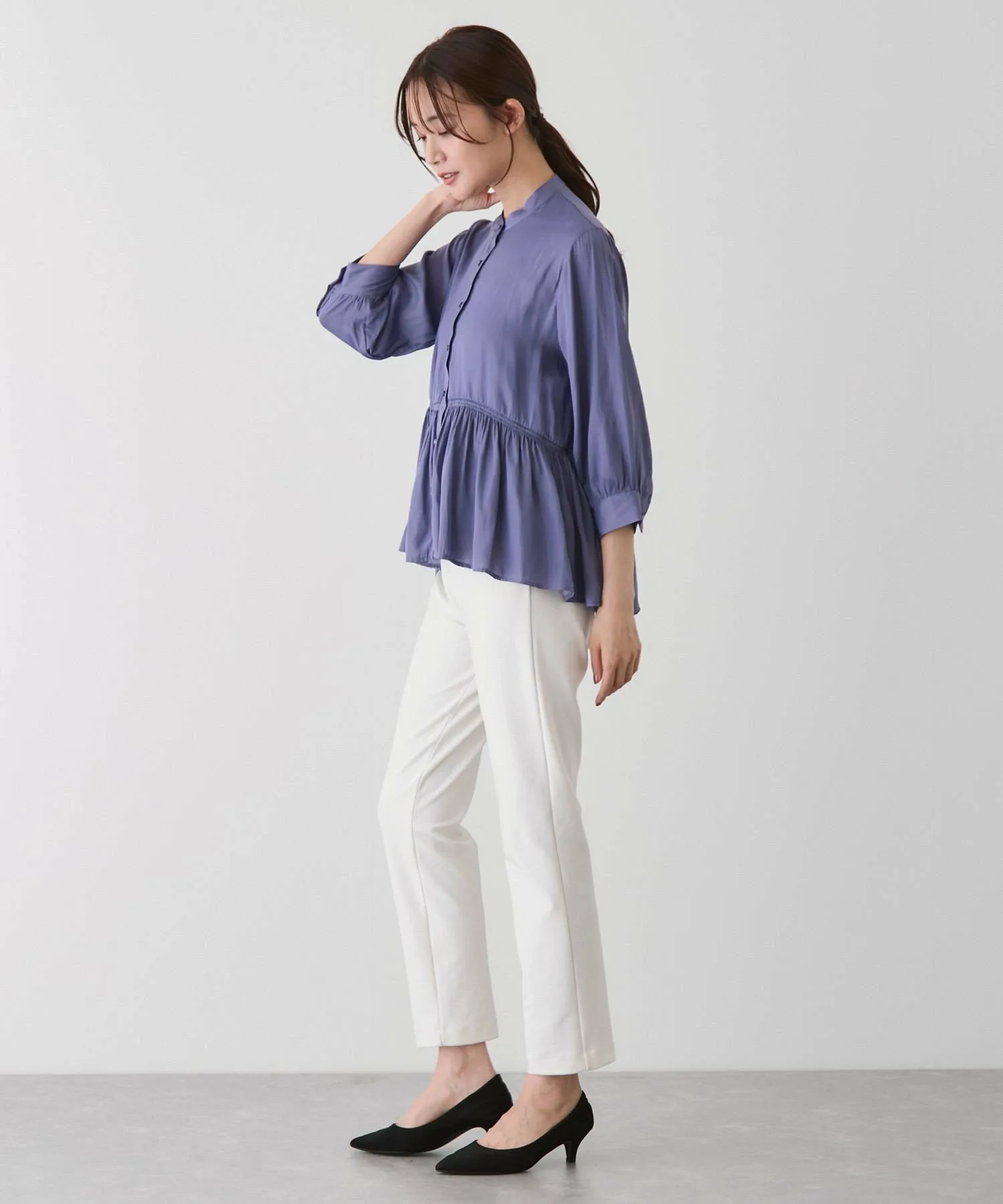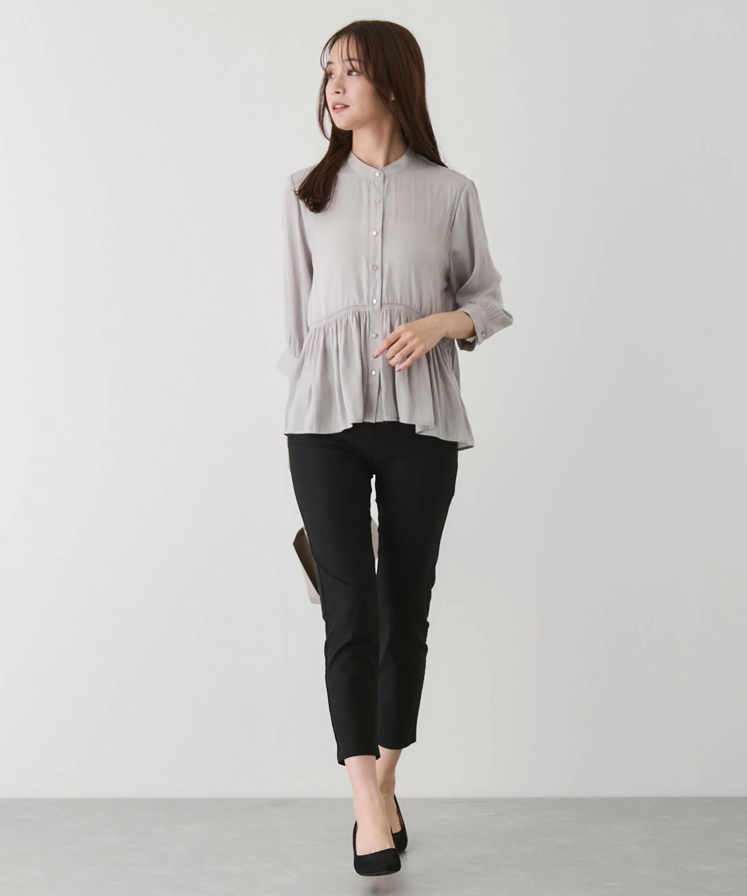 - Длина подола, отличающаяся спереди и сзади, создает изысканный вид даже в расстегнутом виде и добавляет легкости и непринужденности.