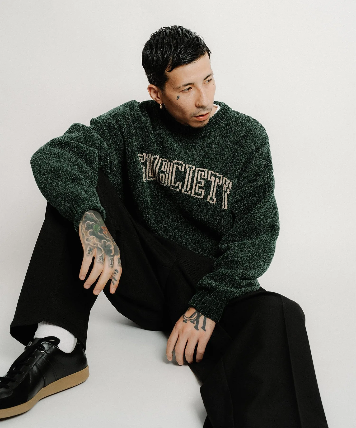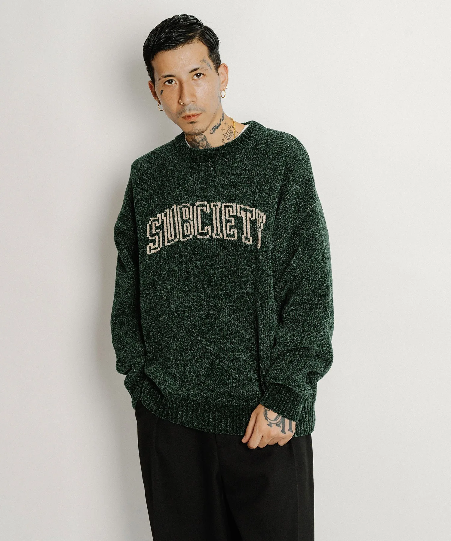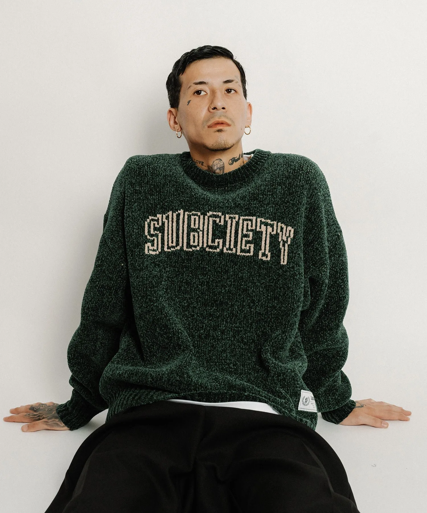 На передней части жаккардовым шрифтом написано слово "SUBCIETY", напоминающее логотип колледжа.