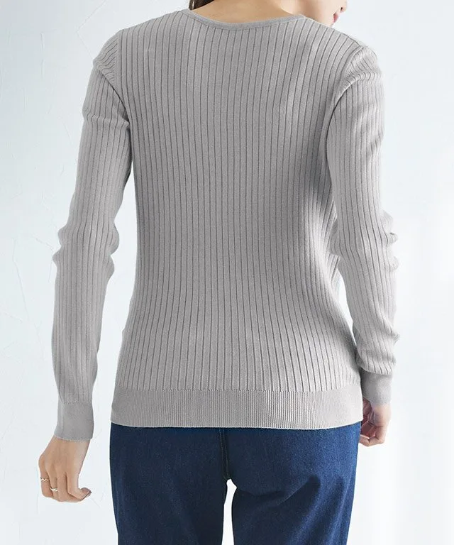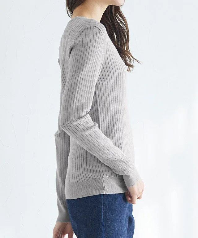[Вырез-лодочка] Плавный изгиб подчеркивает ключицы. Тонкая ребристая отделка по линии выреза создает утонченный, изысканный вид.