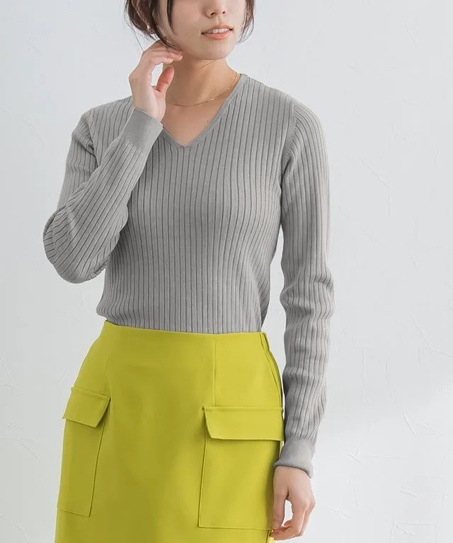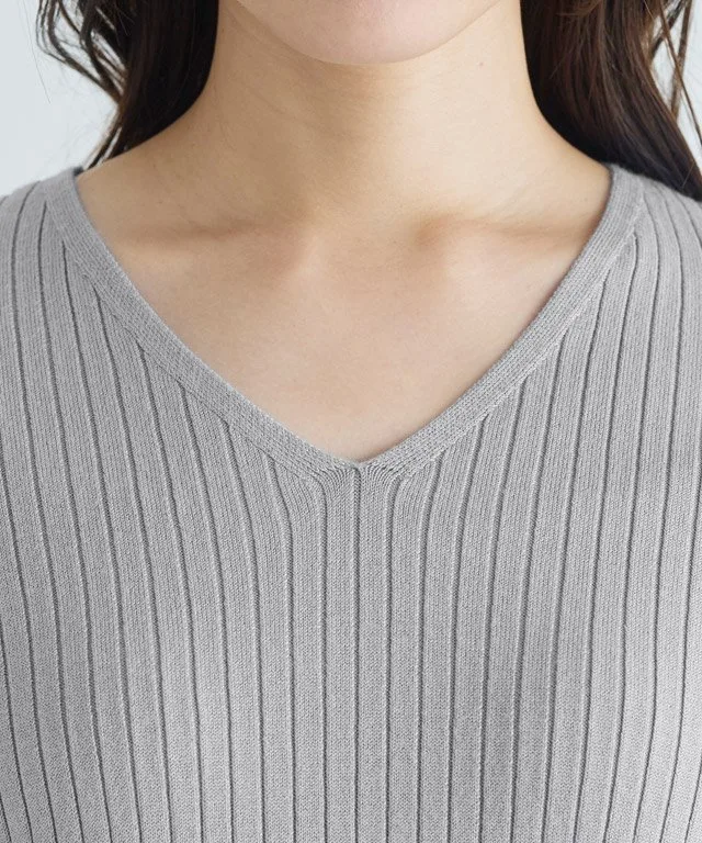 [V-образный вырез] Слегка открытый вырез подчеркивает декольте. Тщательно скроенный, полностью вязаный вырез создает изысканное, роскошное впечатление.