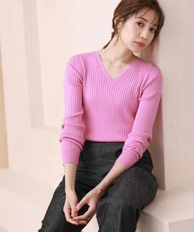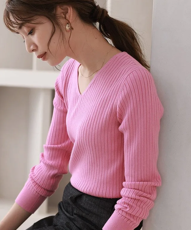 [V-образный вырез] Слегка открытый вырез подчеркивает декольте. Тщательно скроенный, полностью вязаный вырез создает изысканное, роскошное впечатление.