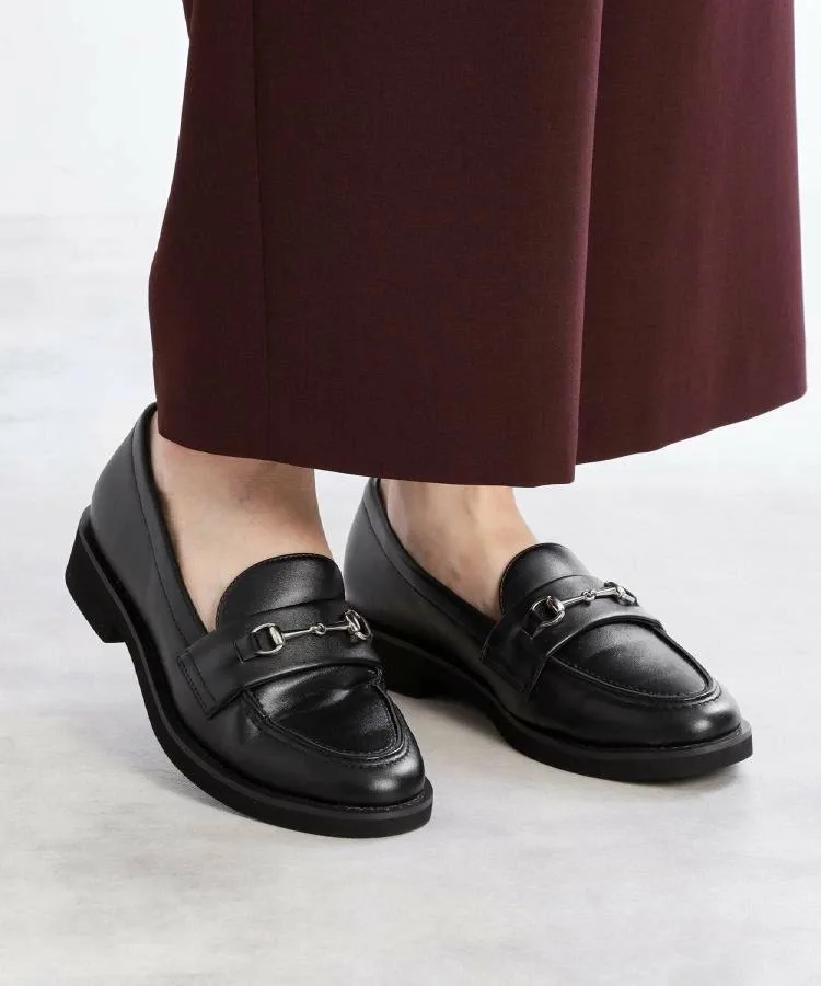 Эти лоферы имеют традиционный вид благодаря гладкому материалу и декоративной вставке на подъеме.