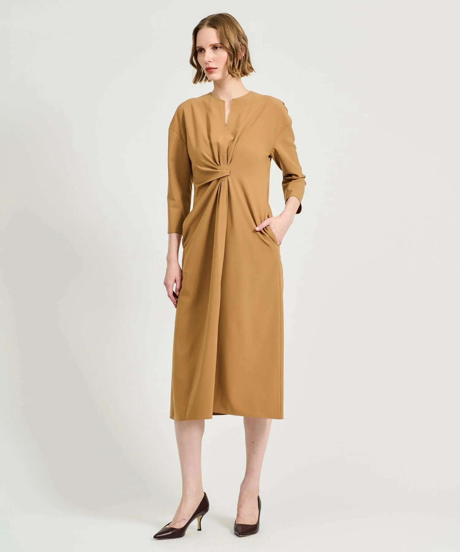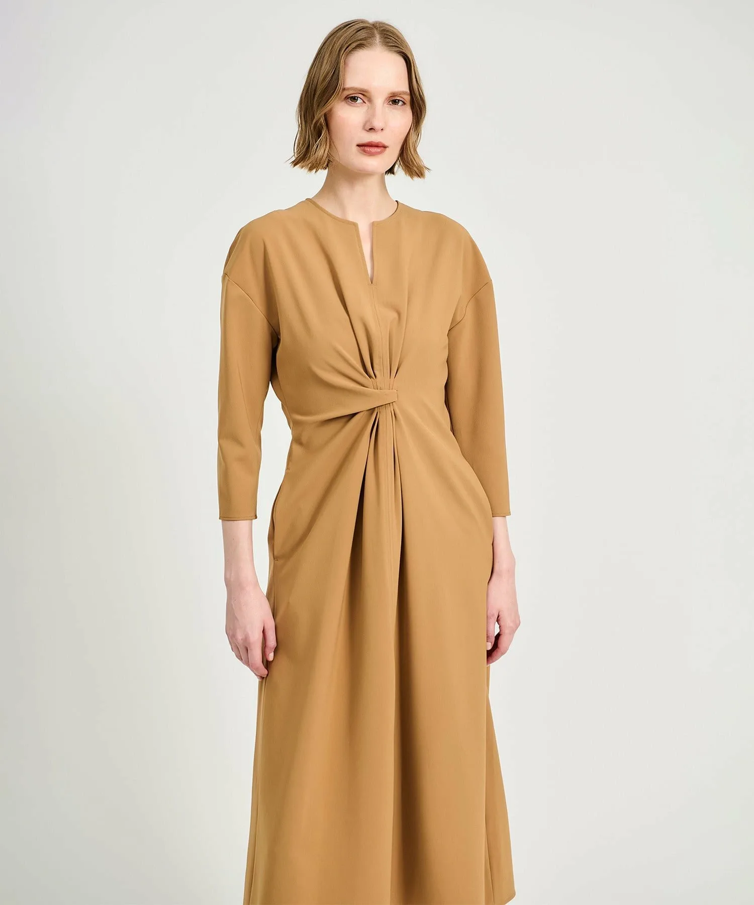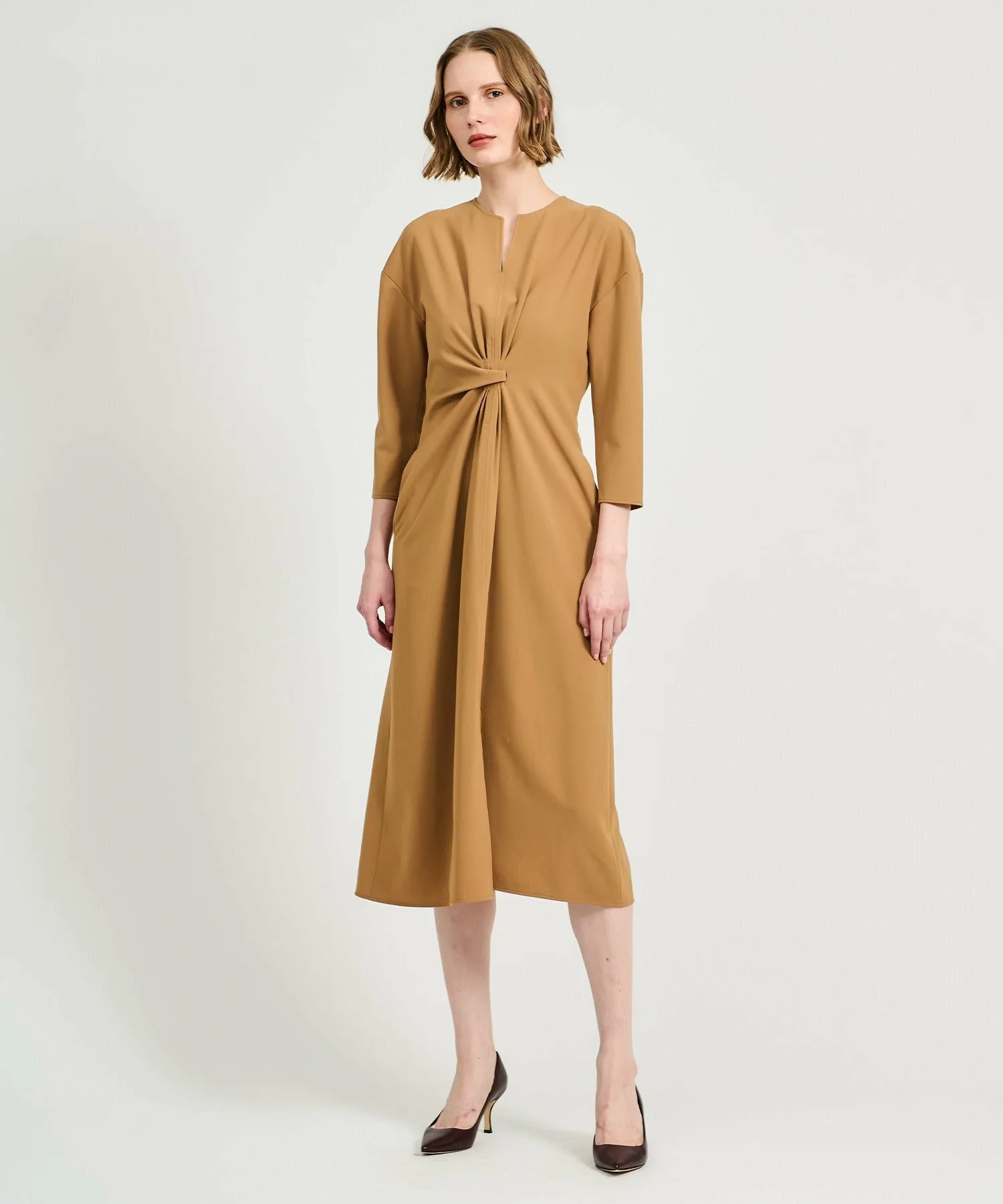 Элегантное платье с оригинальным перекрученным дизайном спереди.