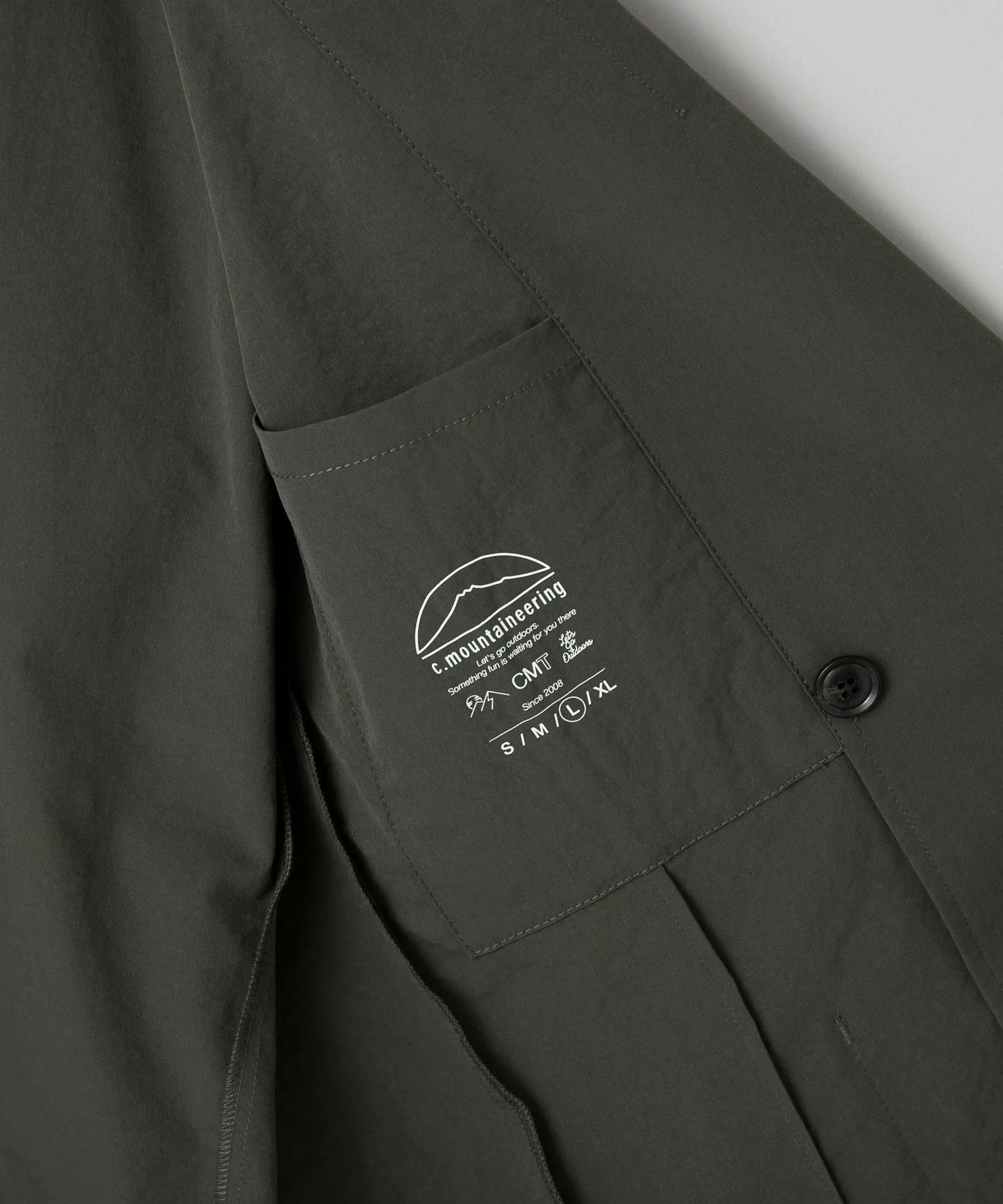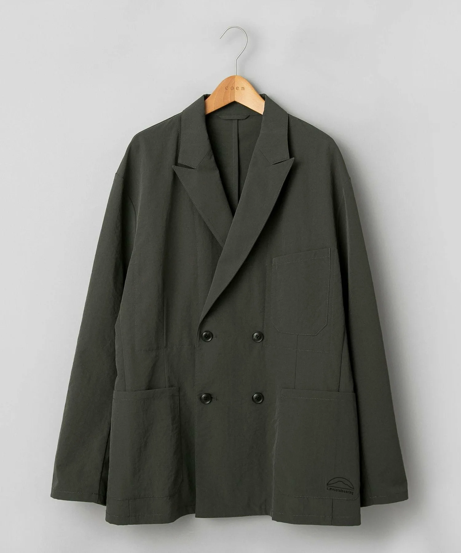 Куртка из чрезвычайно популярной серии C.Mountaineering , обладающая множеством функций. Несмотря на то, что этот двубортный пиджак выглядит формально, используемая полиэстеровая ткань придает ему эффект потертости (естественная мятая текстура), благодаря чему он легкий, удобный в надевании и создает непринужденный образ. Несмотря на простой дизайн, единственная вышивка возле левого кармана добавляет тонкий акцент. Свободный крой не слишком свободный, поэтому его можно носить как в комплекте, так и с различными вариантами низа.