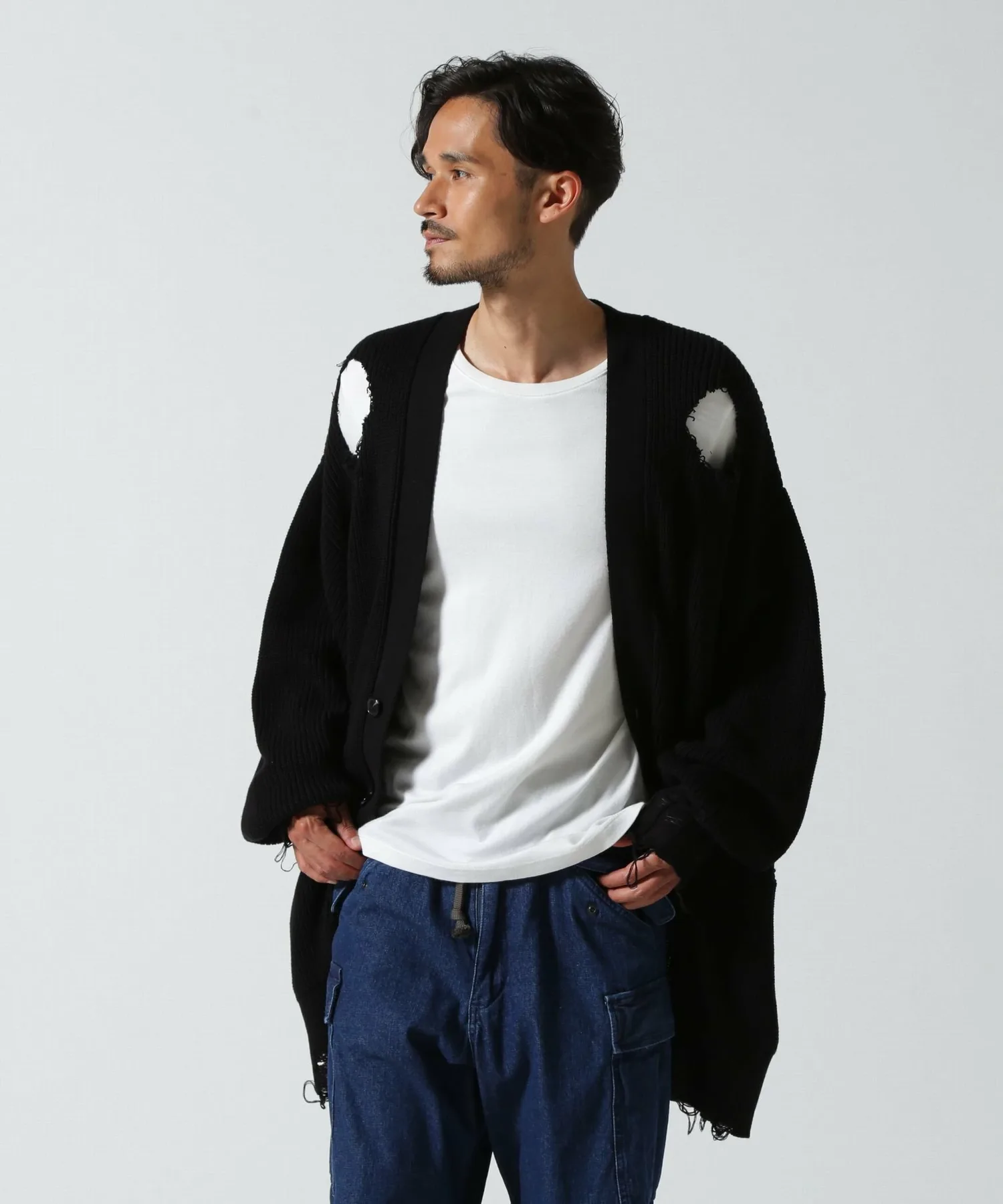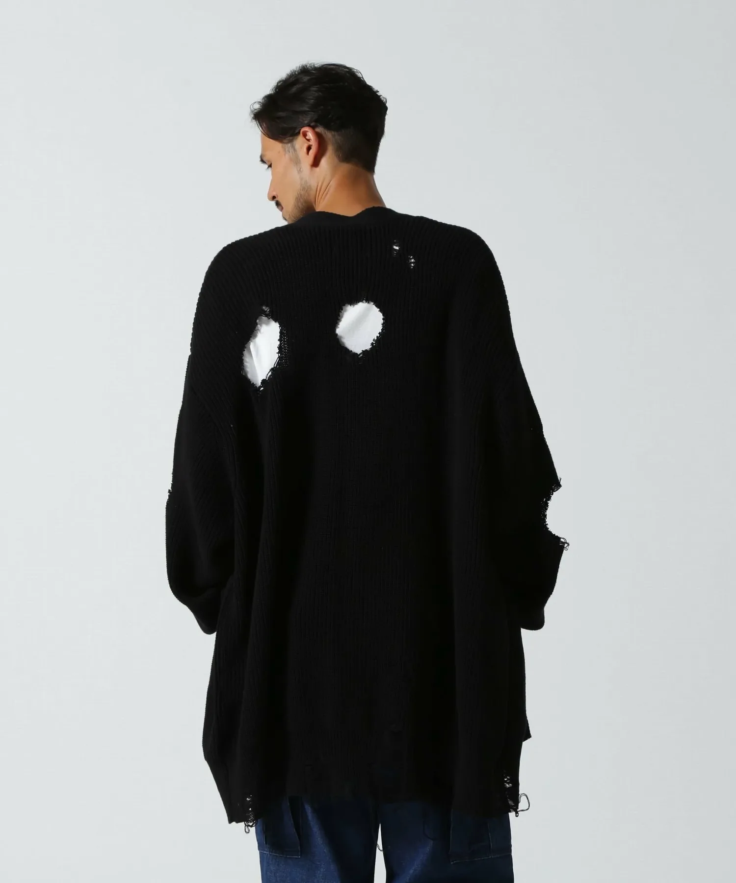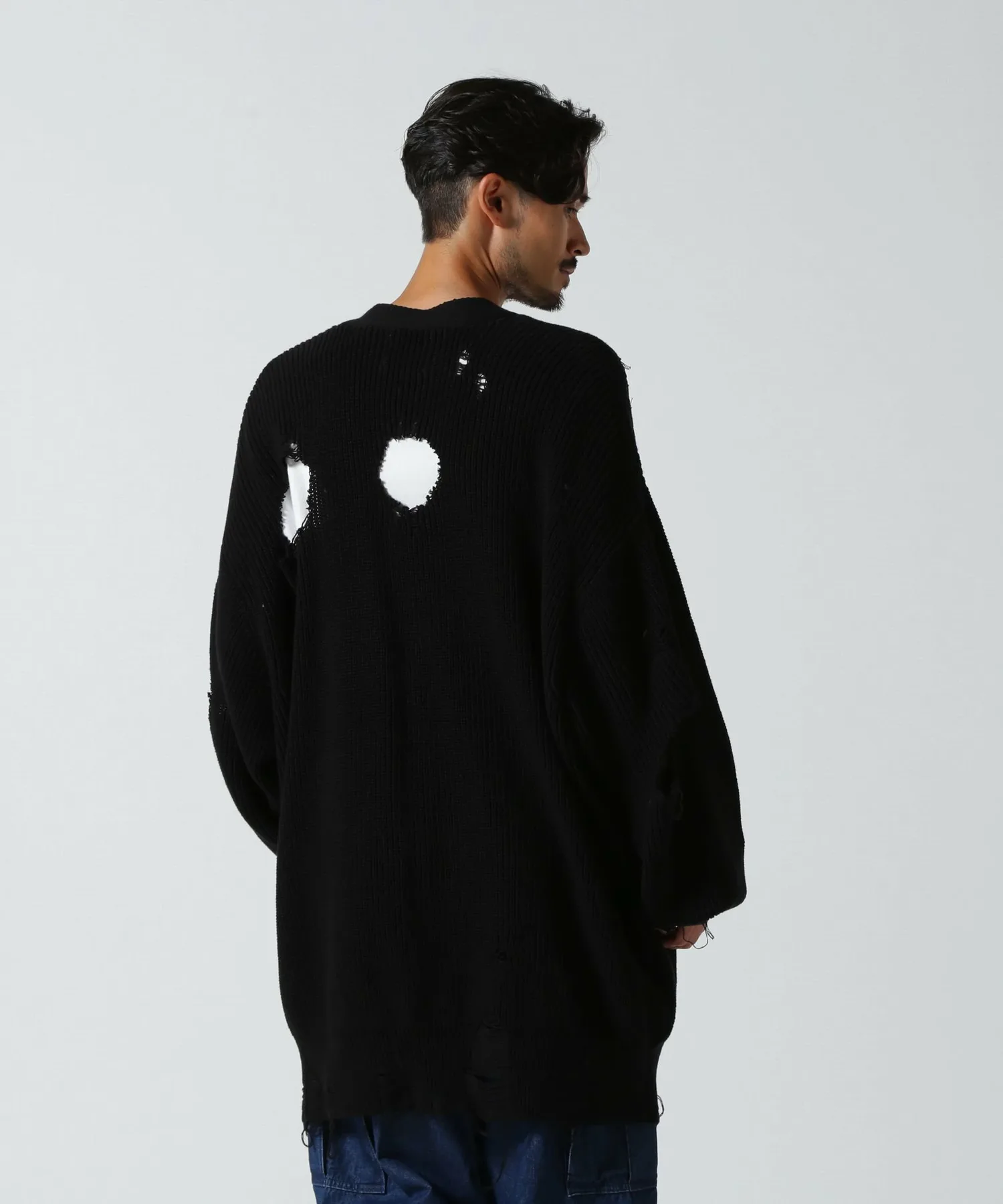 Смелый, потертый кардиган с ярким акцентом.