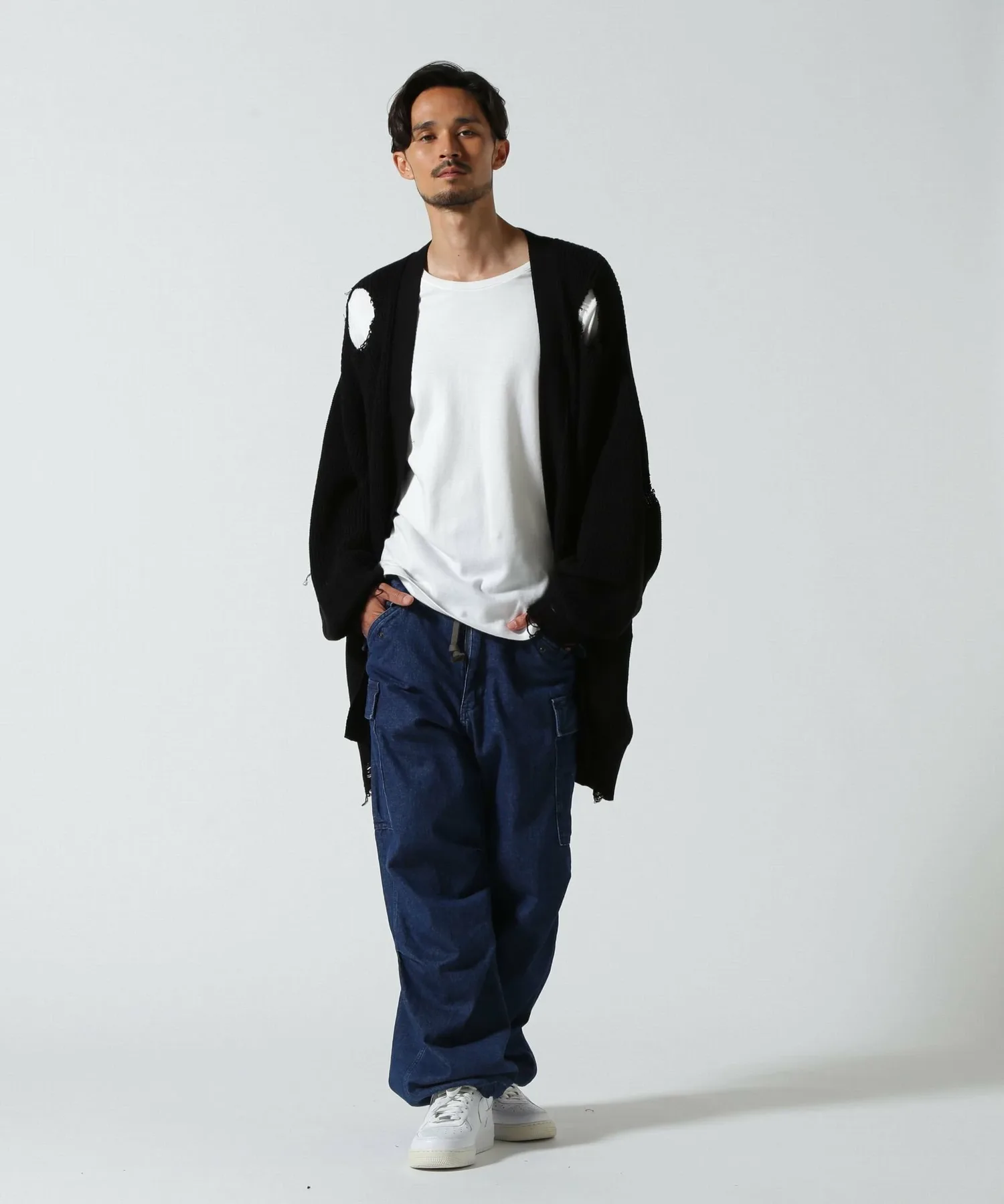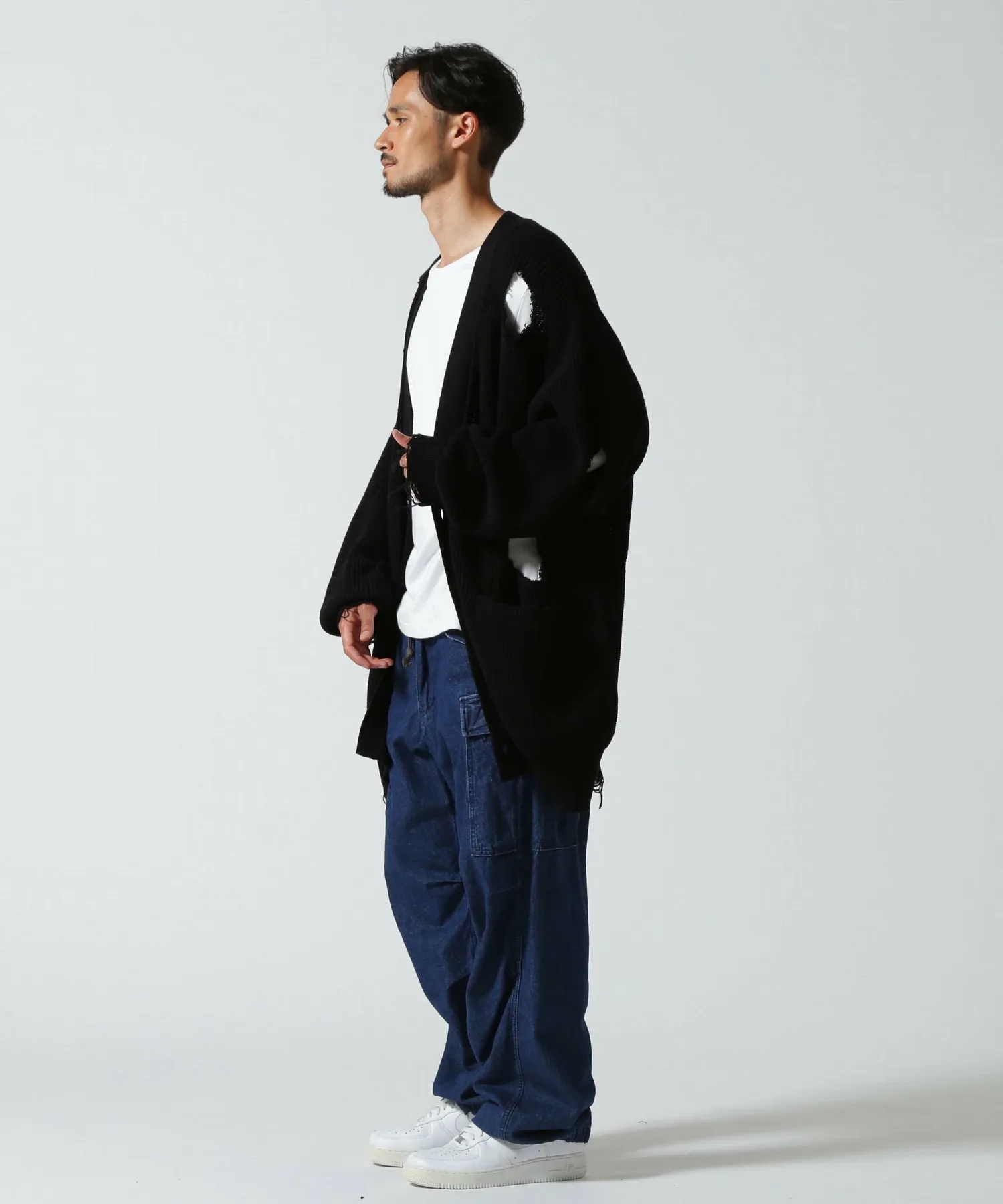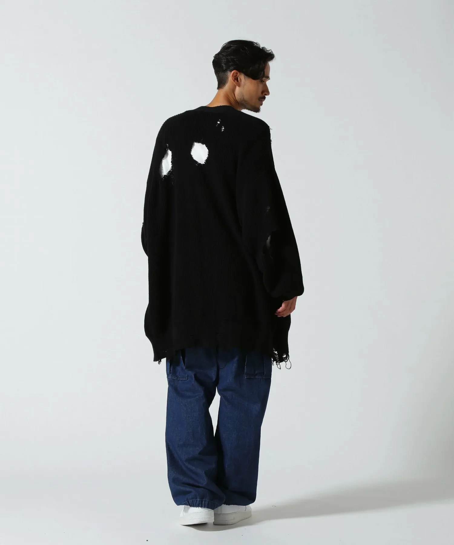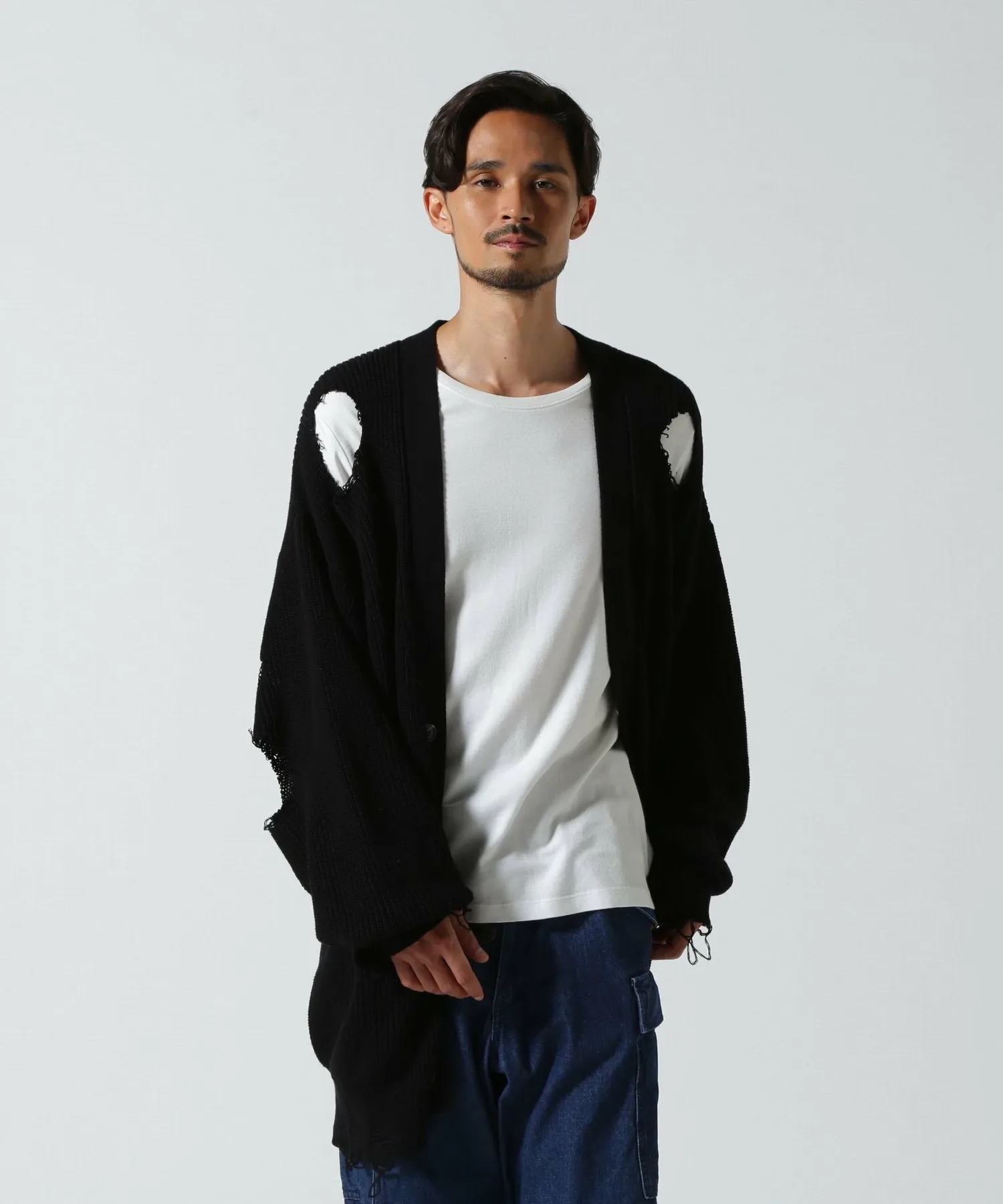 Смелый, потертый кардиган с ярким акцентом.
