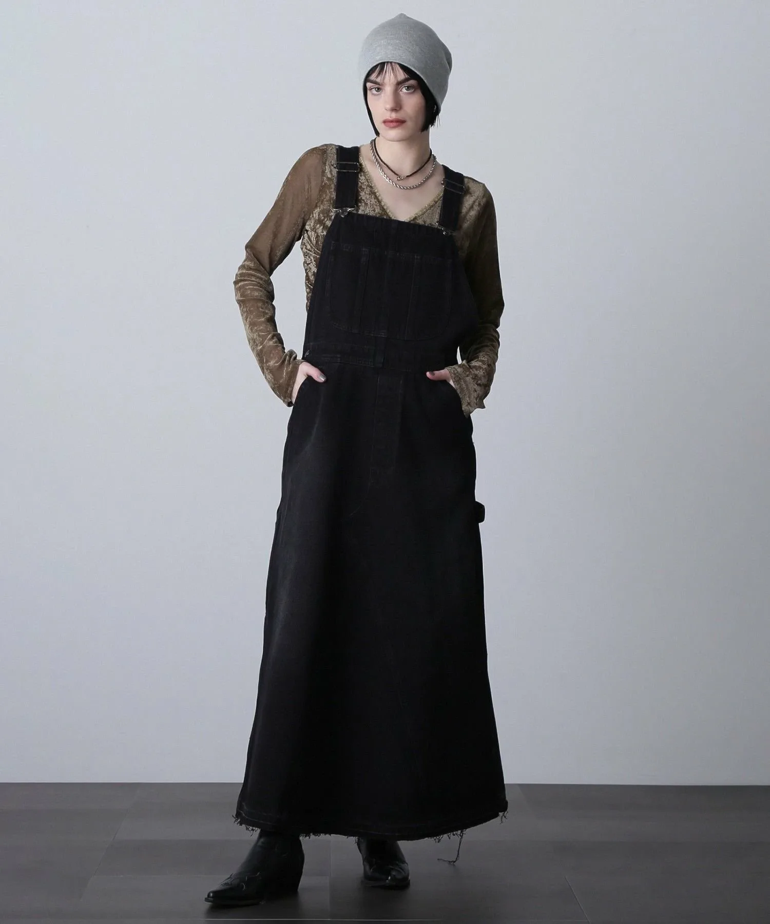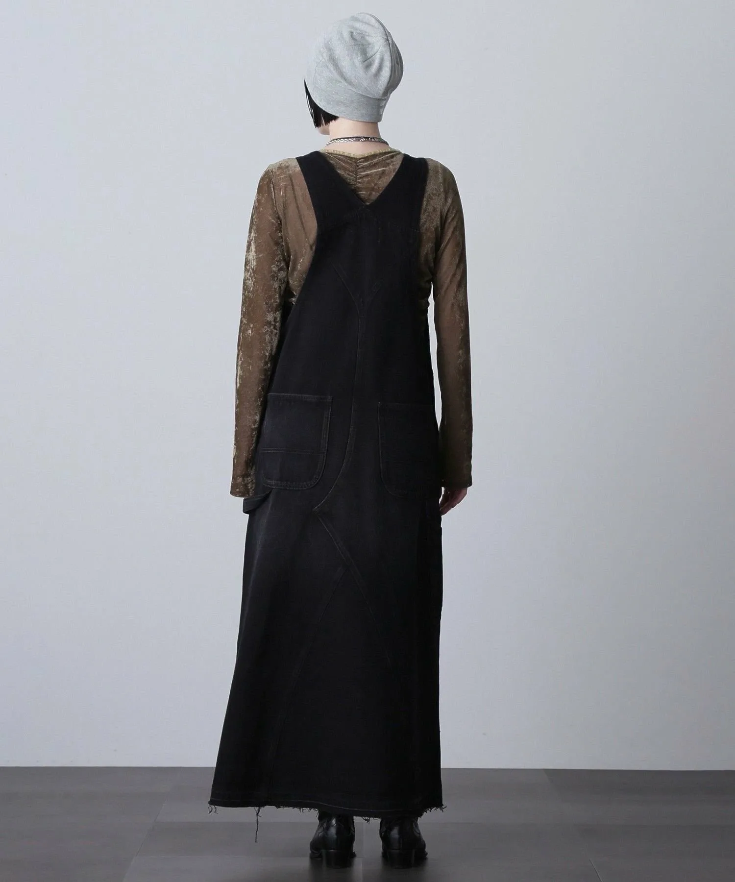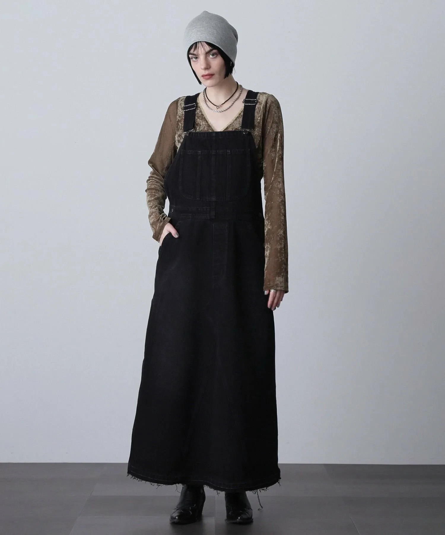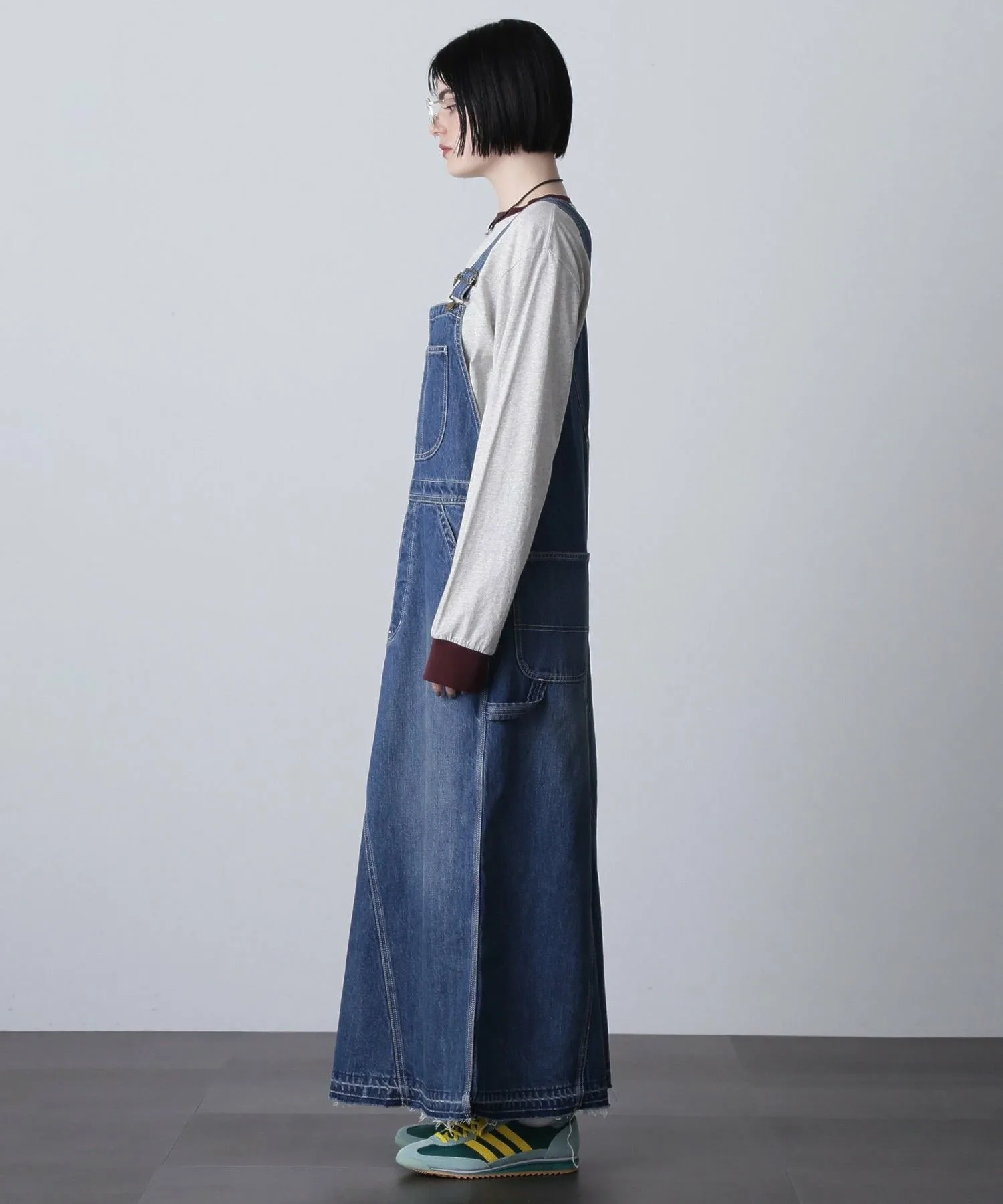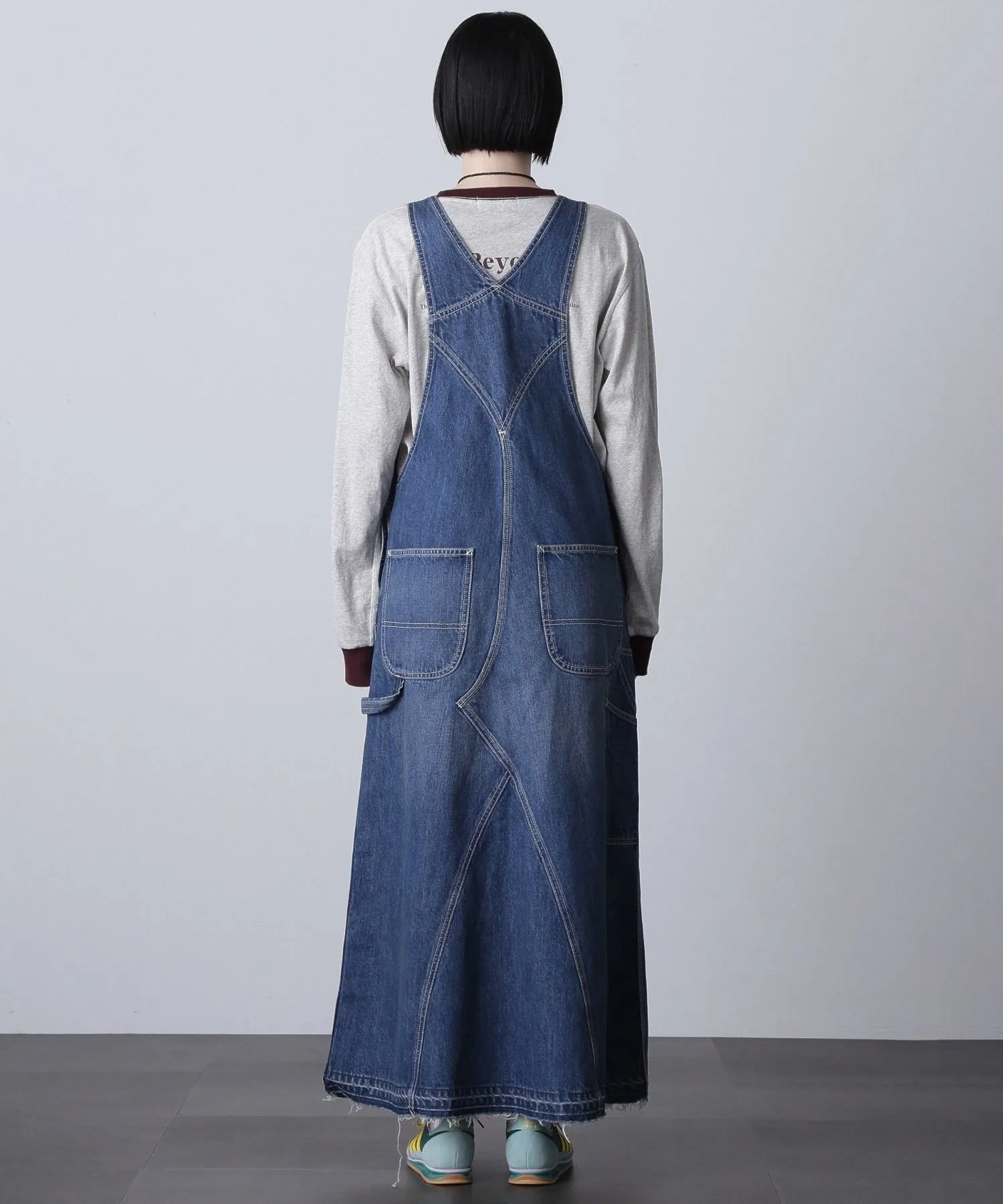 Дизайн, напоминающий джинсовый комбинезон, переделанный в юбку-комбинезон.