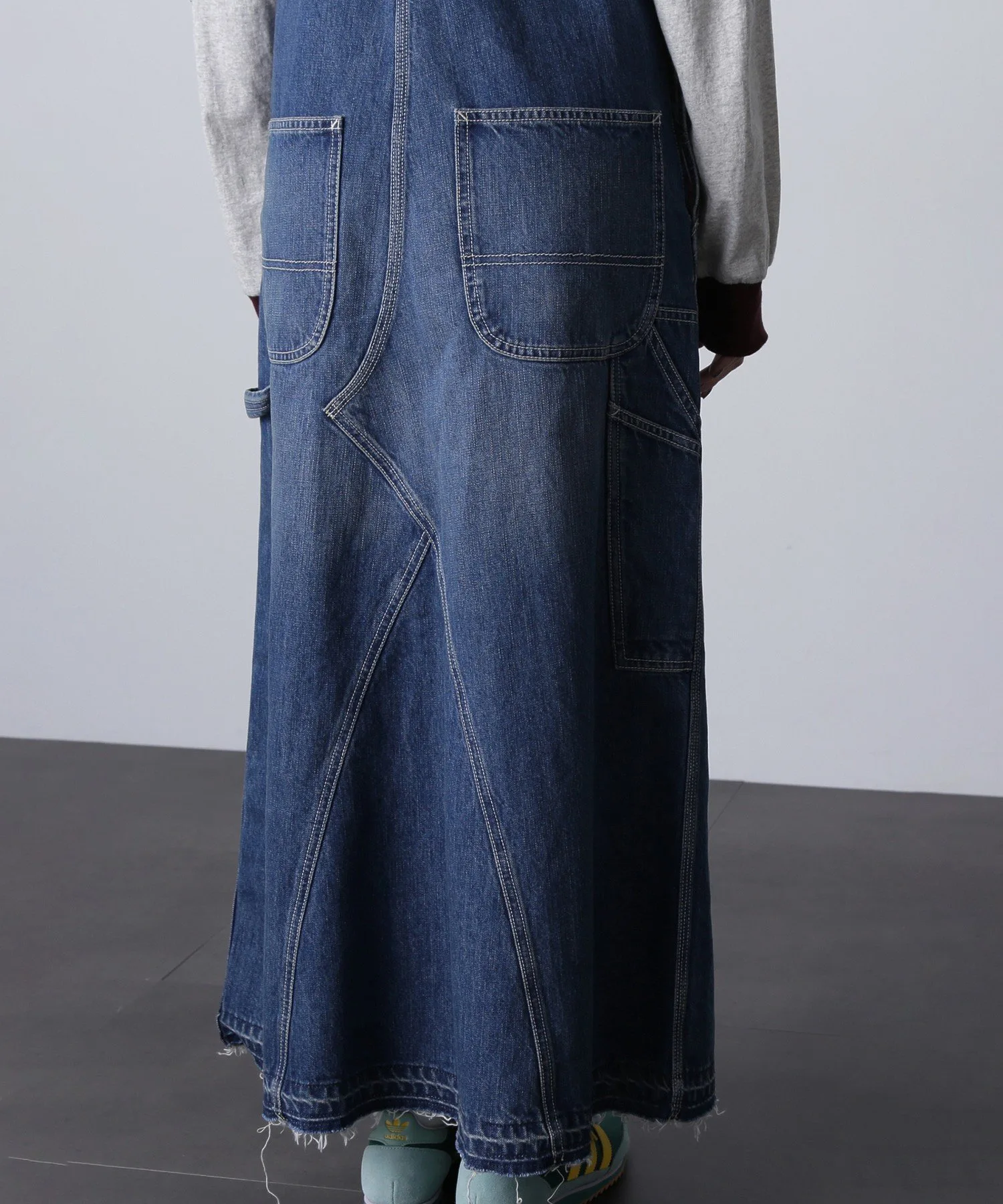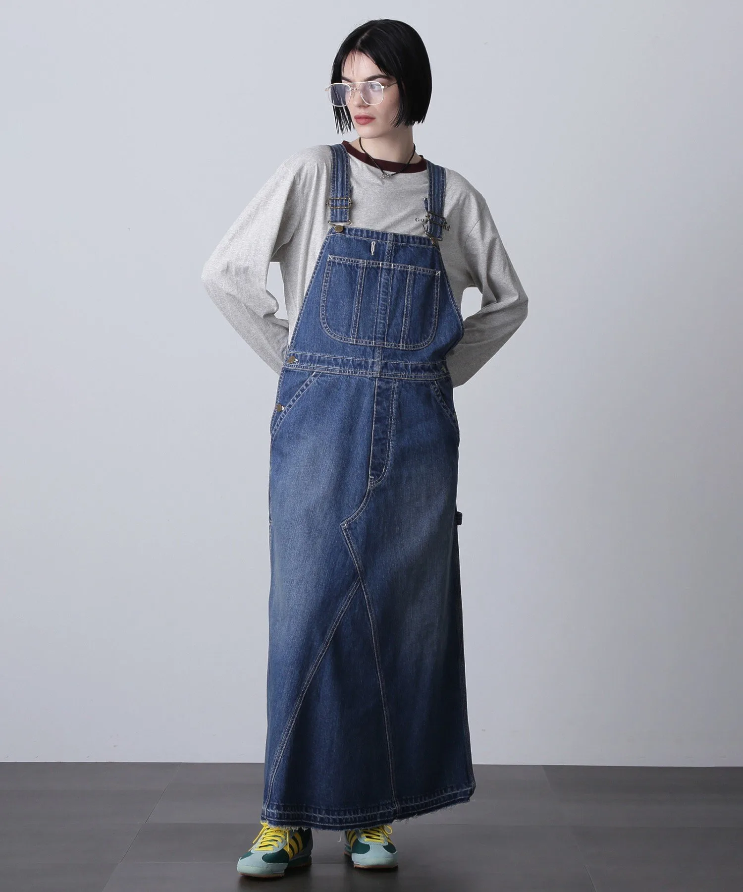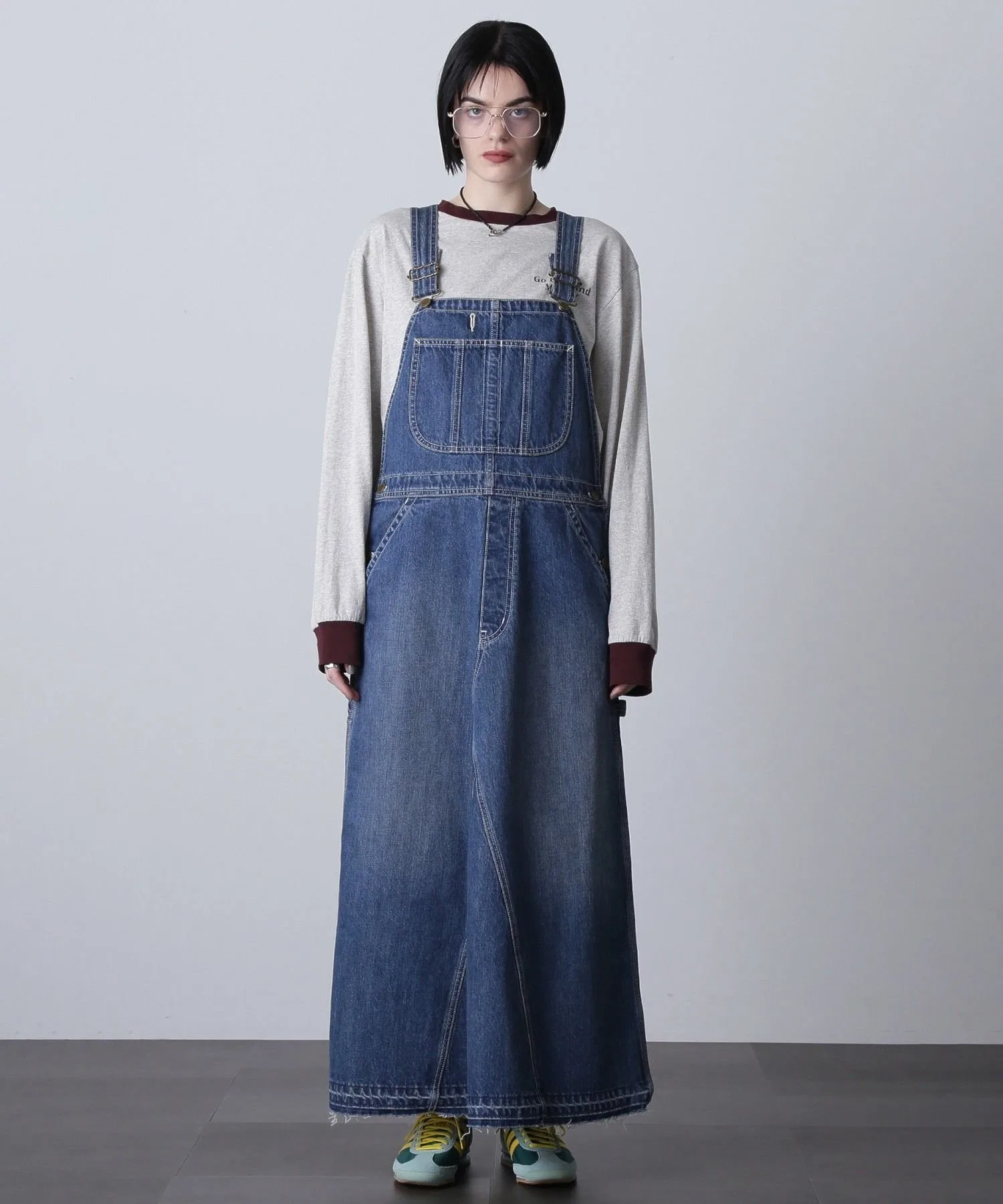 Дизайн, напоминающий джинсовый комбинезон, переделанный в юбку-комбинезон.