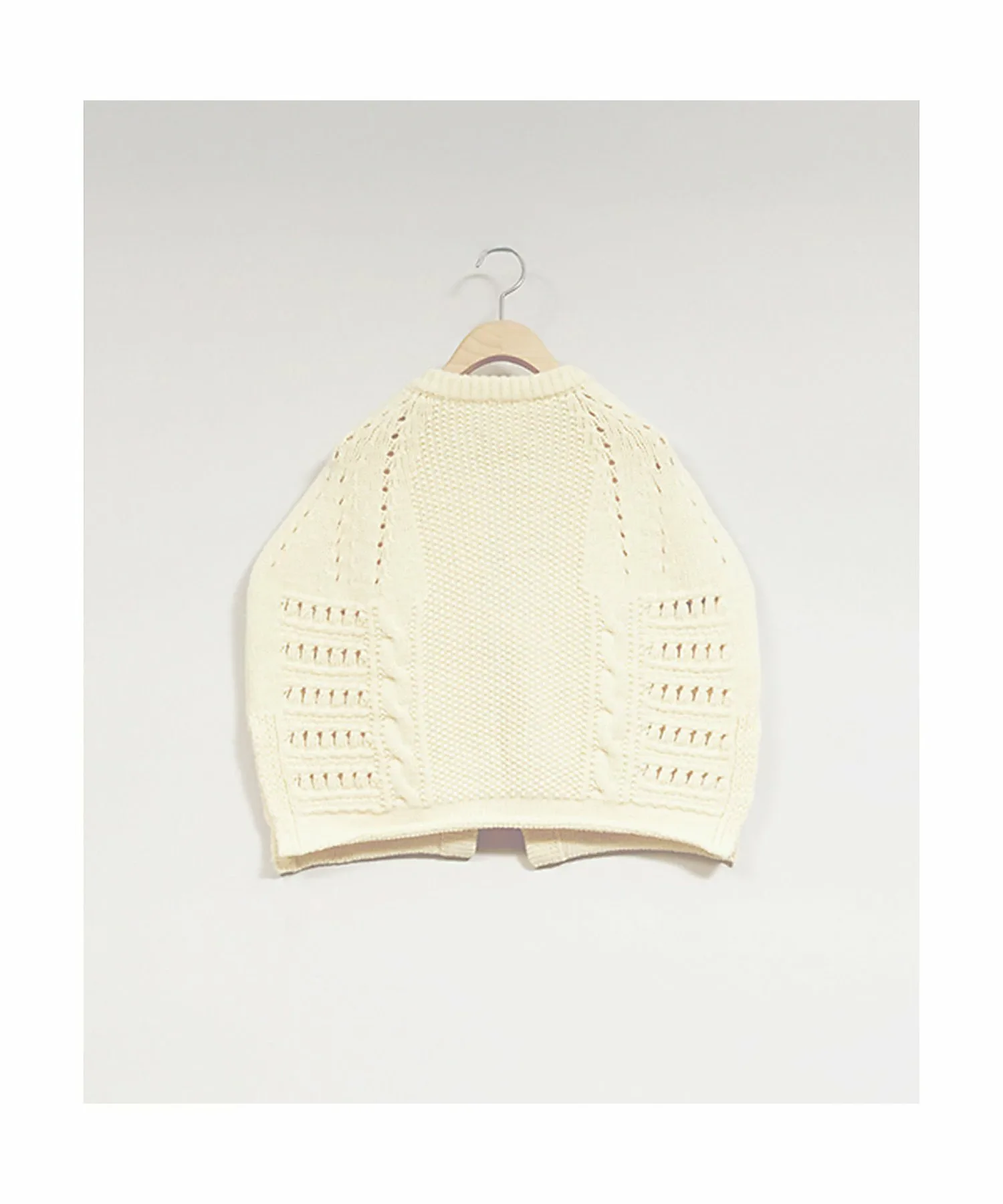 Эта накидка — адаптированный вариант узора вязания традиционного британского рыбацкого свитера «Ганси Книт». Изготовленная из высококачественной мериносовой шерсти, она теплая, объемная и создает ощущение объема, при этом оставаясь легкой и мягкой на ощупь. Носите ее поверх платья или топа в холодное время года или сочетайте с пальто в середине зимы. Наслаждайтесь разнообразием многослойных образов в зависимости от температуры.