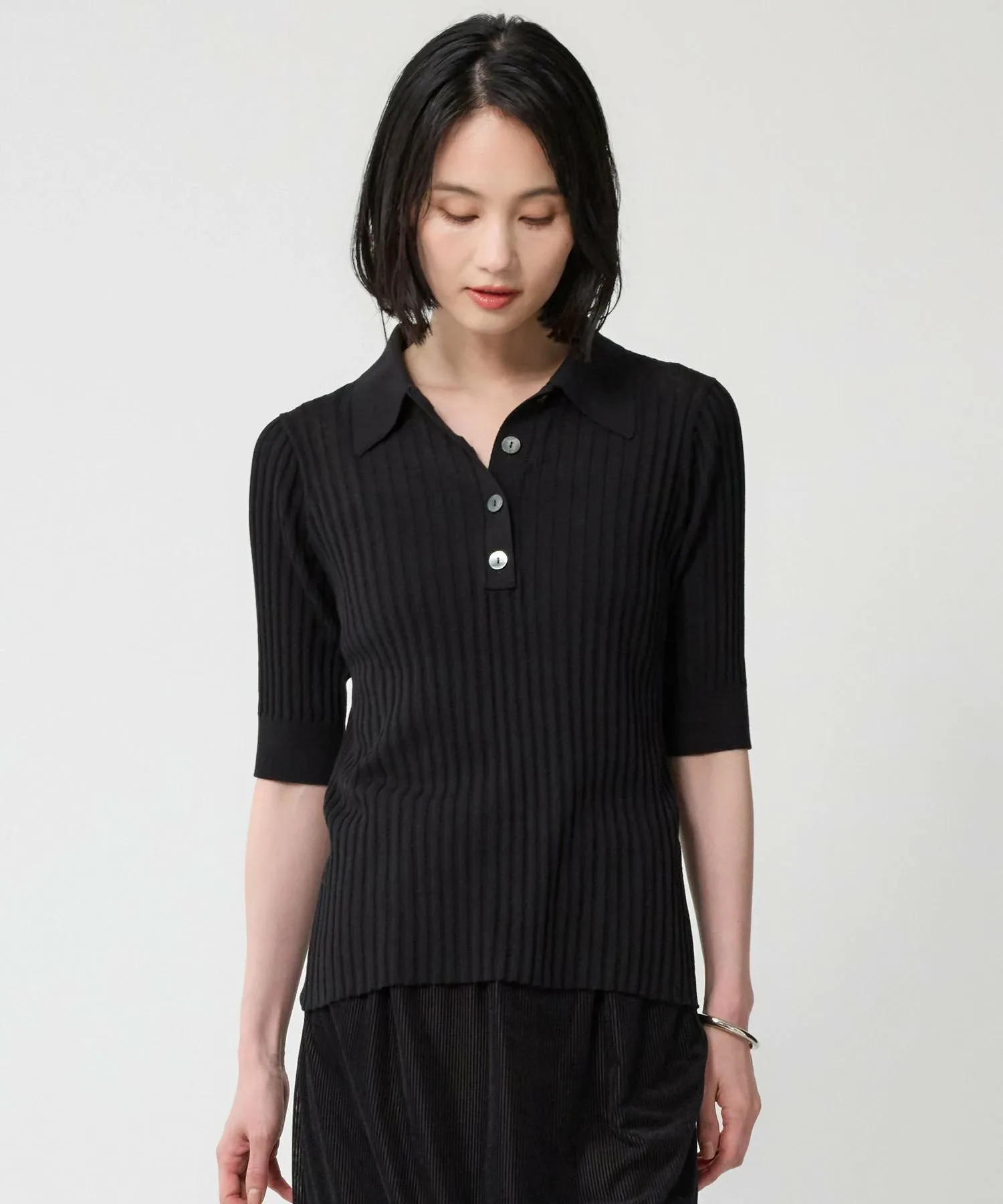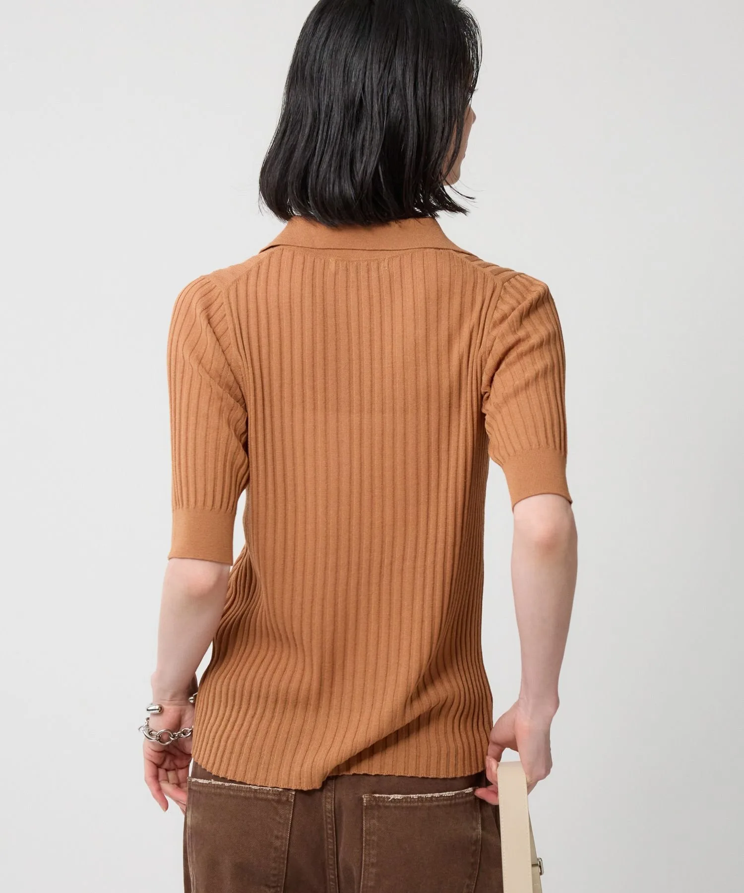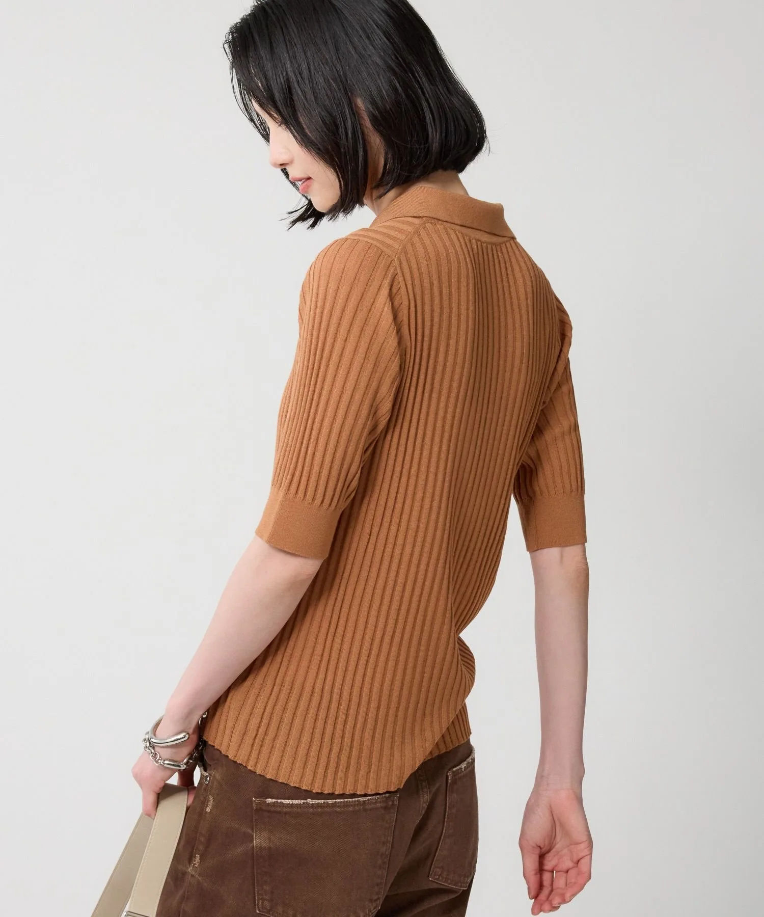 Поло из трикотажа в широкую резинку, создающее изысканный базовый образ