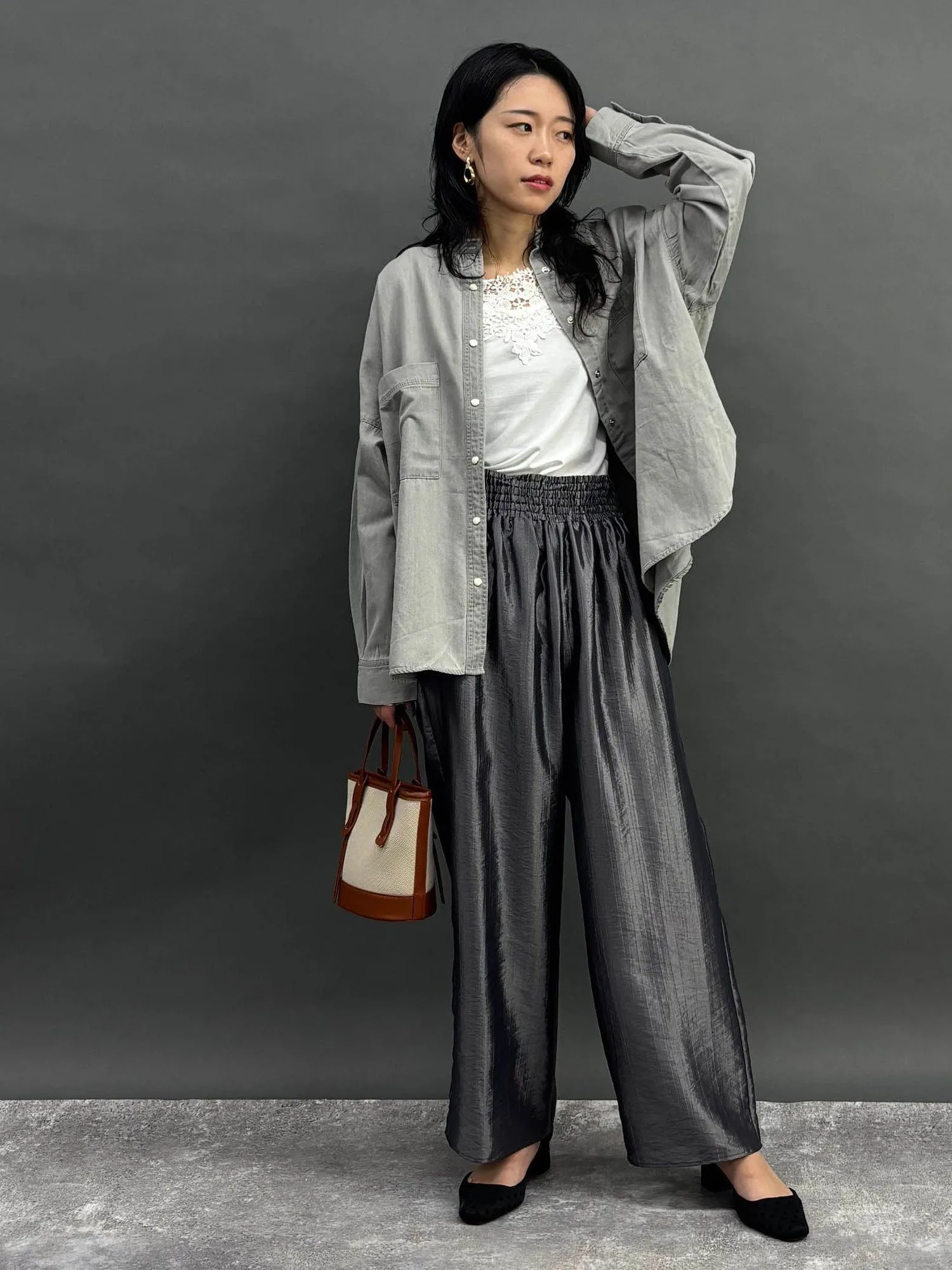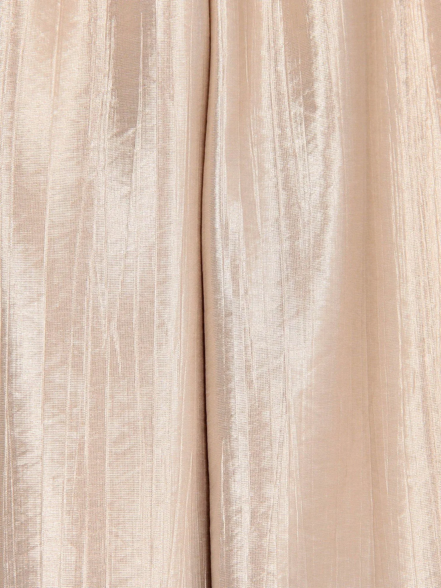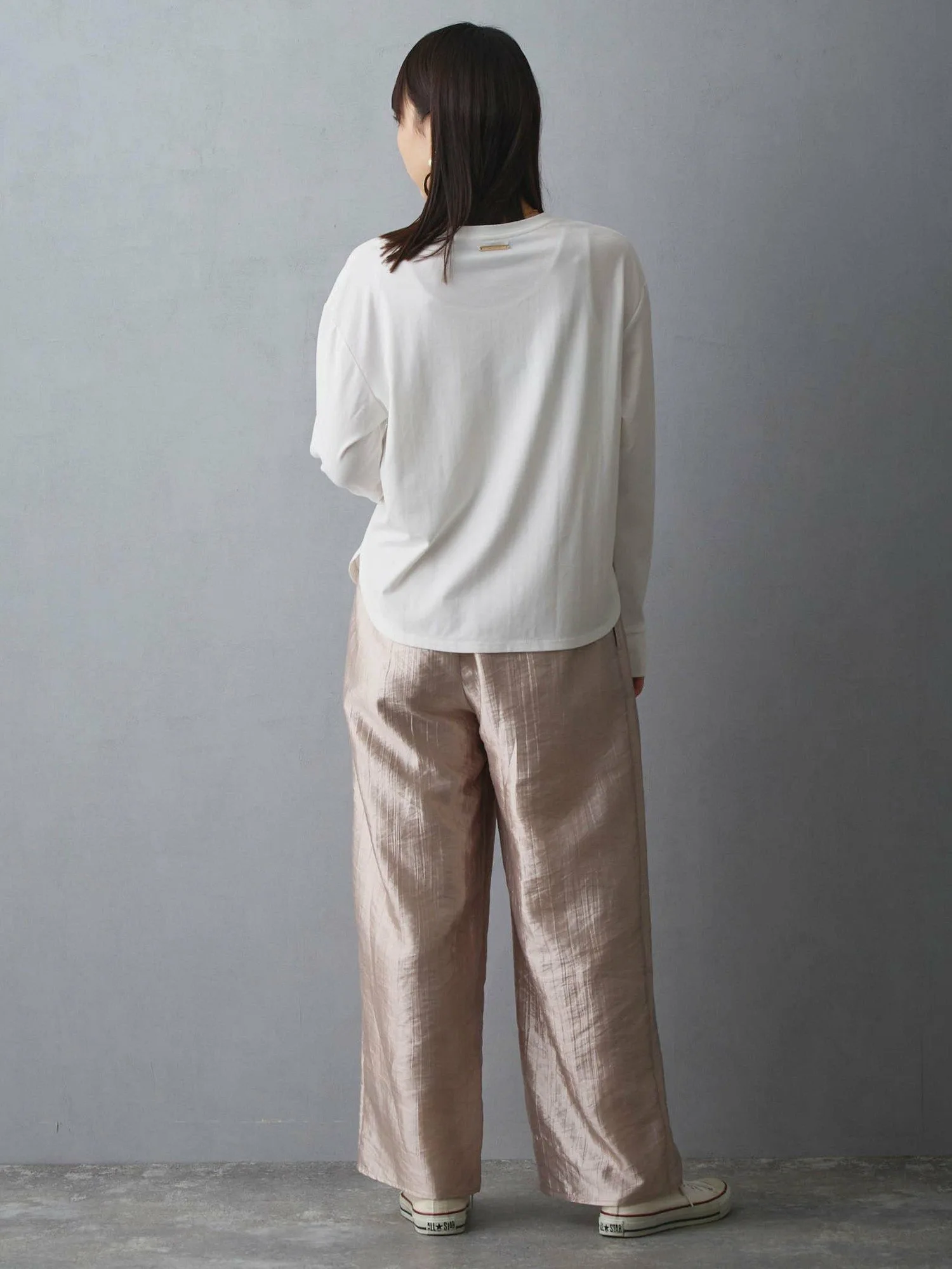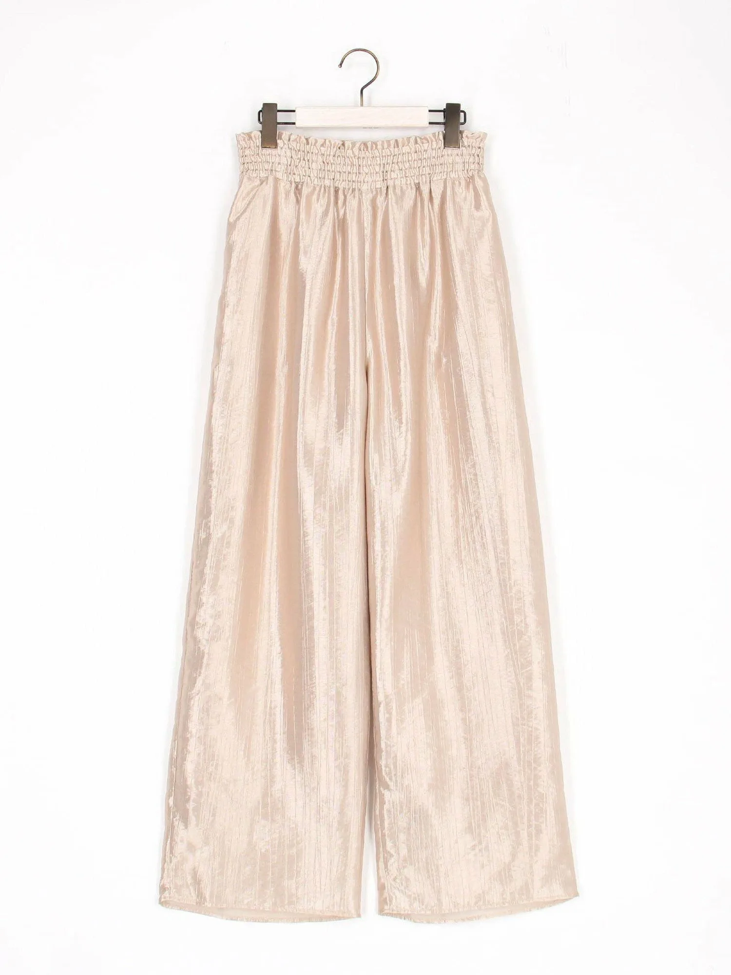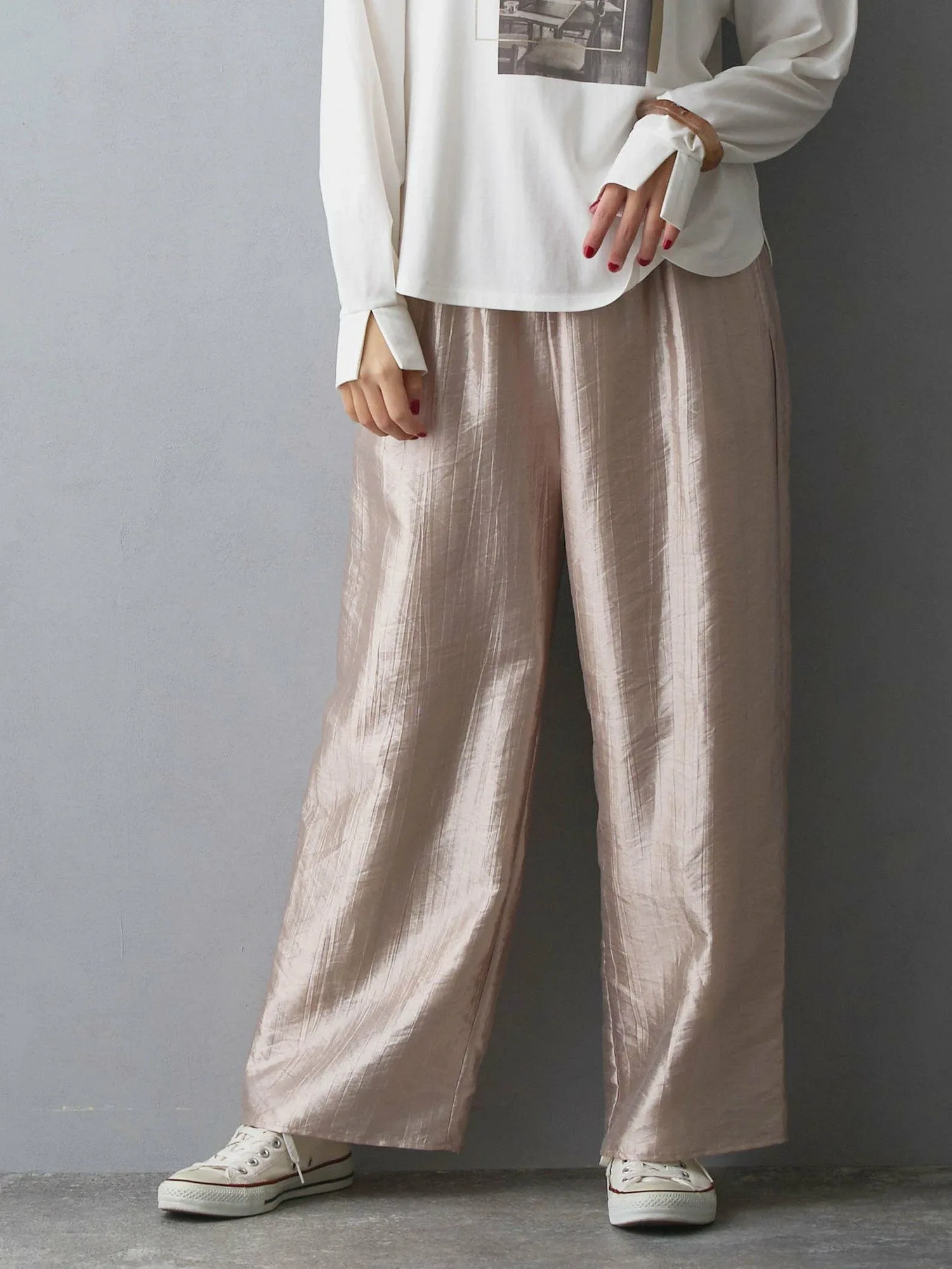 Эти брюки с оборками имеют не слишком броский блеск, что делает их модными и создает солидный образ.
