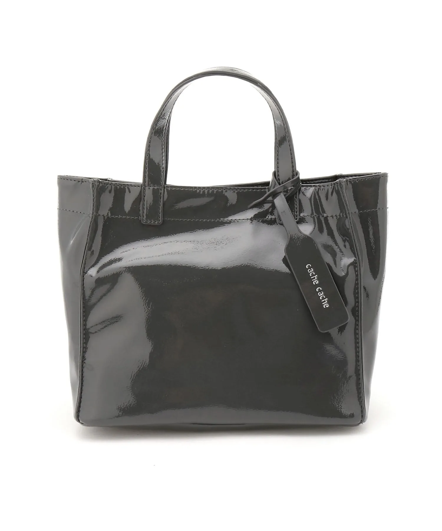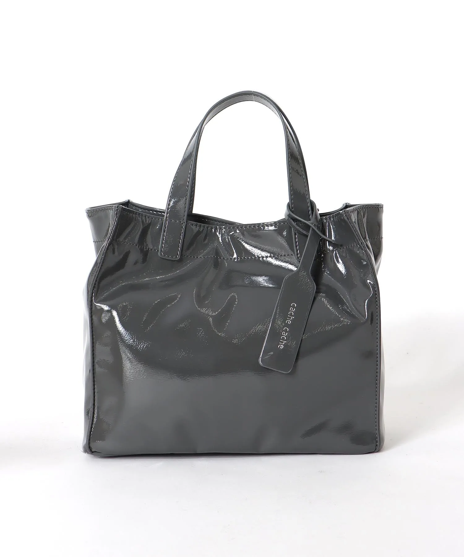 Квадратная сумка-тоут из роскошной мягкой эмалированной синтетической кожи.