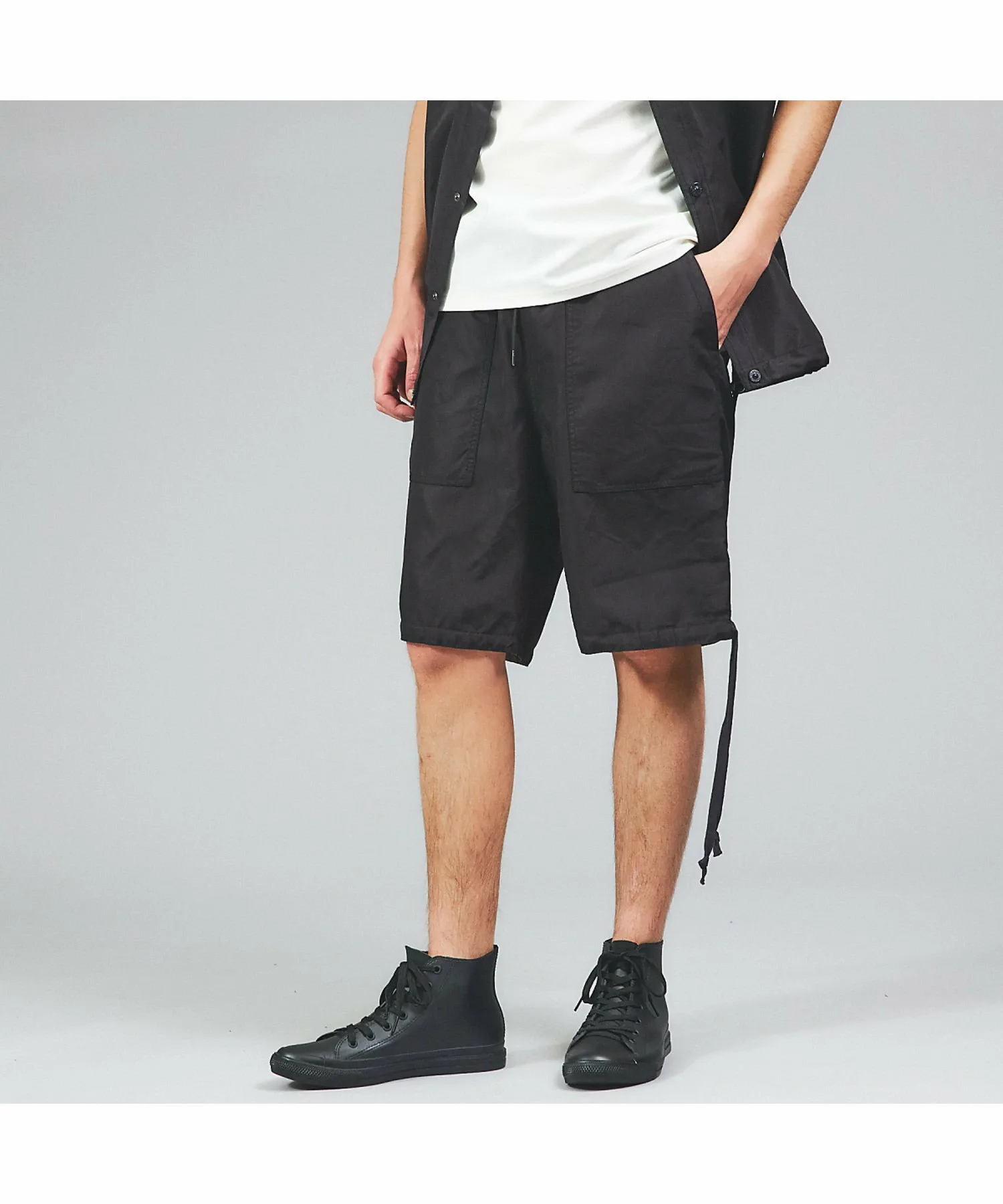 - Эту вещь можно носить различными способами, подвернув низ или оставив шнурок свободно свисать.