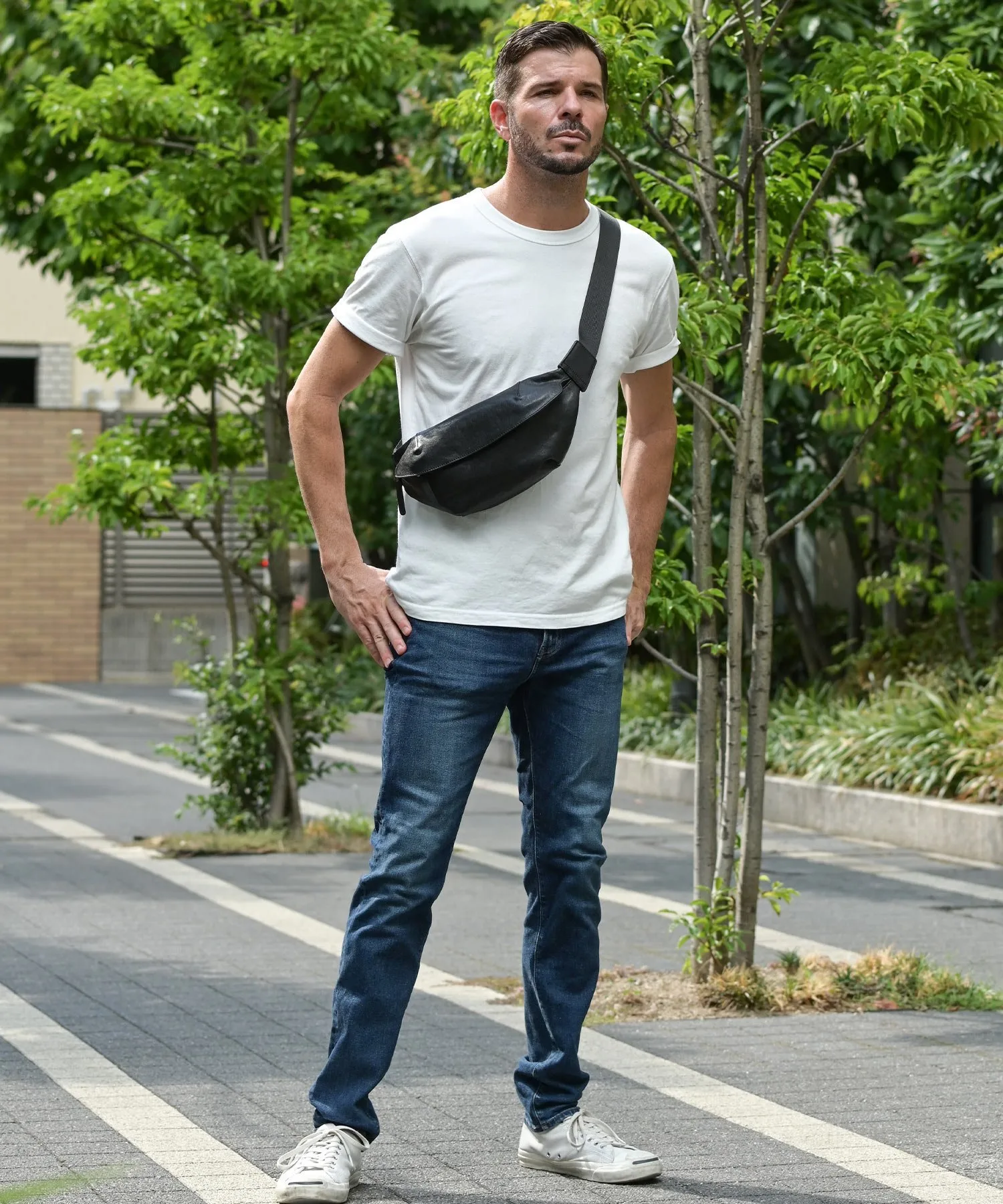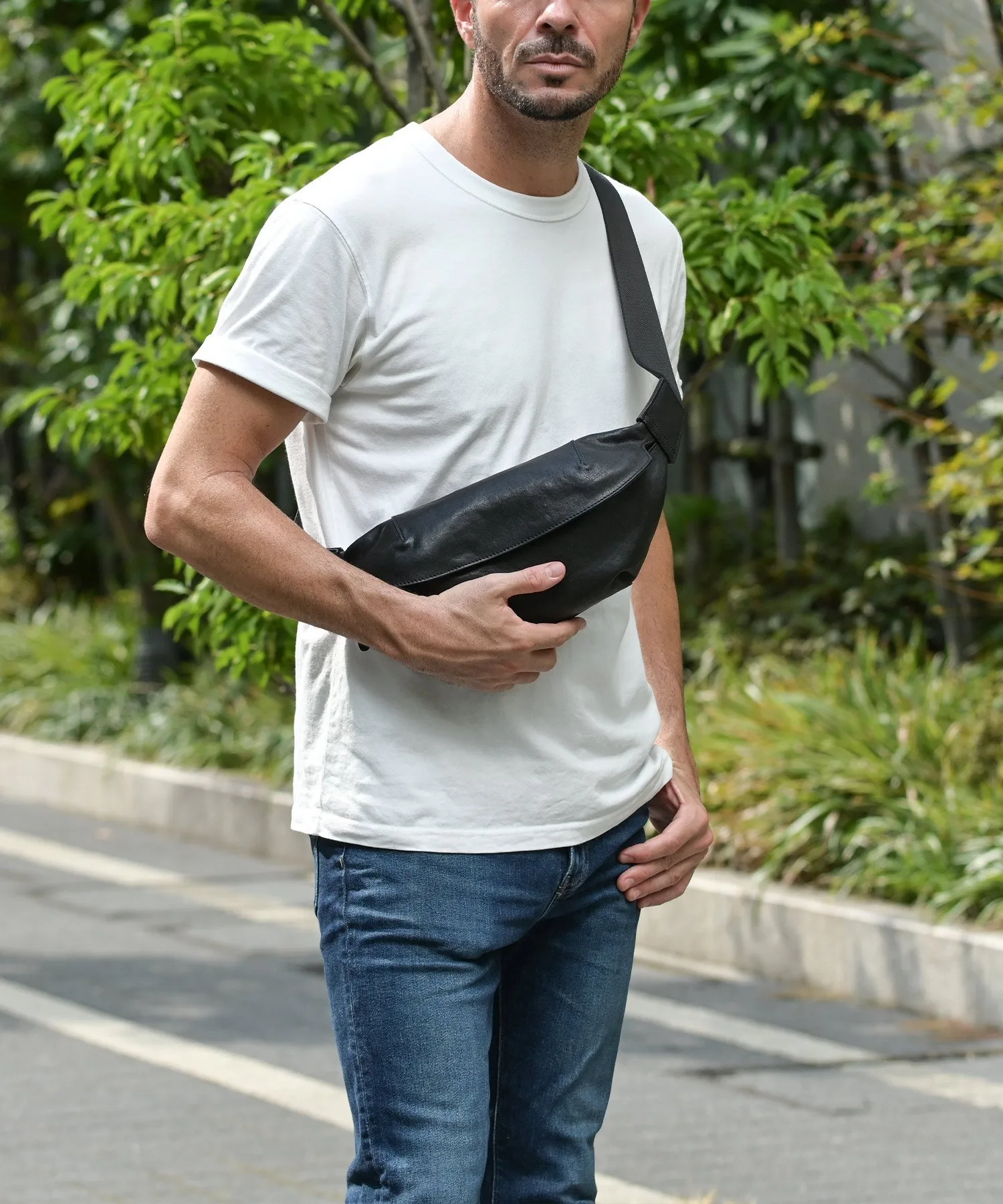 Итальянская кожаная сумка для тела, в которой акцент сделан на практичность и форму.