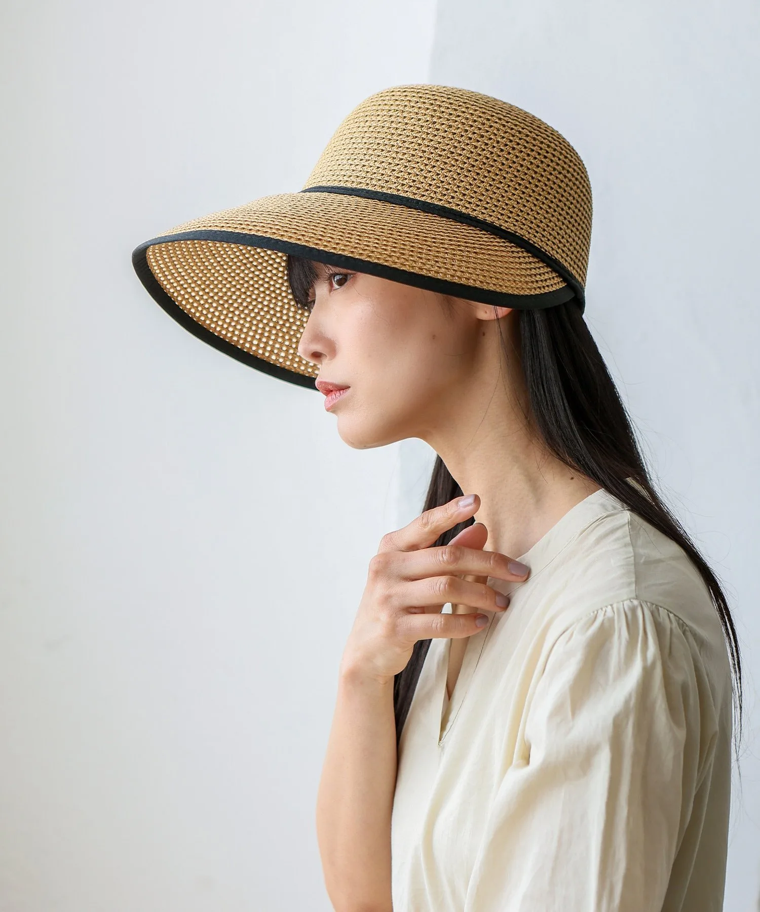 Натуральная текстура идеально подходит для весенних и летних нарядов. Она универсальна, от повседневного до курортного стиля, легкая и удобная в ношении. Рекомендуется тем, кто хочет стильной защиты от УФ-излучения.