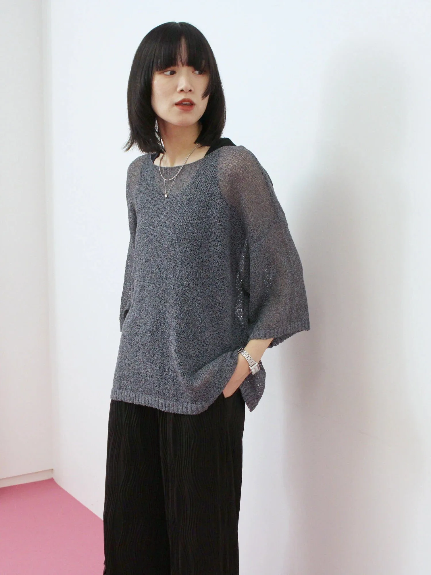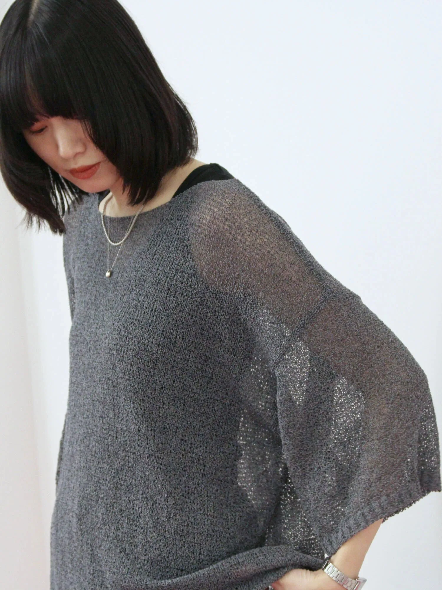 Прозрачный трикотаж свободного кроя, который можно носить в повседневной жизни.