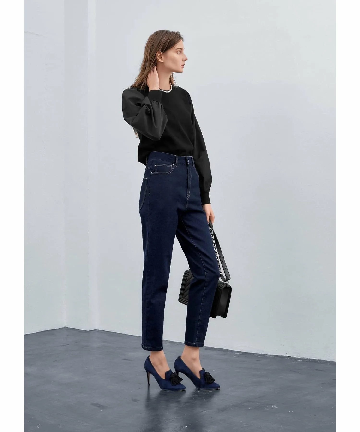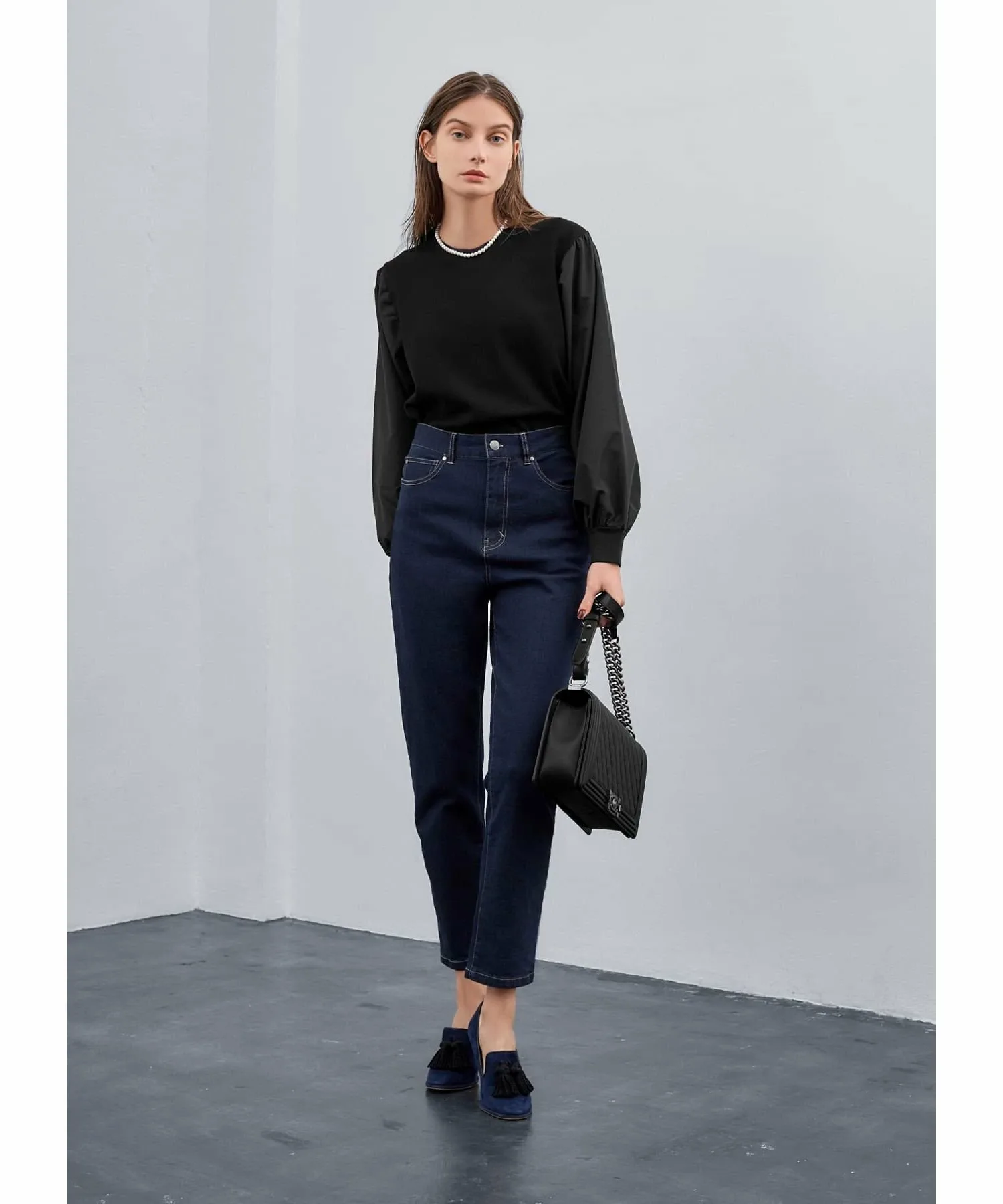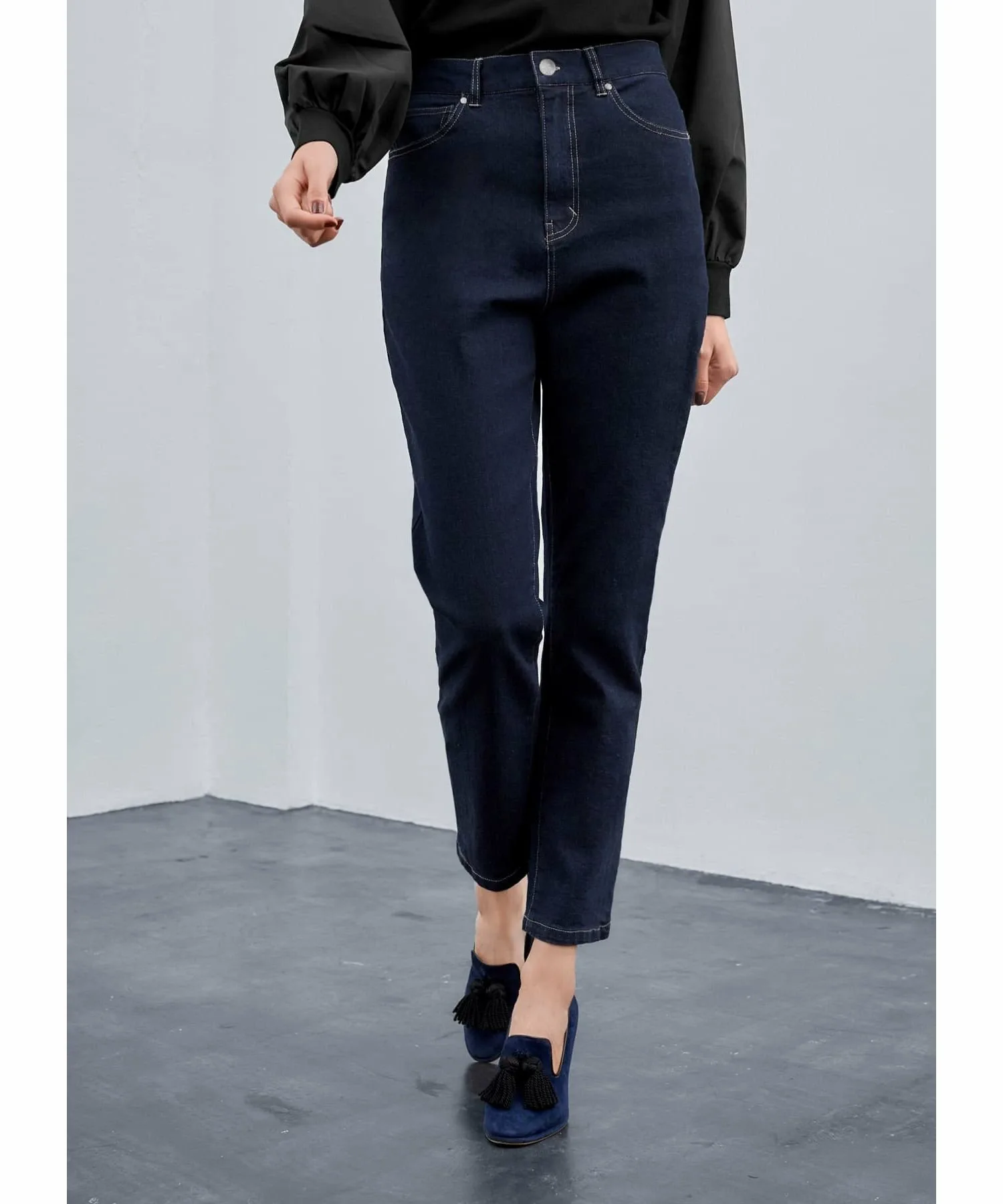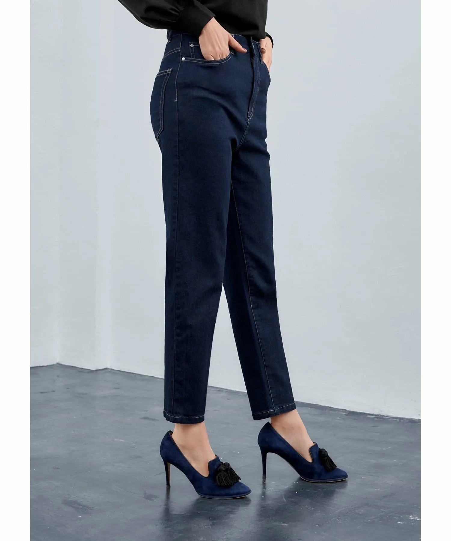 Эти элегантные джинсы вдохновлены джинсами, которые носят парижанки. Они созданы, чтобы дополнять женственные блузки, трикотаж, куртки и туфли на каблуках, создавая изысканный образ. (*) Эластичная ткань обеспечивает свободу движений, а глубокий темно-синий цвет создает эффект стройности. Идеально подходят для тех, кто ищет джинсы, которые не выглядят слишком повседневно. Поскольку это джинсы, они также хорошо сочетаются с кроссовками и толстовками для создания повседневного образа. [Примечания] Эти джинсы созданы для того, чтобы мило смотреться, заправленными в топ, поэтому они имеют свободный крой в талии. Плотная посадка тоже подойдет, так что не беспокойтесь. Заправьте в них плотный трикотаж и повяжите шарф на шее для непринужденно стильного французского образа. [Дизайн и характеристики] Этот темно-синий деним был предварительно выстиран, чтобы сохранить цвет индиго.