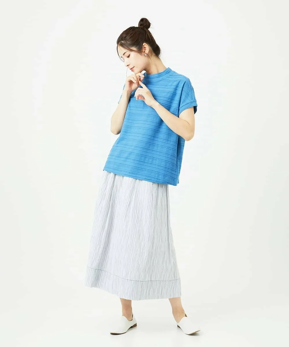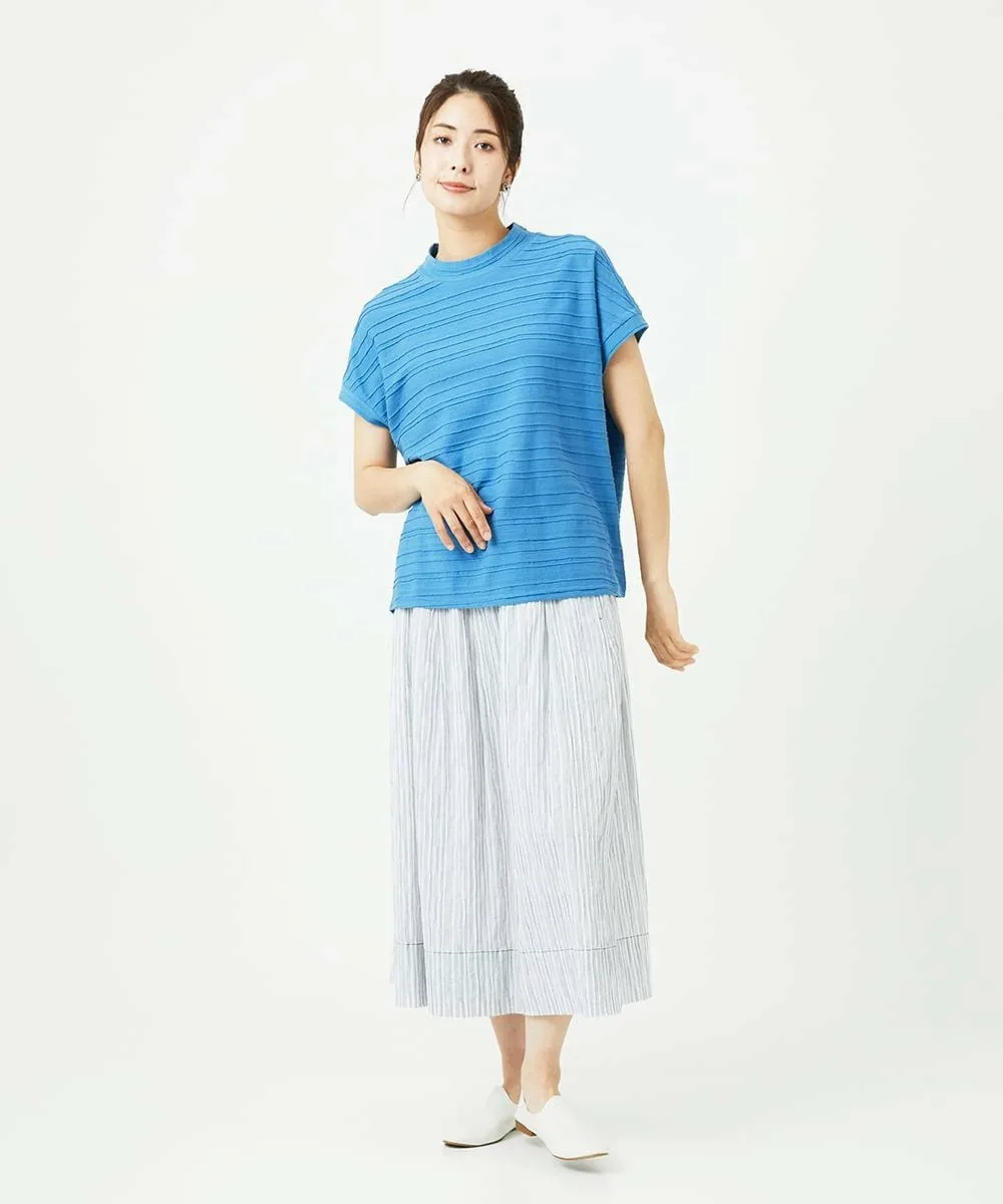Этот сшитый вручную пуловер отличается трехмерным полосатым узором и сухой текстурой. Изготовленный из 100% хлопка, он невероятно мягкий на ощупь, а однократная стирка на этапе обработки ткани стабилизирует материал. Его мягкая текстура и плотность дополняют характерный полосатый узор. Доступен в двух летних цветах: синем и желтом.