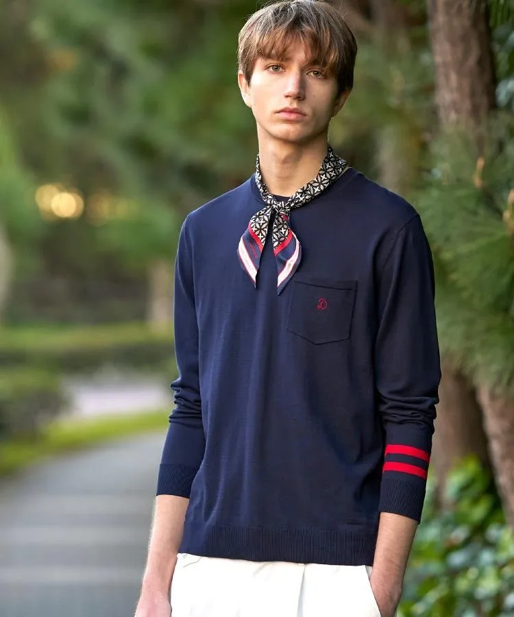 Контрастные цветные линии на манжетах и вышитые инициалы бренда на кармане добавляют нотку индивидуальности.