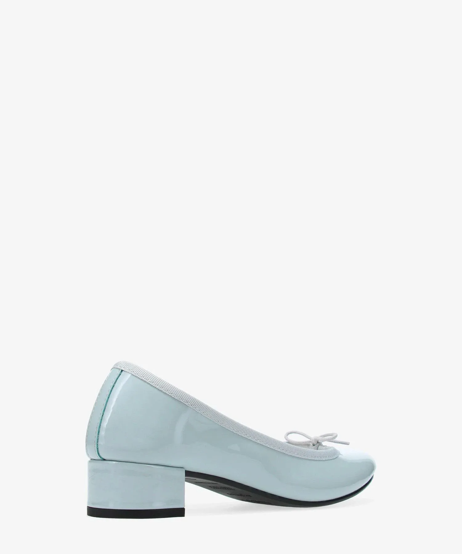 Это балетки на среднем каблуке. Блестящая лакированная кожа придает вашим ногам роскошный вид. Милый закругленный носок создает женственный образ.