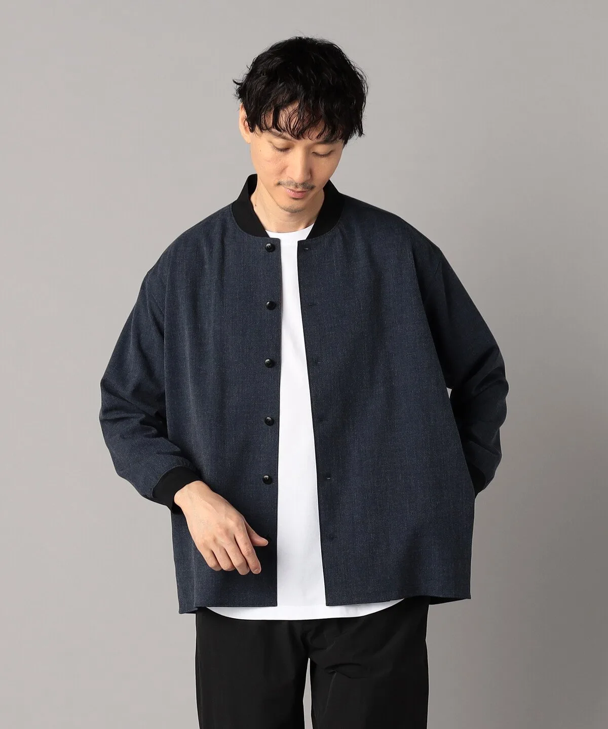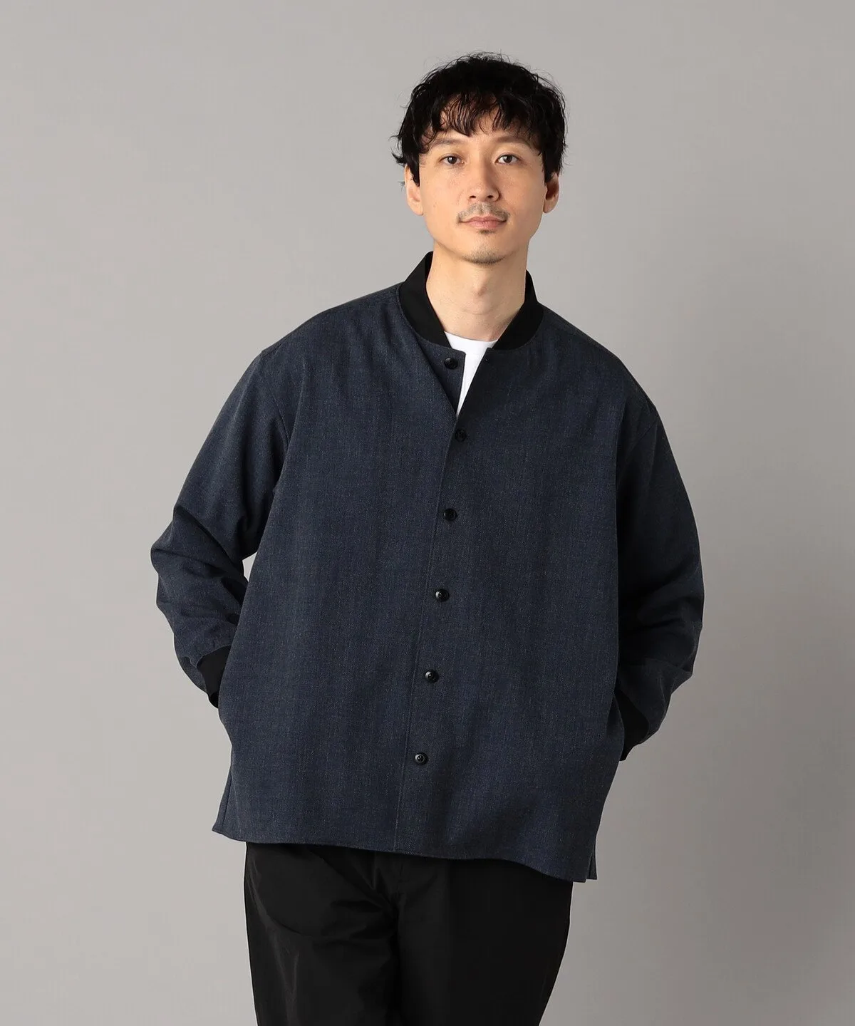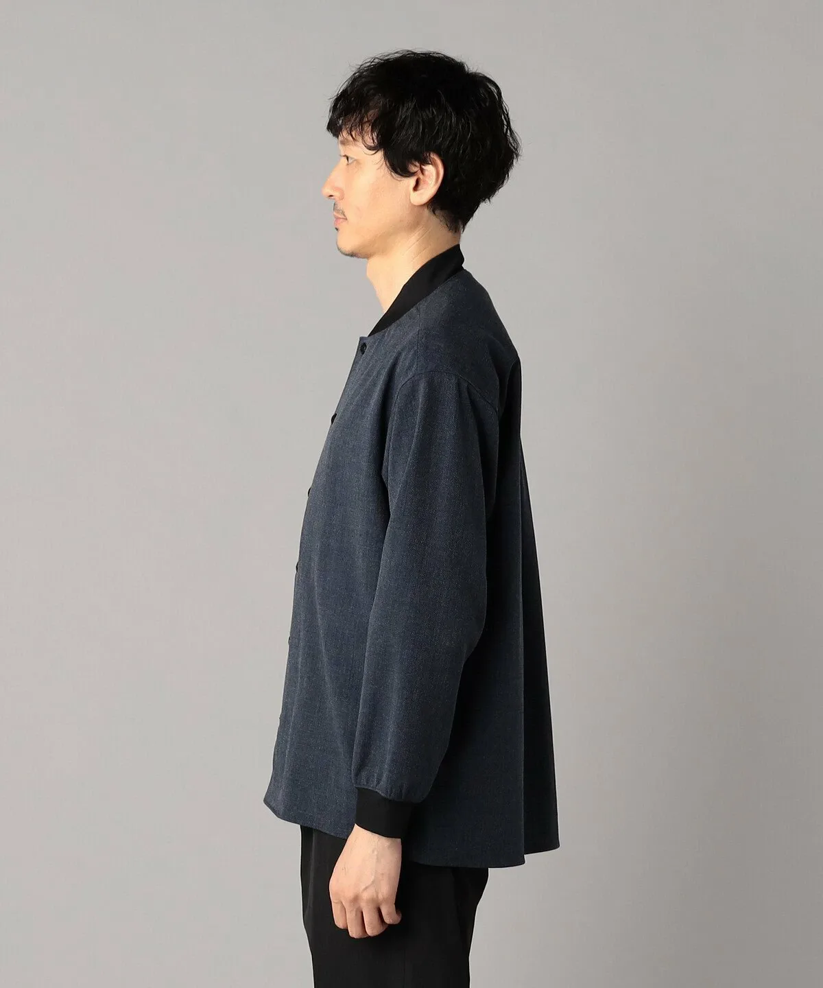 Изготовлена из эластичной саржи с текстурированной поверхностью. Несмотря на то, что ткань немного плотная, она имеет сухую текстуру и идеально подходит для повседневной куртки ранней осенью.