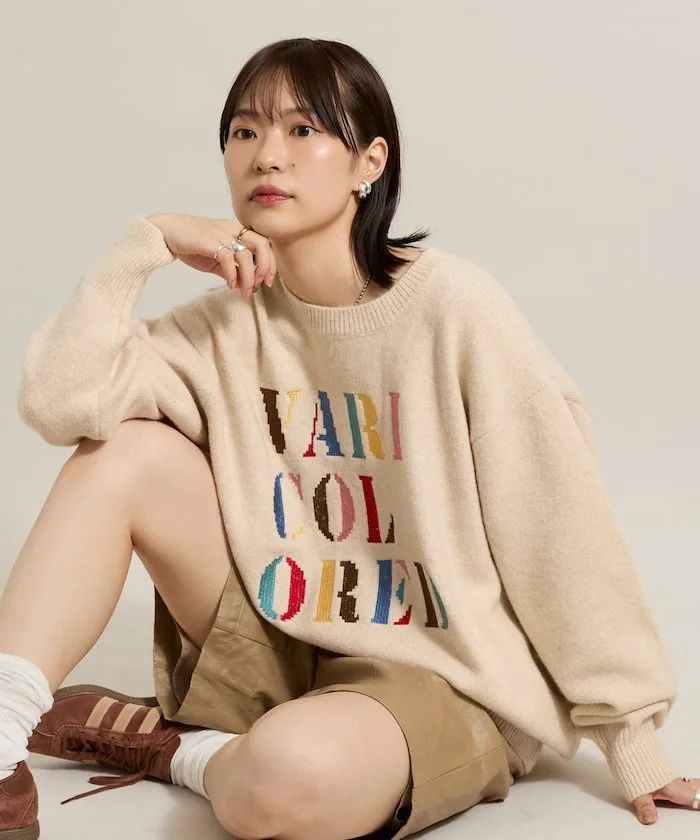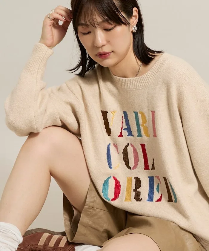 ●Вязаный пуловер с яркой, красочной вышивкой логотипа