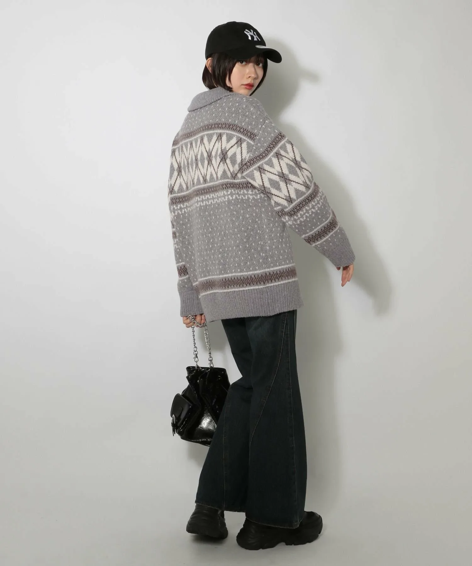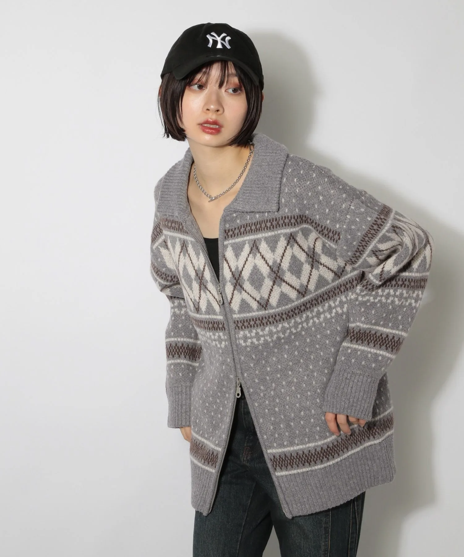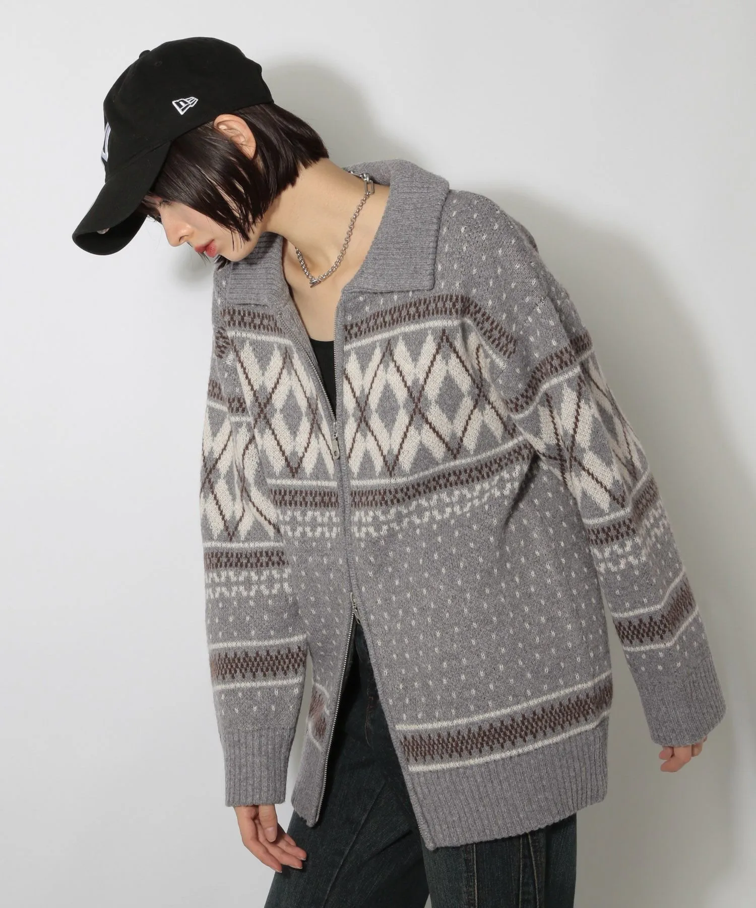 Теплый вязаный кардиган на молнии в стиле Ковичан.