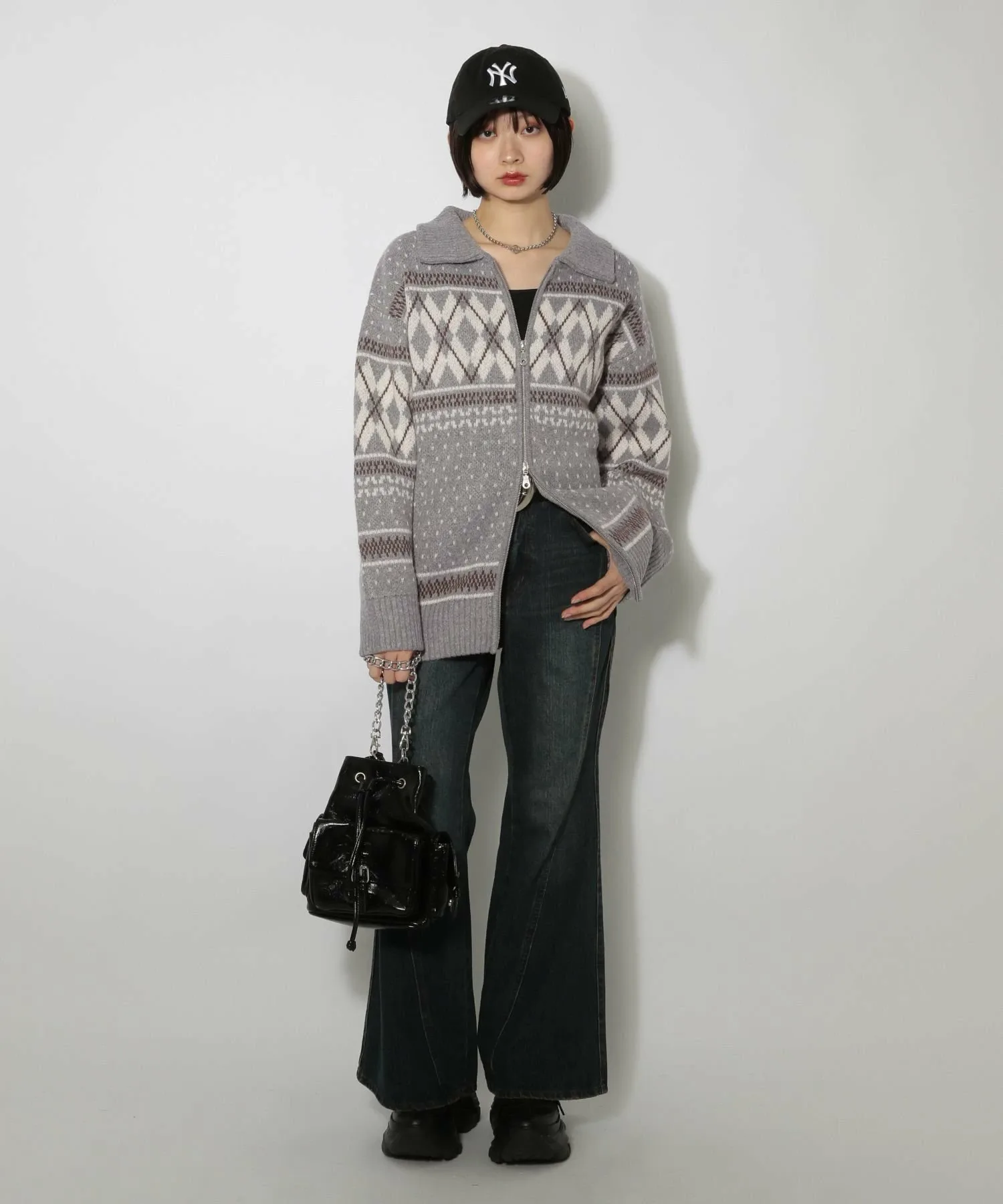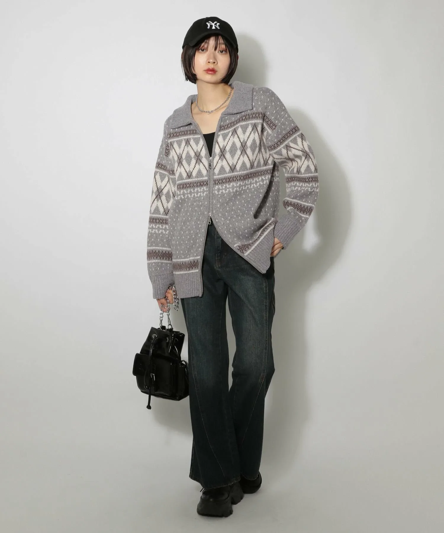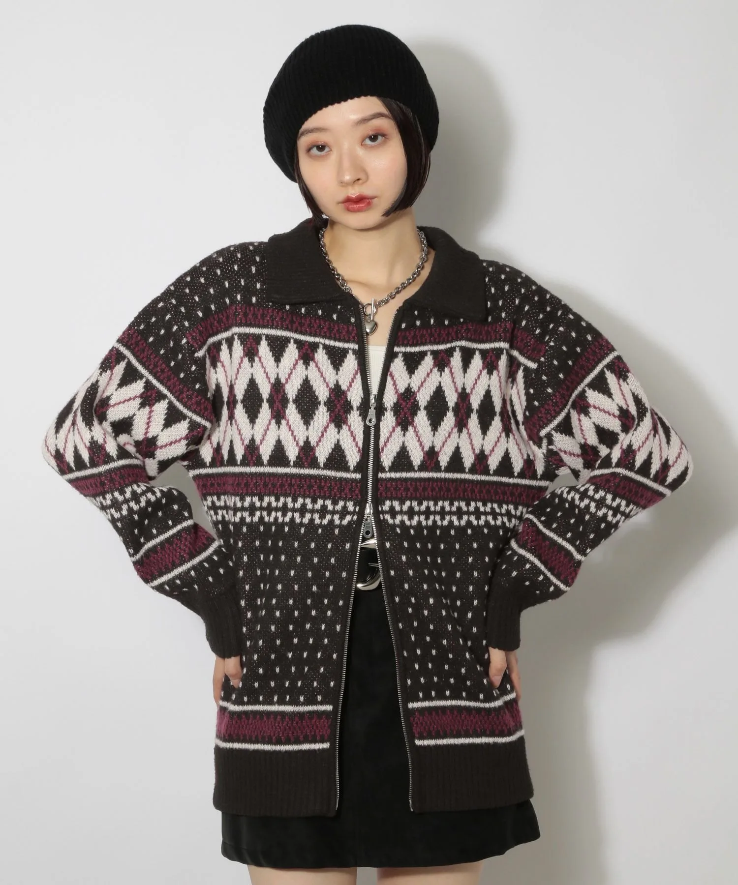 Теплый вязаный кардиган на молнии в стиле Ковичан.