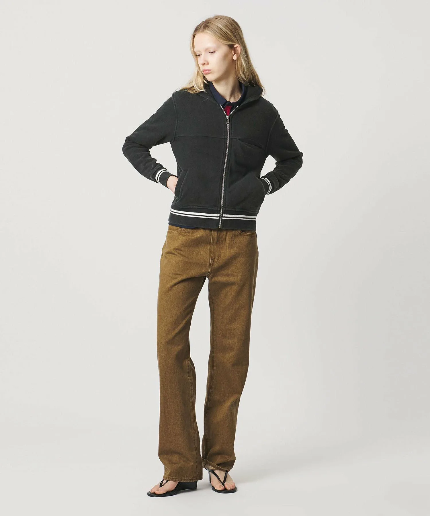 Худи на молнии с модным, компактным силуэтом и спортивным дизайном.