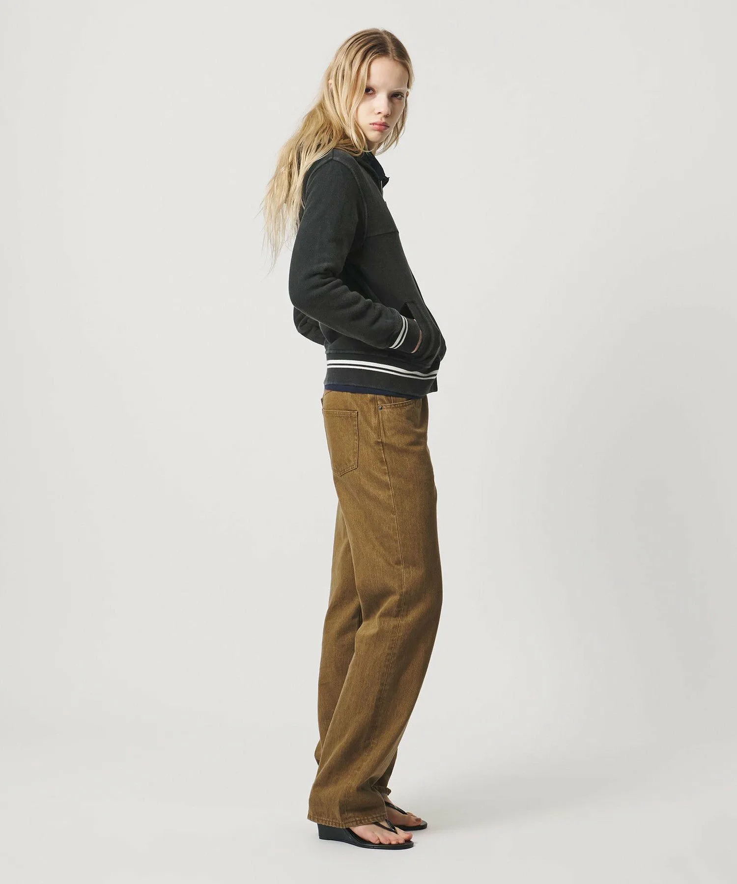 Деталь кармана на груди добавляет тонкий акцент к минималистичной форме.