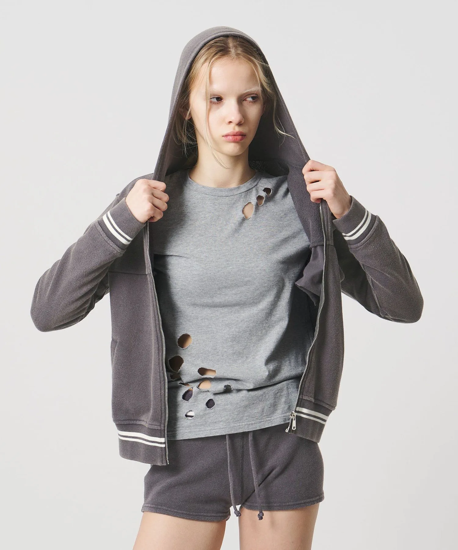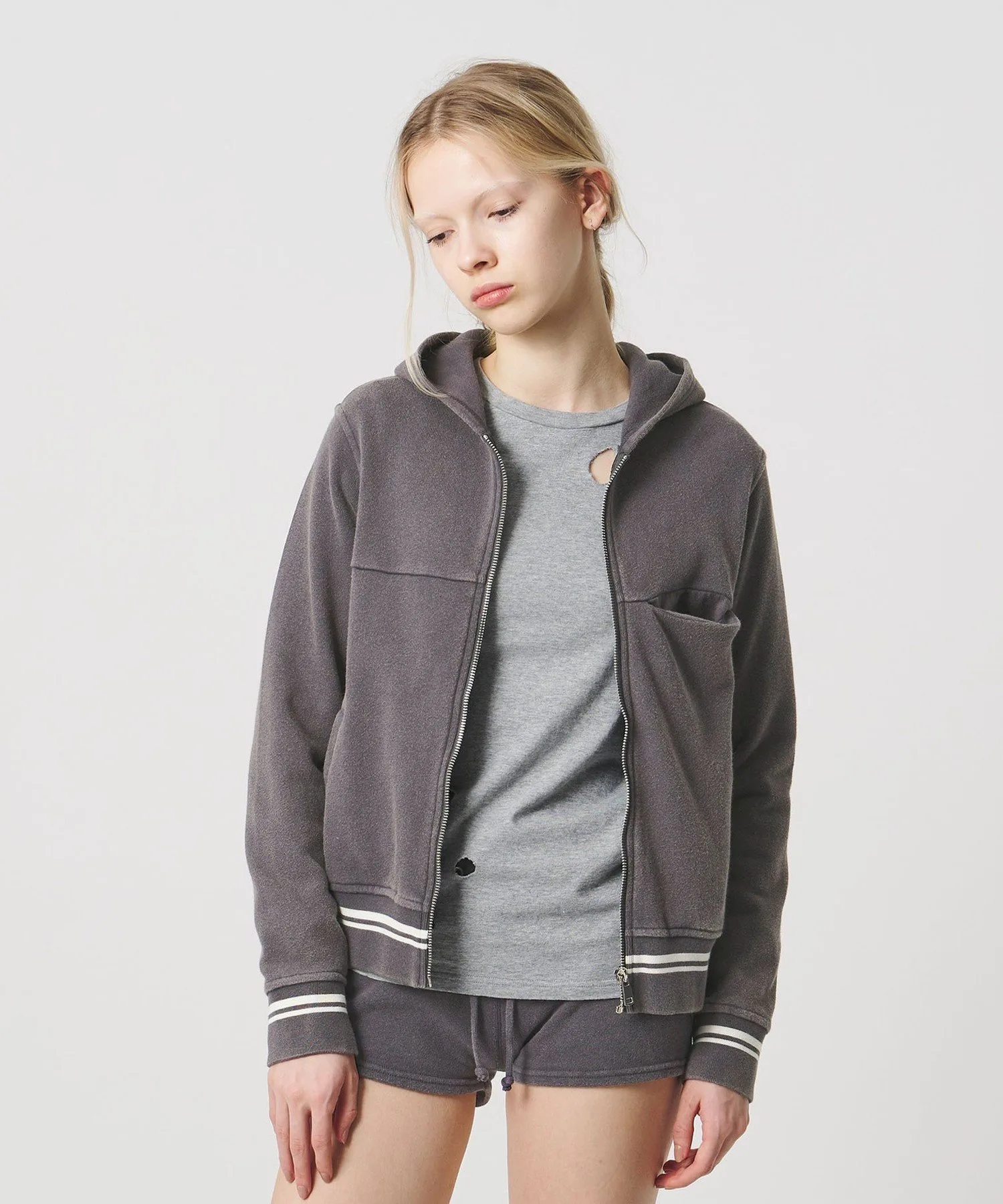 Худи на молнии с модным, компактным силуэтом и спортивным дизайном.