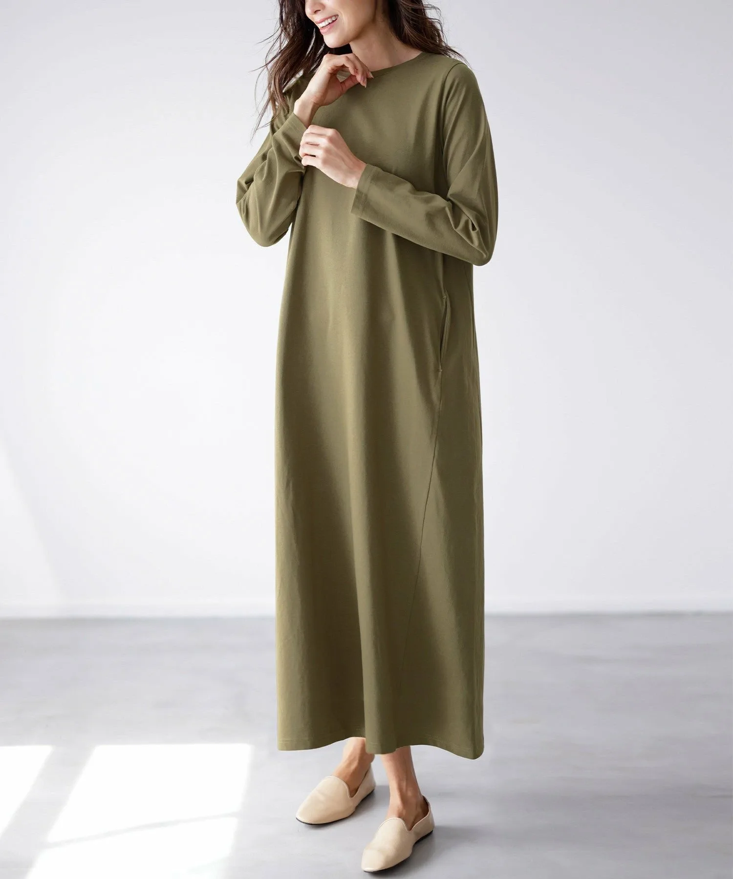 Это длинное платье, сшитое из прекрасного хлопка, отличается простым дизайном и легко носится, идеально подходит для любого сезона.