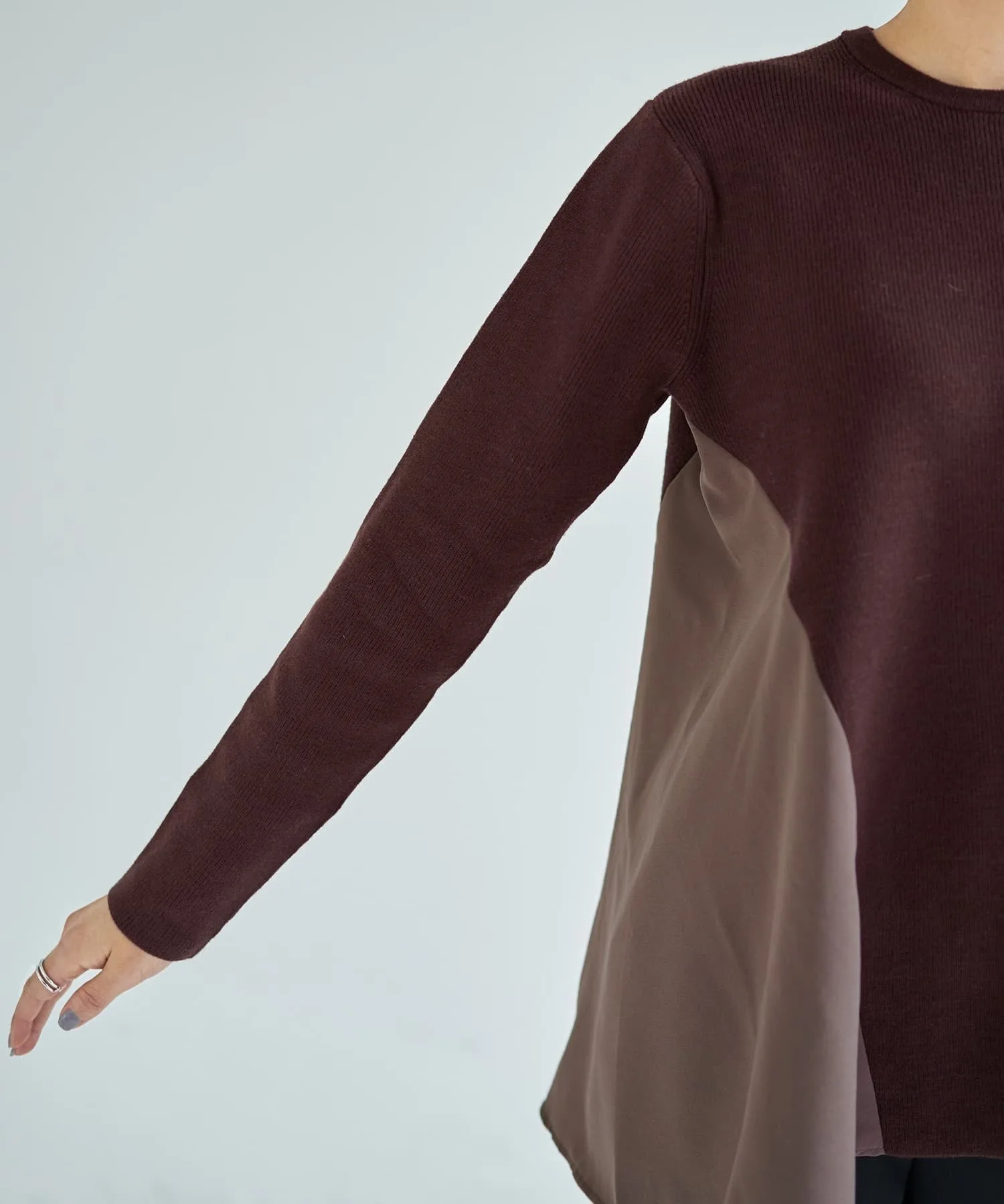 Темно-коричневый: Цвет, который не является темным среди темных коричневых, и ближе к ощущению шоколада или «коричневого». Часть ткани жоржет имеет светло-коричневый цвет мокко.