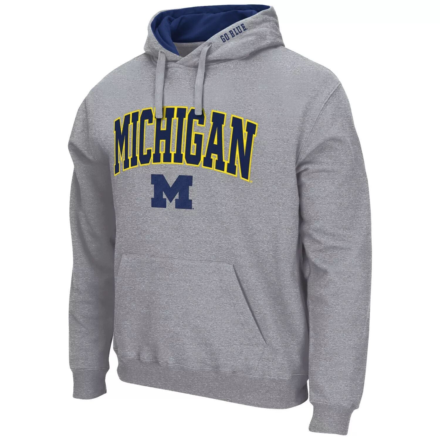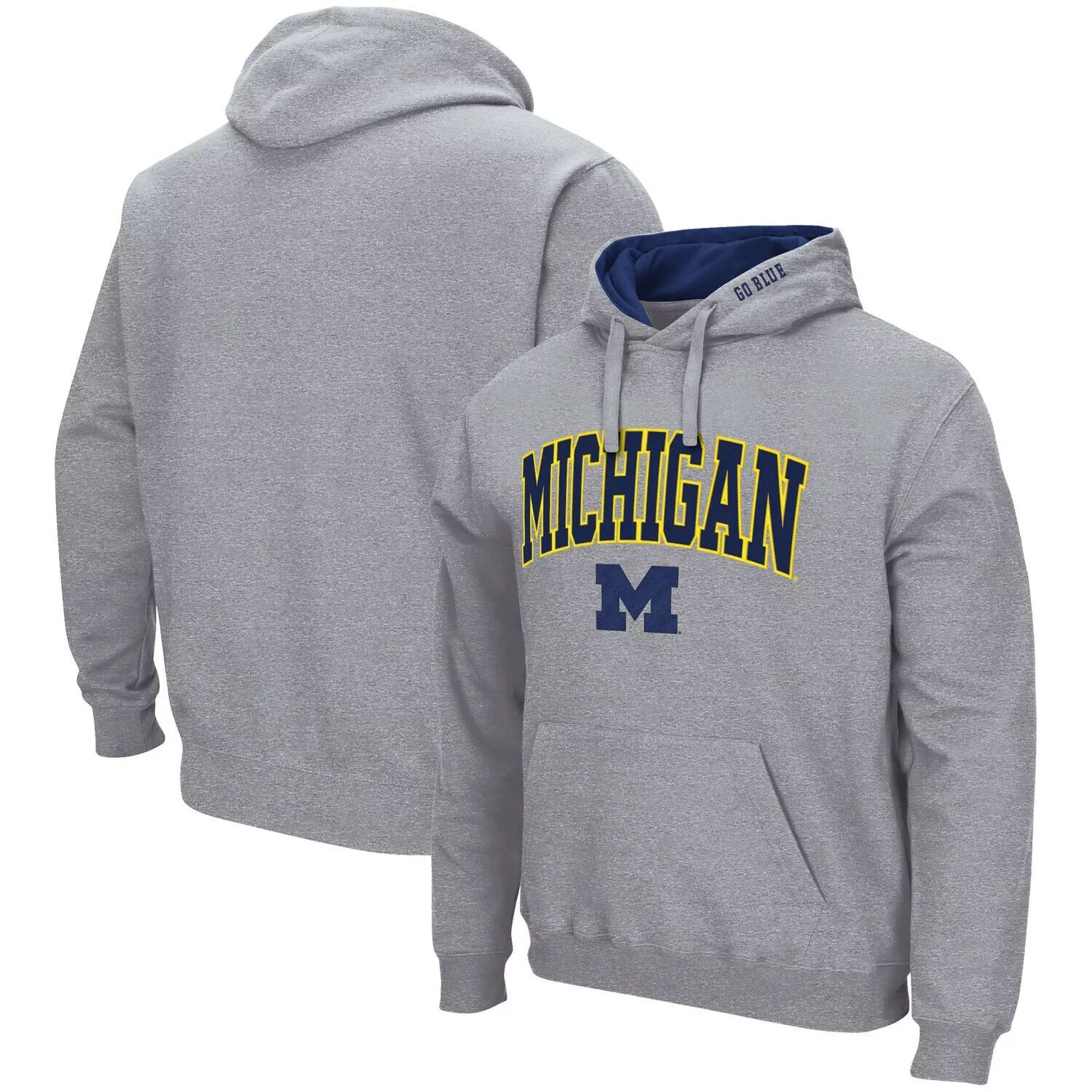 Мужской серый пуловер с капюшоном Michigan Wolverines Arch & Logo 3.0 Colosseum