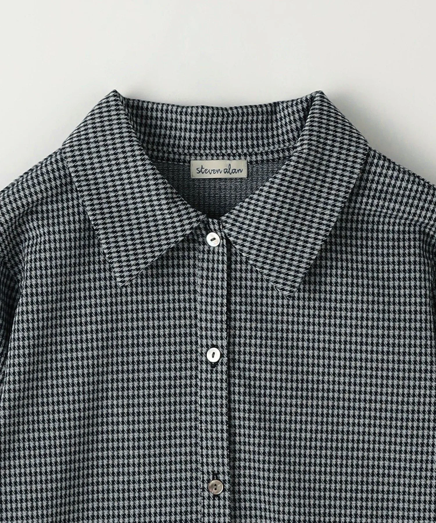 Рубашка-поло в стиле ретро с мелким клетчатым узором.