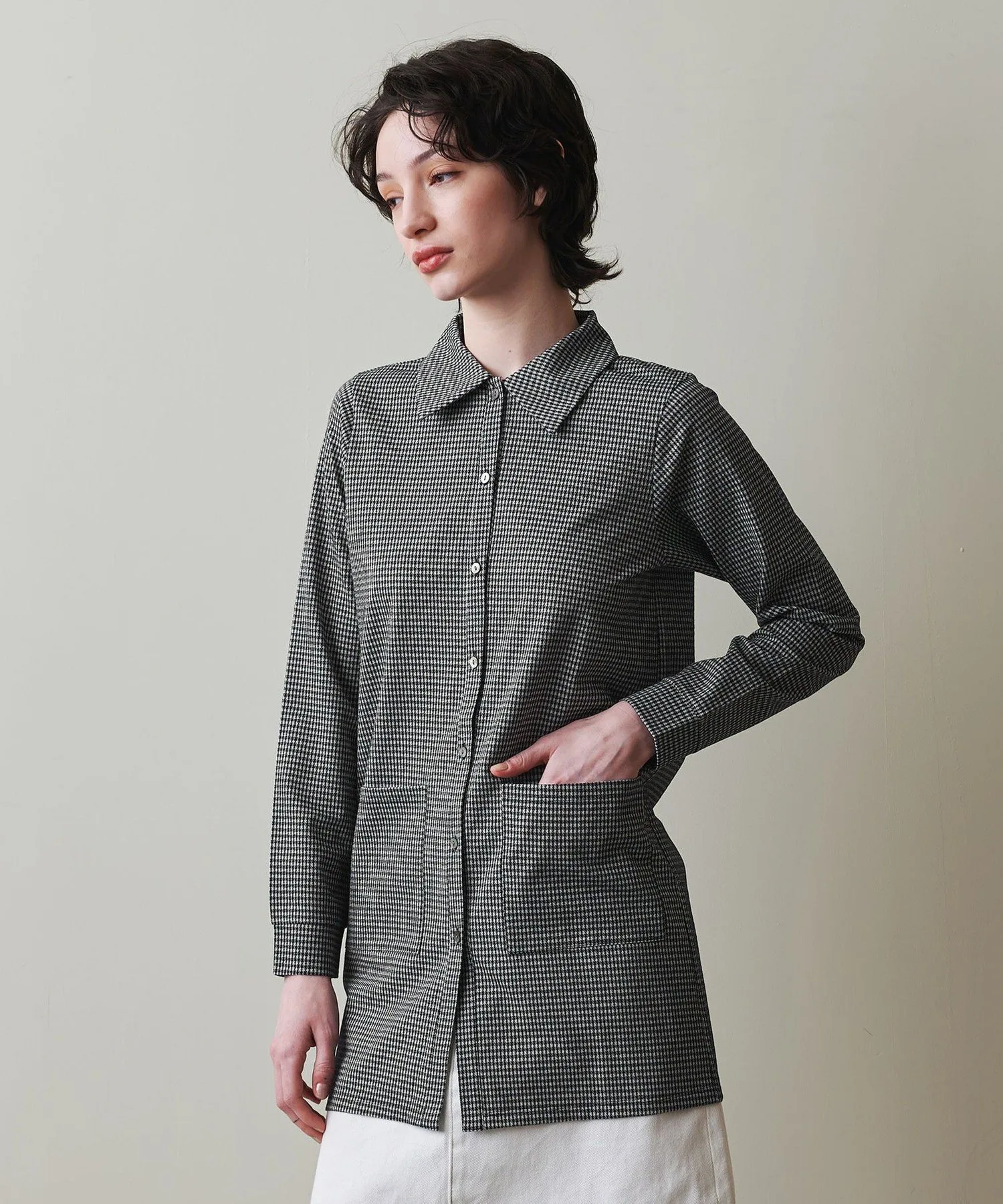 Удлиненная до бедра и приталенный крой создают свежий образ.