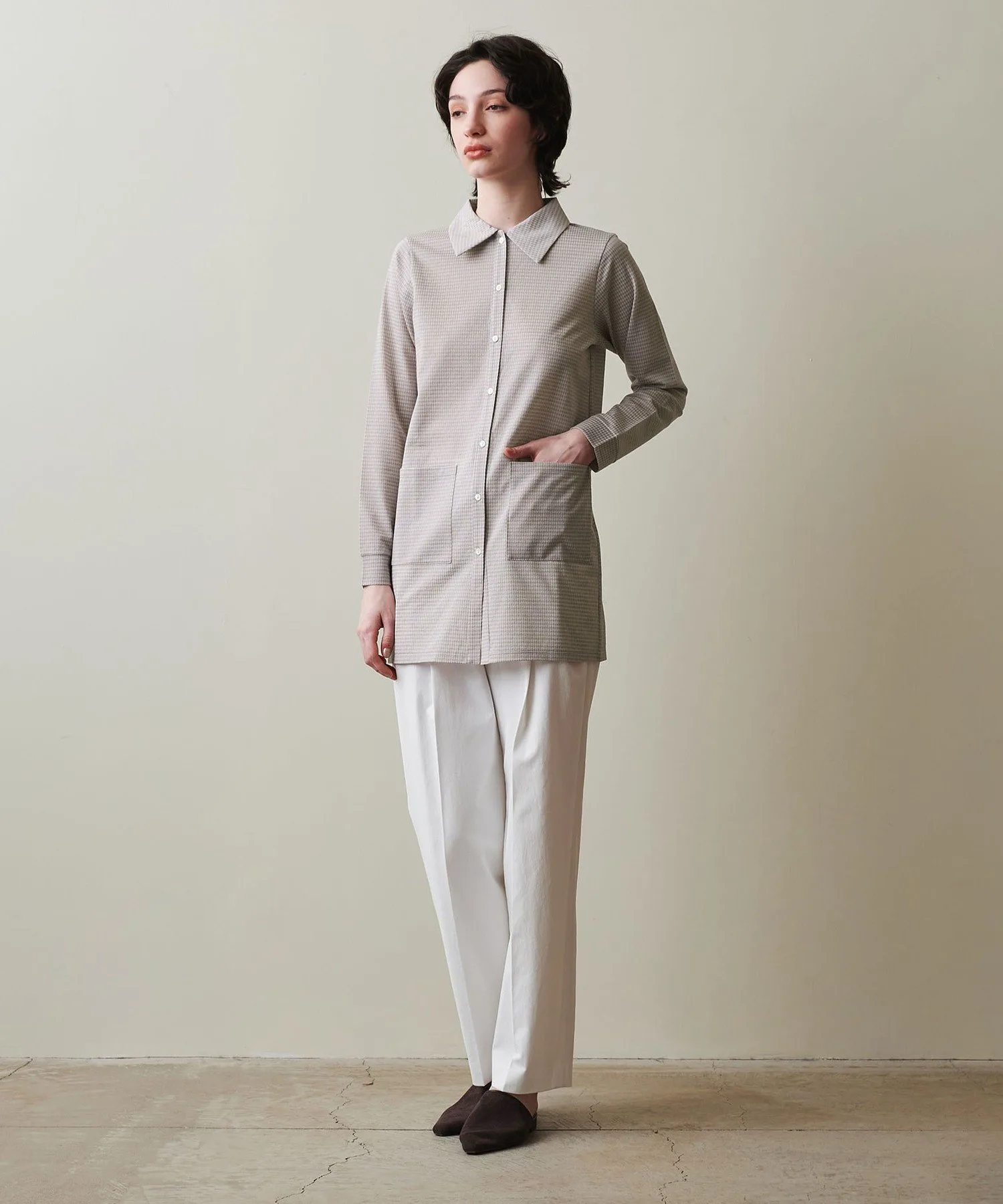 Удлиненная до бедра и приталенный крой создают свежий образ.